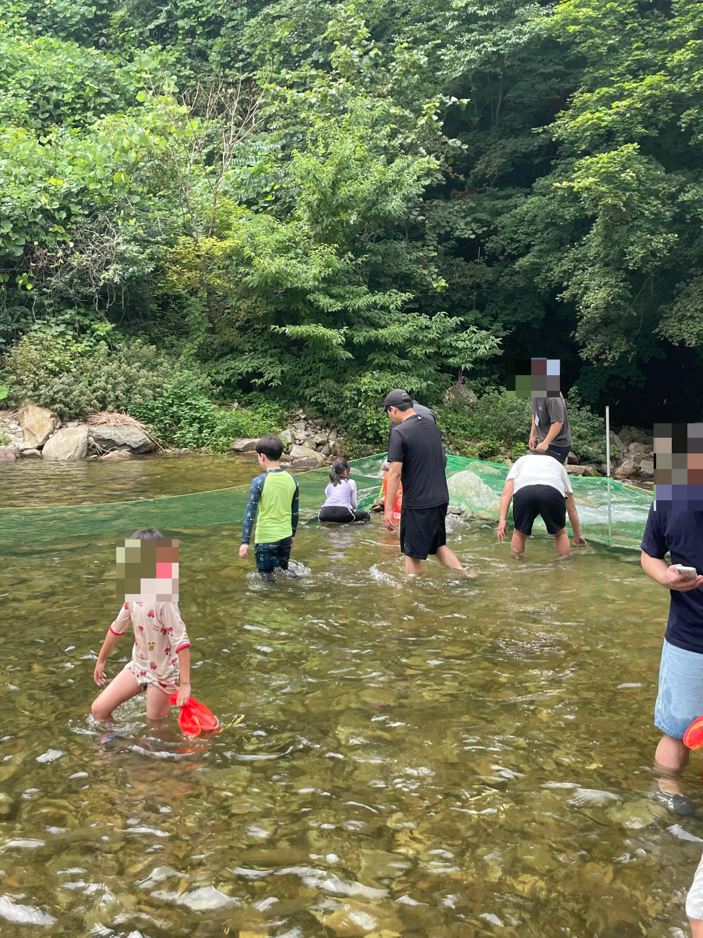 아이들과 물놀이를 위해 장수에 위치한 자연휴양림에 방문해 보았습니다. 며칠 전 TV에 방영된 장소로.... 많은 사람들이 방문했으리라 생각했었는데.... 많은 비로 인하여 다행히? 많은 인파는