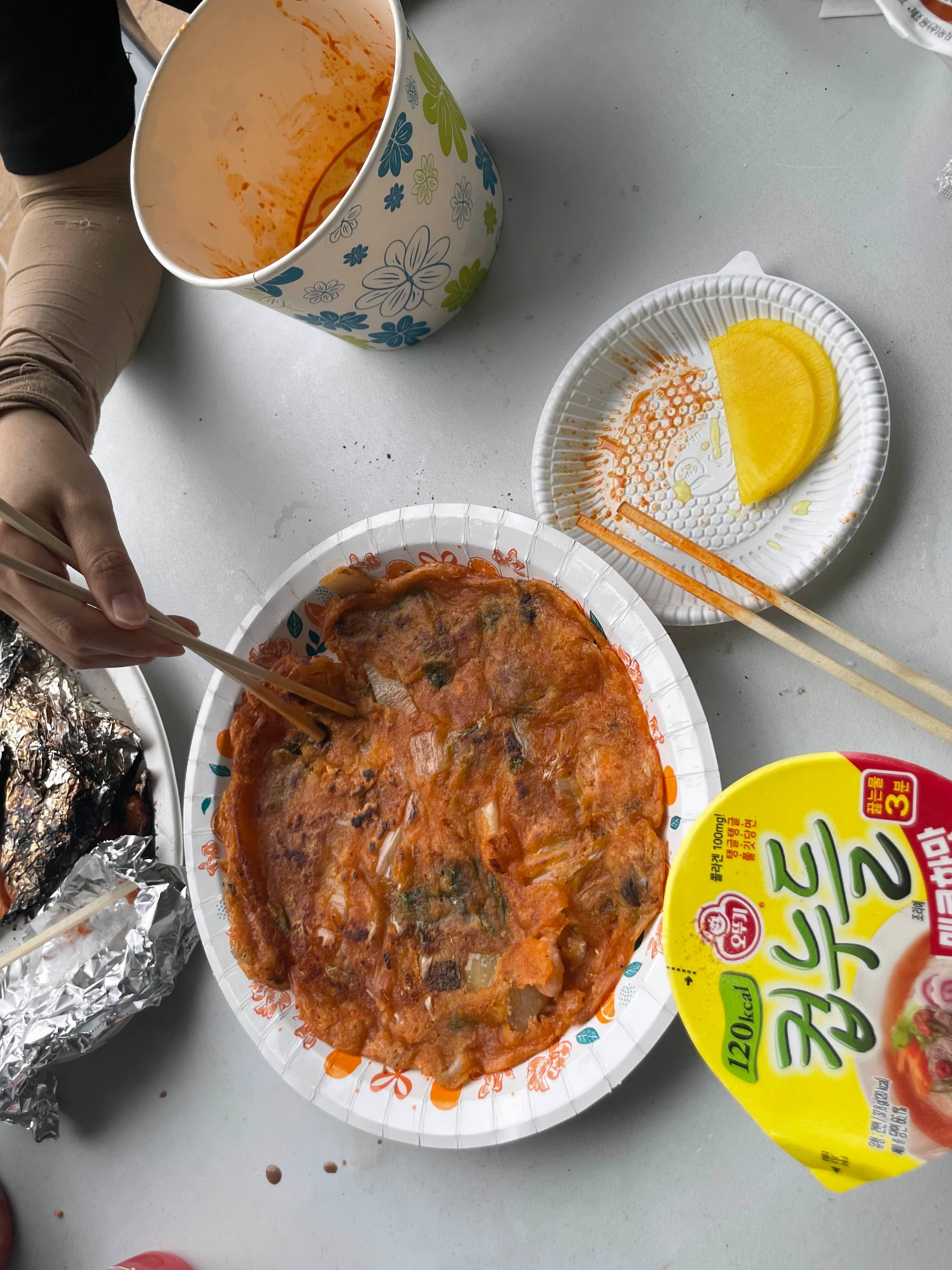 그리고, 음식 코너에서 비빔국수~~ 김치전 하나씩 주문!!