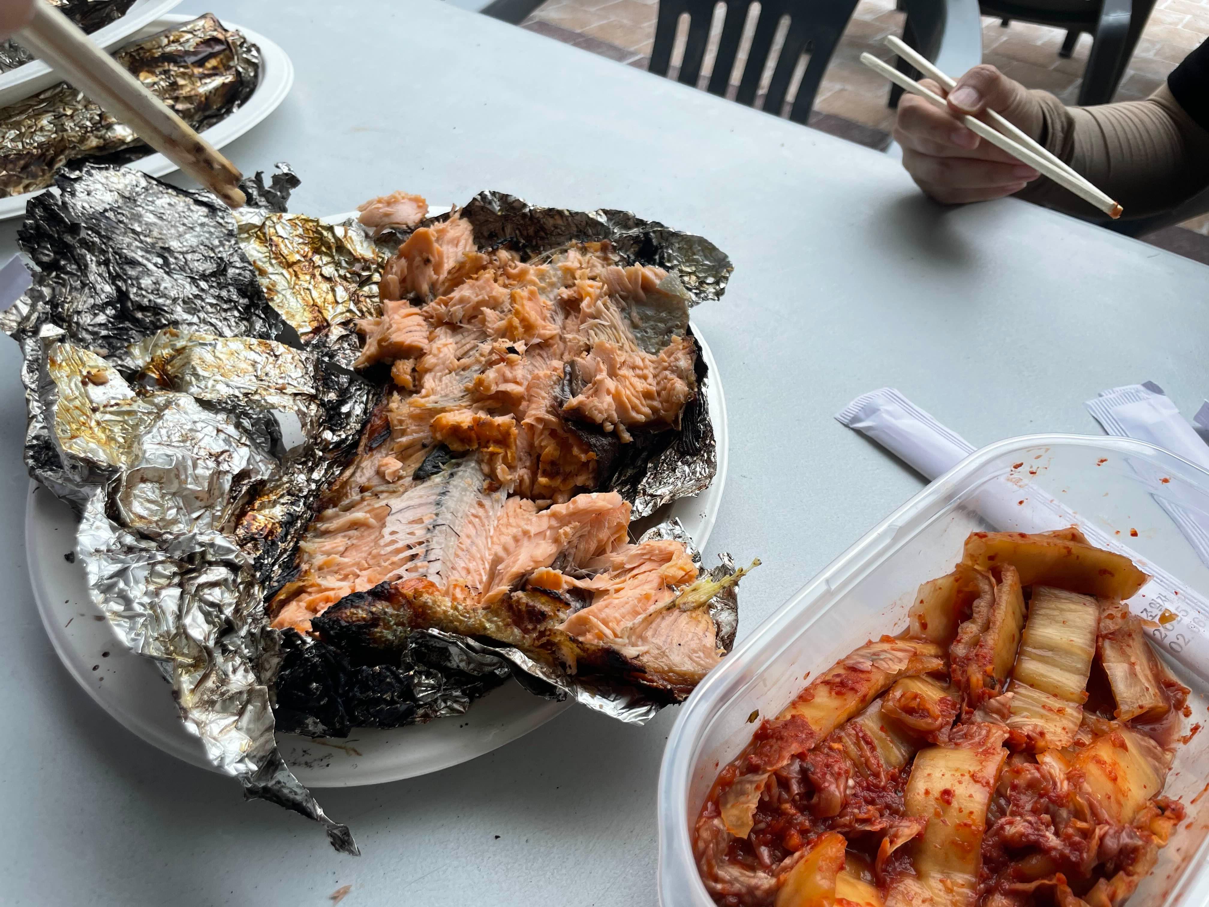 여기저기 둘러보는 사이!! 송어구이가 나왔다.ㅎㅎ