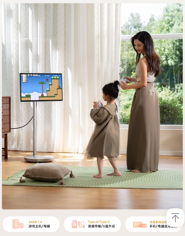 이 제품은 AI 피트니스, 시각적 인식을 통한 올바른 동작, 대용량 MV의 동시 가사 표시 기능을 지원하며, MIJIA 카라오케 마이크와 연결하여 대형 화면의 노래 요청 스테이션으로 전환할 수 있습니다.
