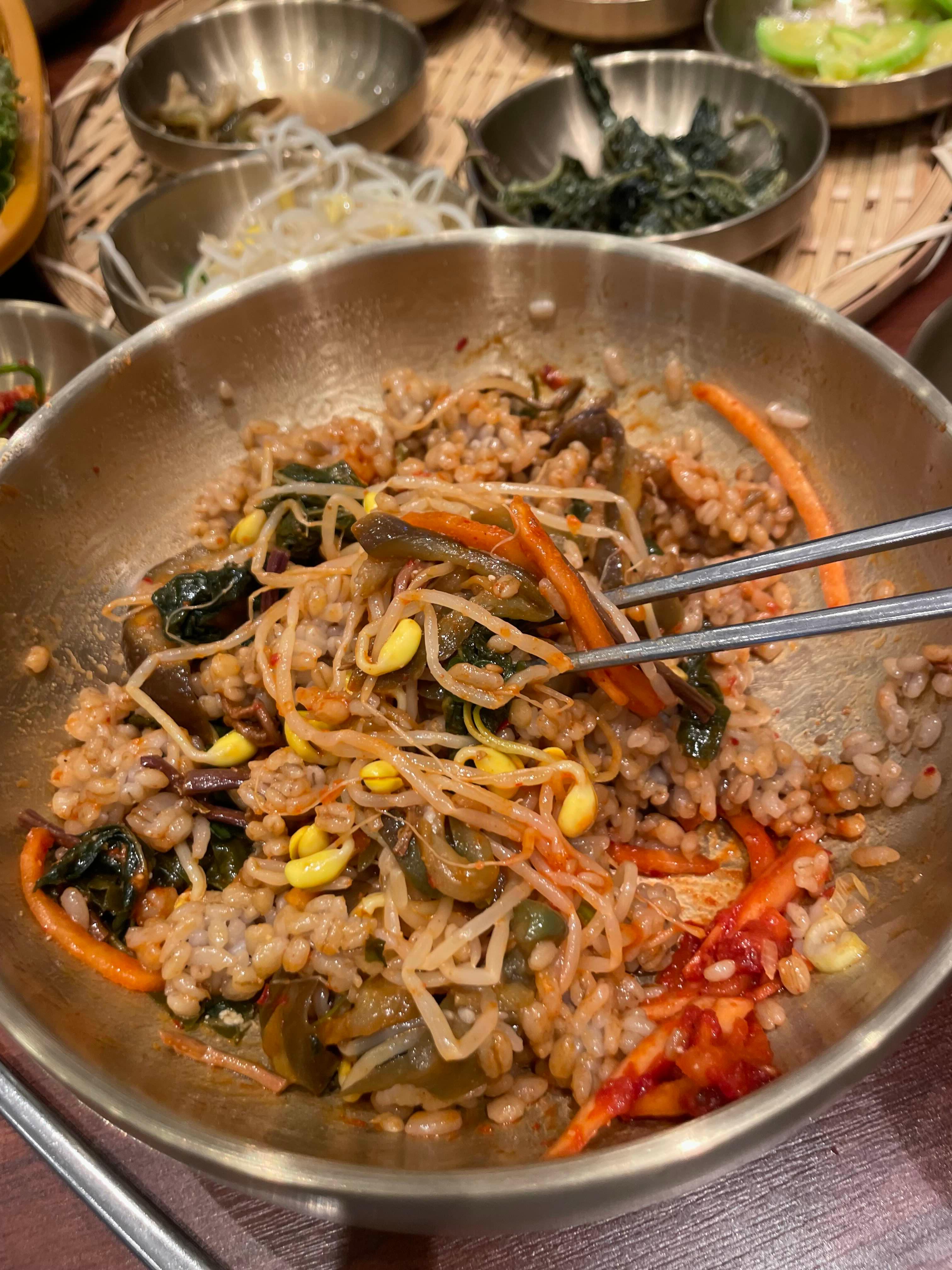 비빔밥+쌈은 맛이 없을 수 없는 조합이라!! 상당히 맛이 좋더군요.
