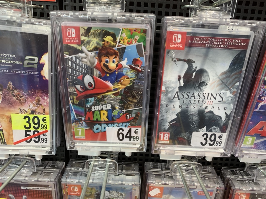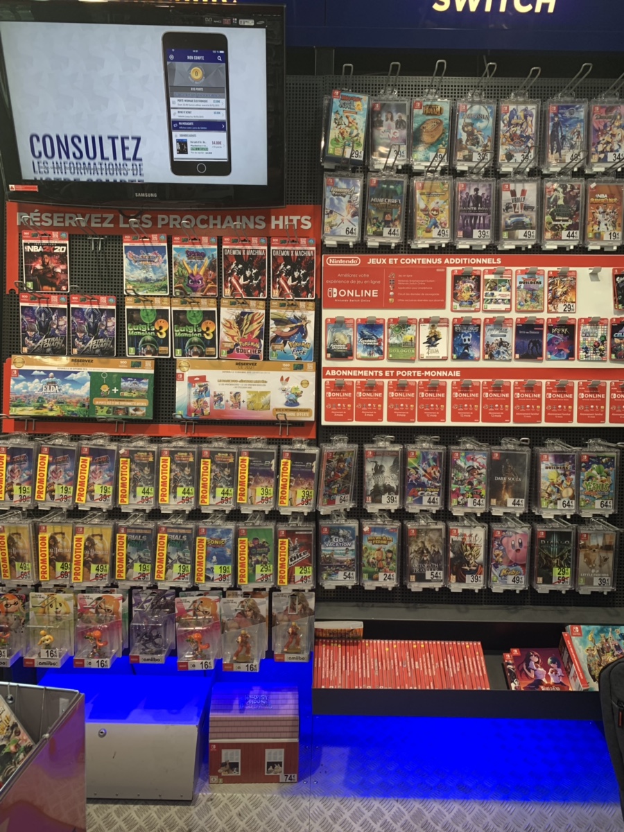 매장 전면부에는 닌텐도 스위치 게임들이 전시되어 있습니다. 예전에 재미있게 했던 슈퍼마리오 오디세이 64유로(84,000원), 젤다의 전설 야생의 숨결이 69유로(90,000원) 보이네요. 유로 환율이 높아서 그런지 가격이 꽤 비싸네요. 매장에 닌텐도 스위치 게임이 가지런히 정리된 것만 바로 왜 이렇게 뿌듯한지. 이렇게 많은 게임팩이 판매하는 매장이 한국에도 많이 있었으면 좋겠네요. 예전에는 오프라인 게임 매장이 많이 있었지만, 인터넷 상거래 활성화로 오프라인 매장을 찾아보기 힘들어졌네요. 가끔은 이런 오프라인 매장이 그리워지네요.