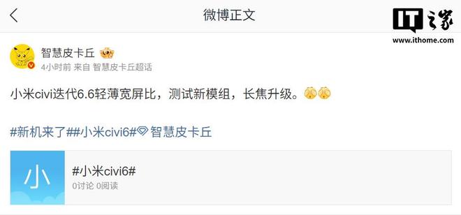 블로거는 이 휴대폰의 변경 사항이 "상대적으로 크며 나중에야 확인될 것"이라고 말했습니다. 블로거 기사의 태그 힌트와 댓글의 추측을 종합해 볼 때, 이 휴대폰은 샤오미 시비 6일 것으로 예상됩니다 .