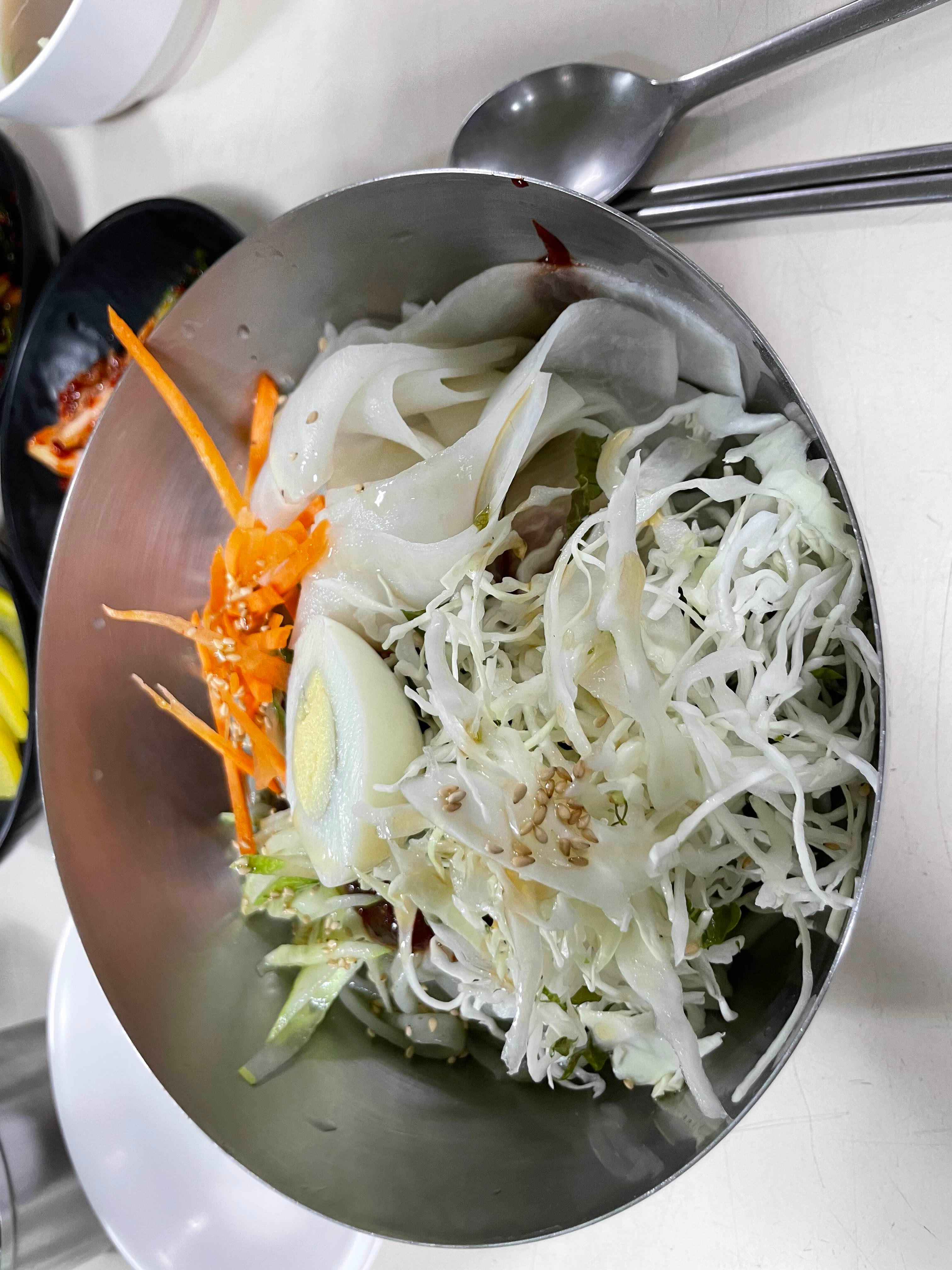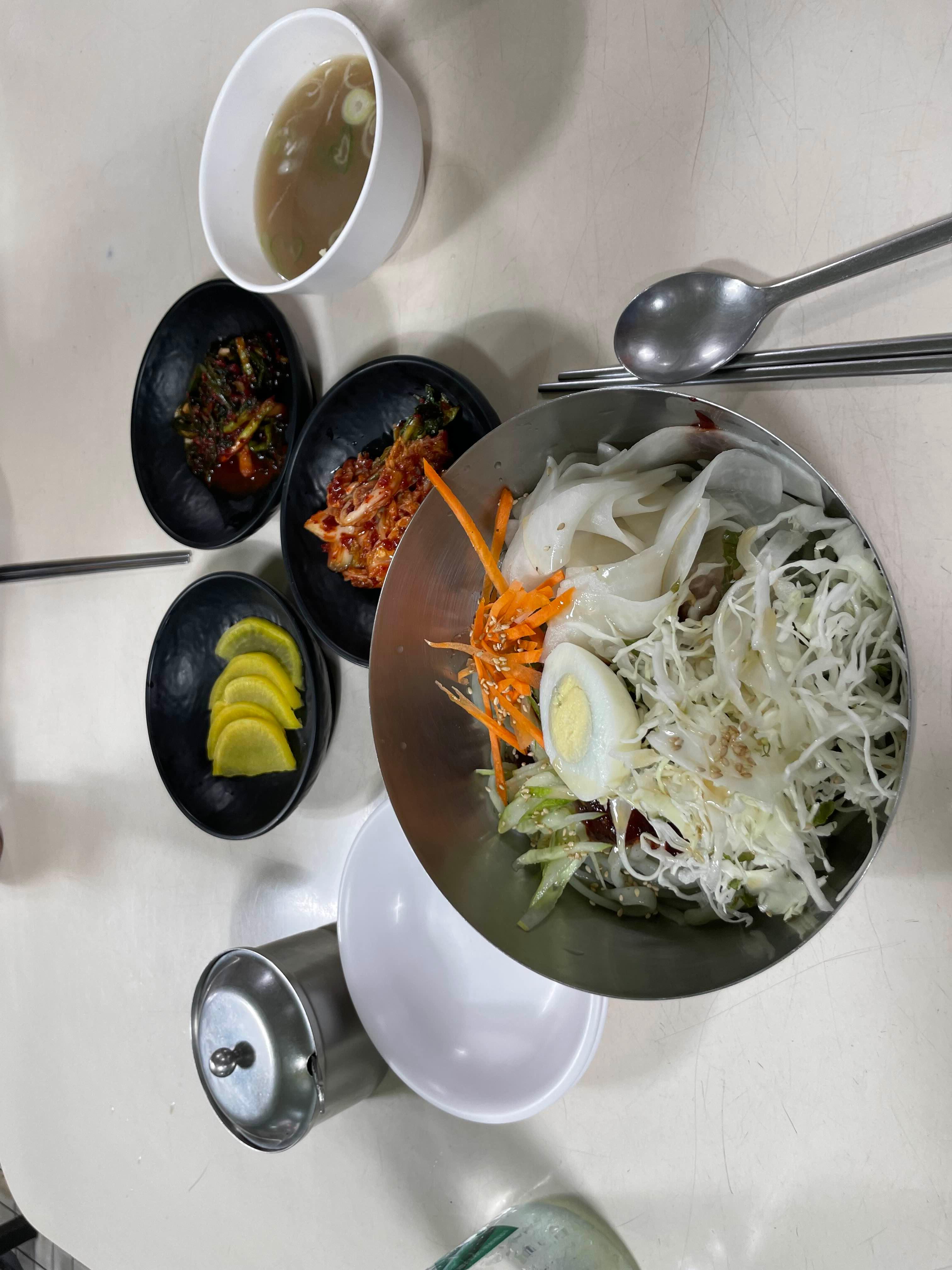김치는 상당히 맛이 좋더군요. 그리고, 비빔국수와 함께 나온 국물!! 음.... 무슨 면수 느낌의 국물이 나오더군요.ㅎㅎ