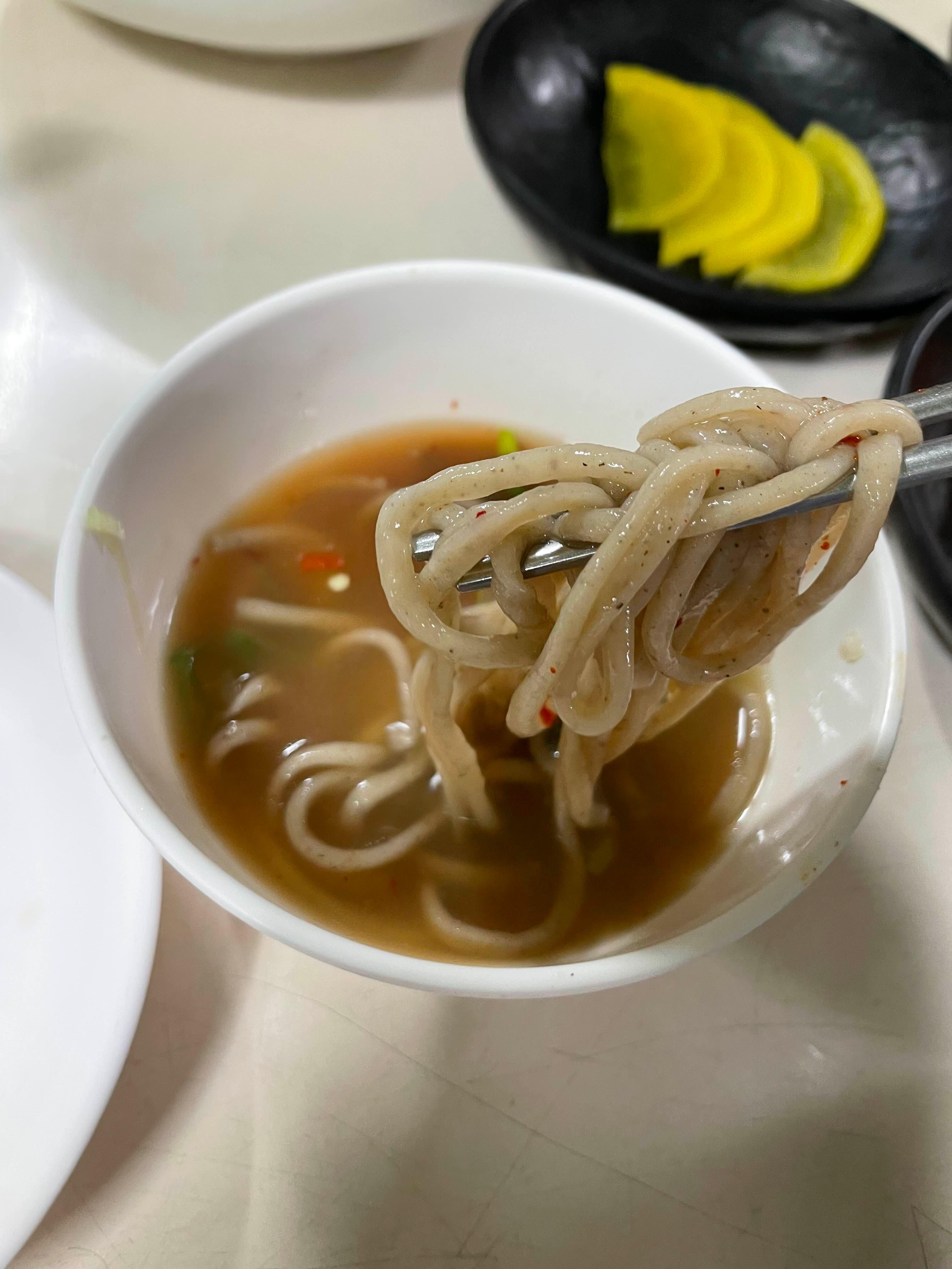 사골국물인지 면수인지.... 좀 밋밋한 맛이랄까?