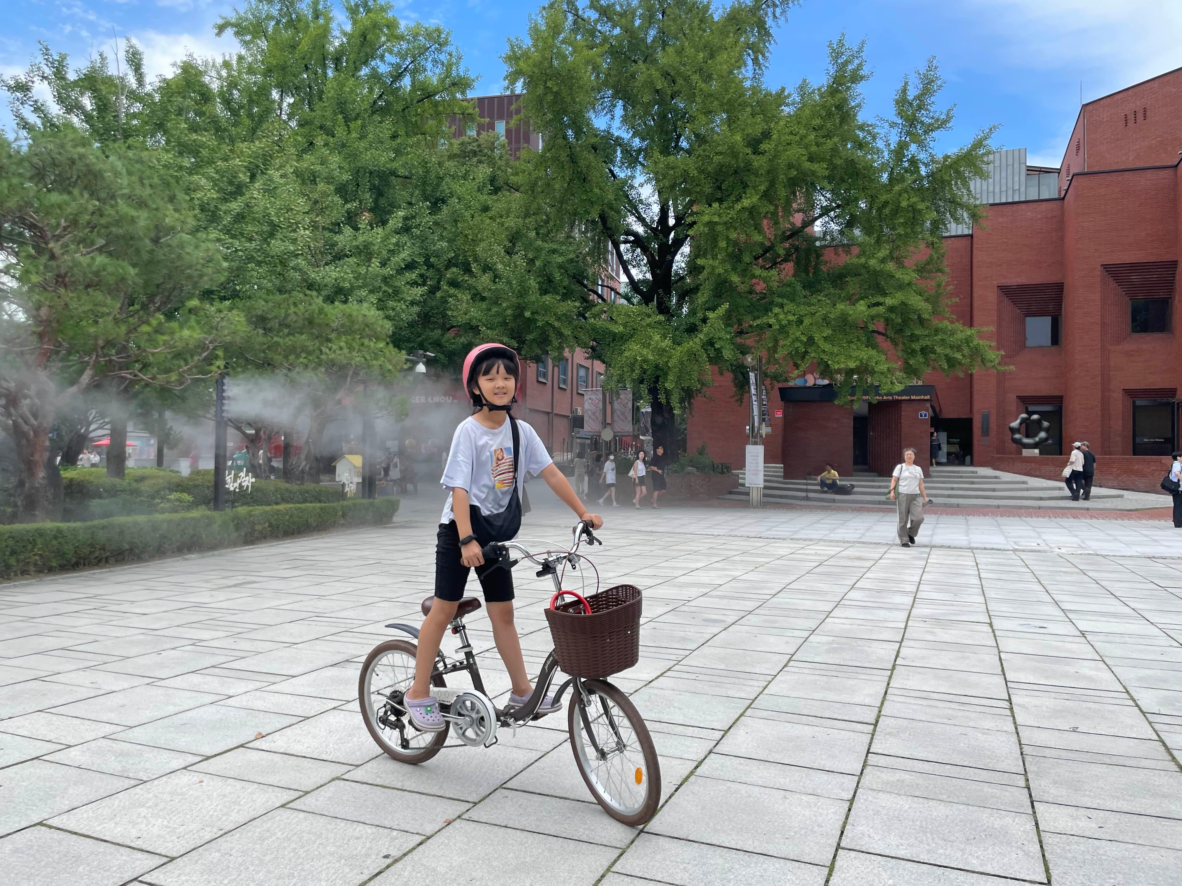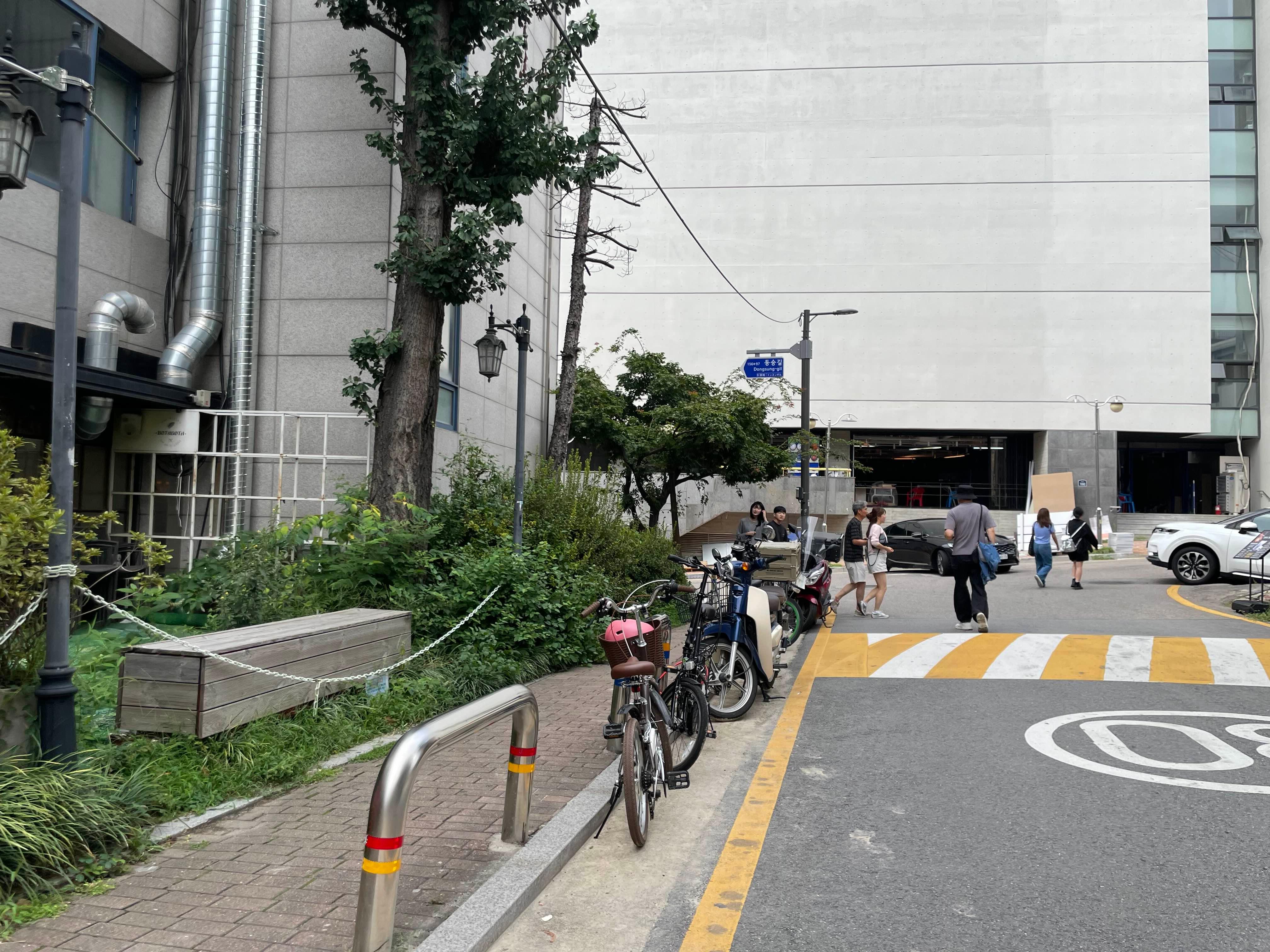 길 한쪽에 자전거를 묶어두고!! 상영장소로 이동!