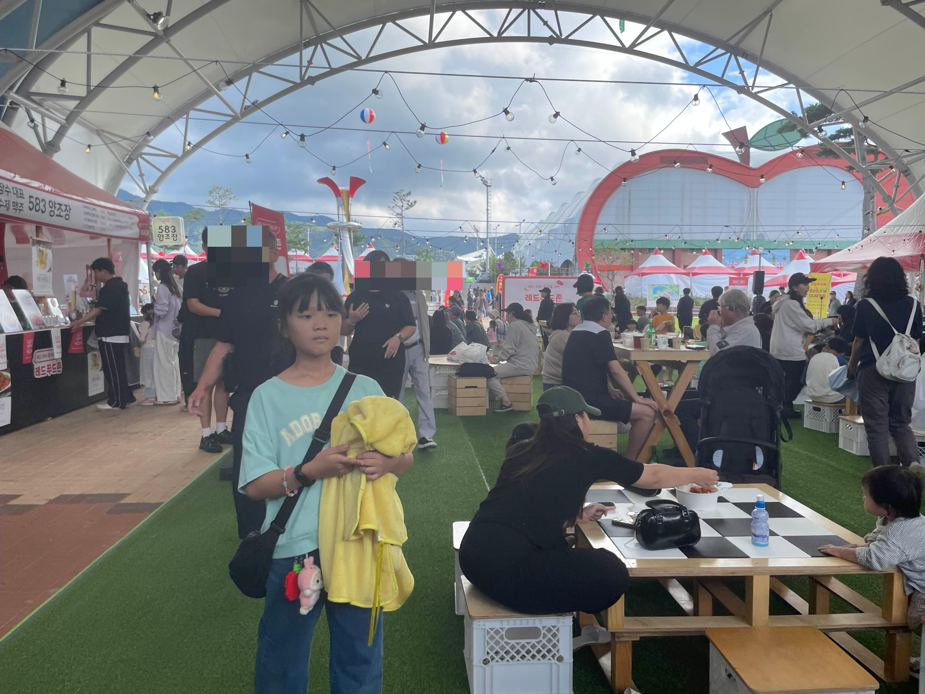 많은 인파로 인해 잠시 해어졌던 아이와 다시 만나서 행사장으로 이동!