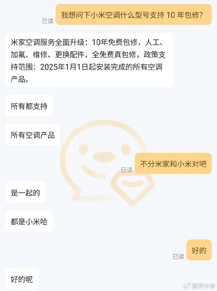 첫째, "10년 보증"의 범위가 불분명합니다. 일부 네티즌들은 이 새로운 에어컨 정책이 미지아 몰에서 판매되는 "미지아 에어컨"에만 적용될 수 있다고 지적했습니다.
