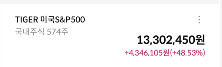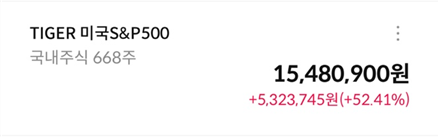 그 당시에 결정했던 지수는 S&P500 지수투자... 대략 수익률은 50% 정도!
