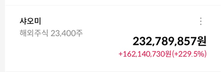 그 당시에 결정했던 개별종목은 샤오미! 가장 수익률이 좋으며 수익금을 가져다주었다.