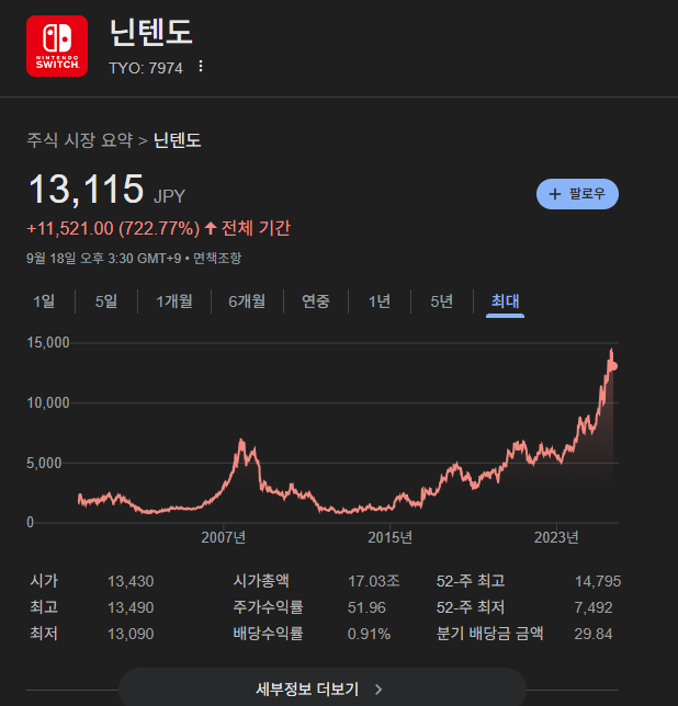 - 닌텐도 : 이제 콘솔게임기의 경쟁상대는 없다. 다만, 모바일 게임이 있을 뿐! 닌텐도의 가장 강력한 경쟁력은 오리지널 콘텐츠(마리오, 젤다의 전설 등)라 생각된다. 앞으로도 꾸준히 관련 게임들이 출시된다면, 향후 투자해도 좋을 회사라 생각이 든다.