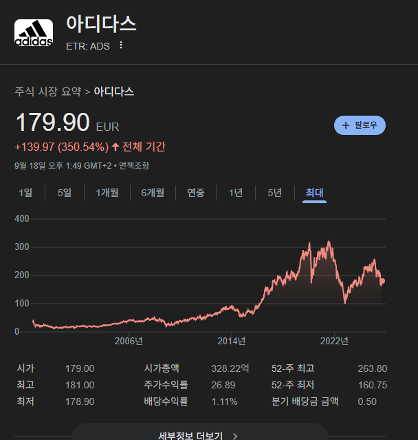 - 아디다스 : 나이키의 경쟁상대로 나이키 보다 경쟁력이 있나?라는 생각이 든다. 그리고, 운동화 시장이 이제 포화상태라 더 성장할 수 있을지 의문이 든다.