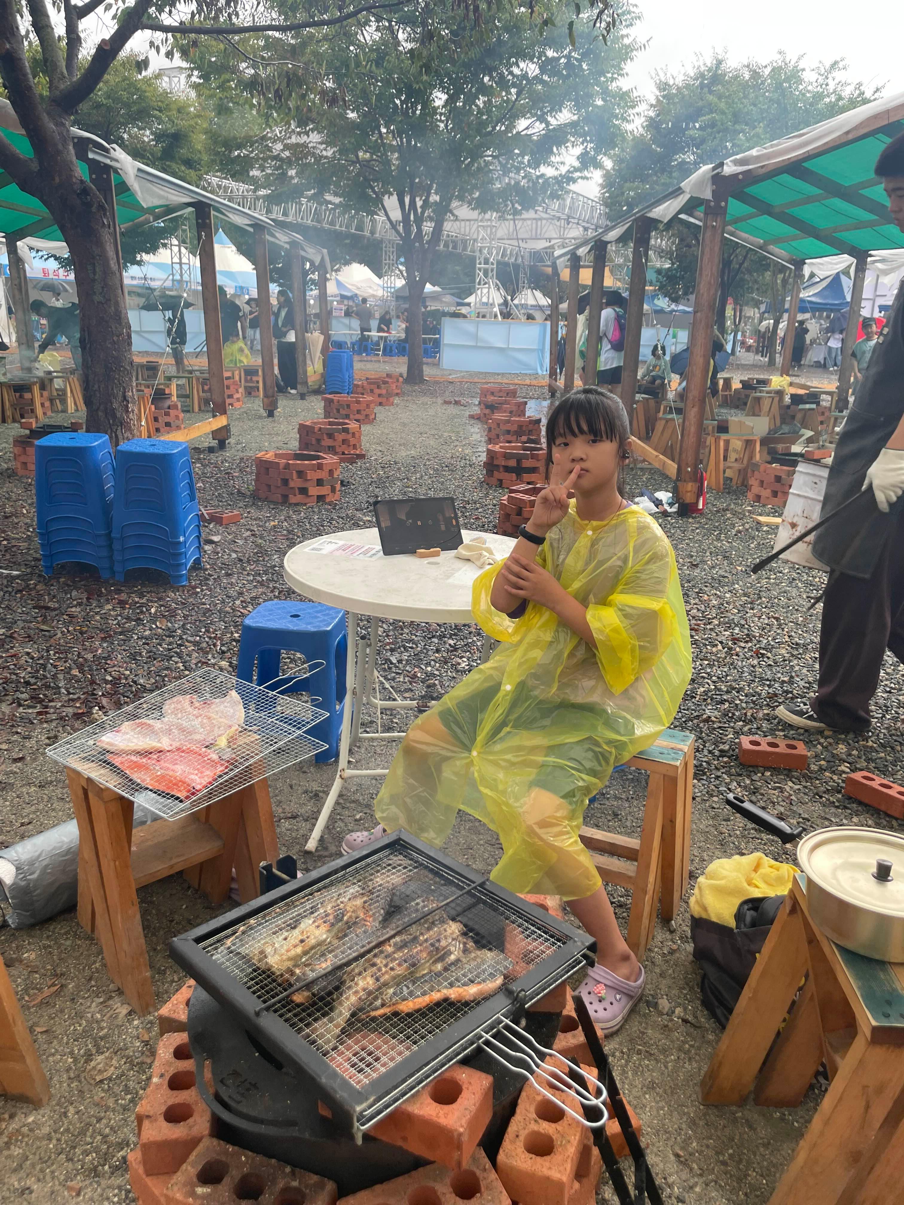 화덕장소에 도착하니... 1번!! 아이에게도 물고기 잡이를 시키고 싶었지만.... 비가 내리기 시작해서, 빨리 잡고 화덕구이에 도착하니 처음이네요.ㅎㅎ 적당히 비 안내리고, 나중에 사람들이 몰려오면, 연기가 안날리는 쪽으로 자리 선점!