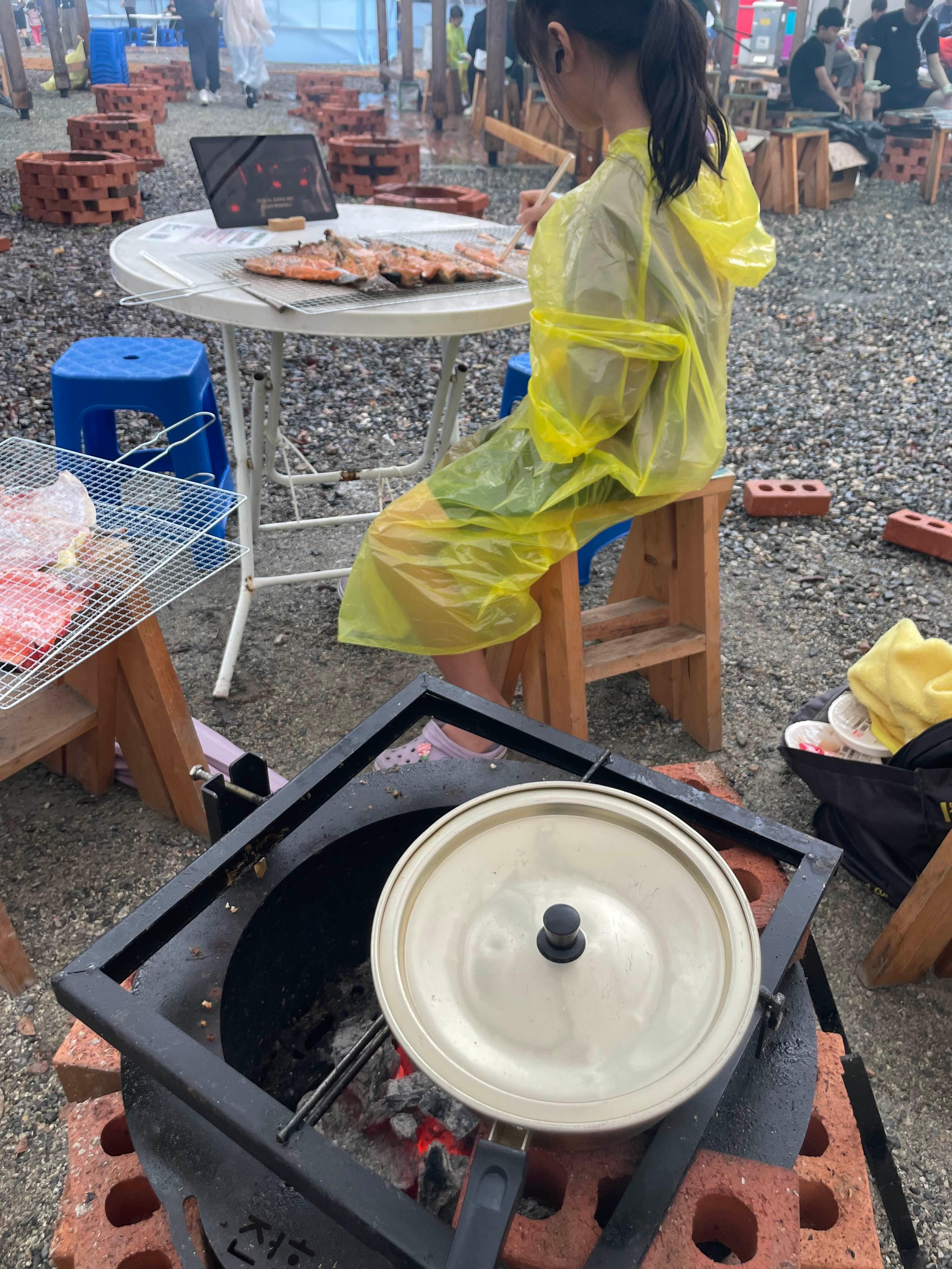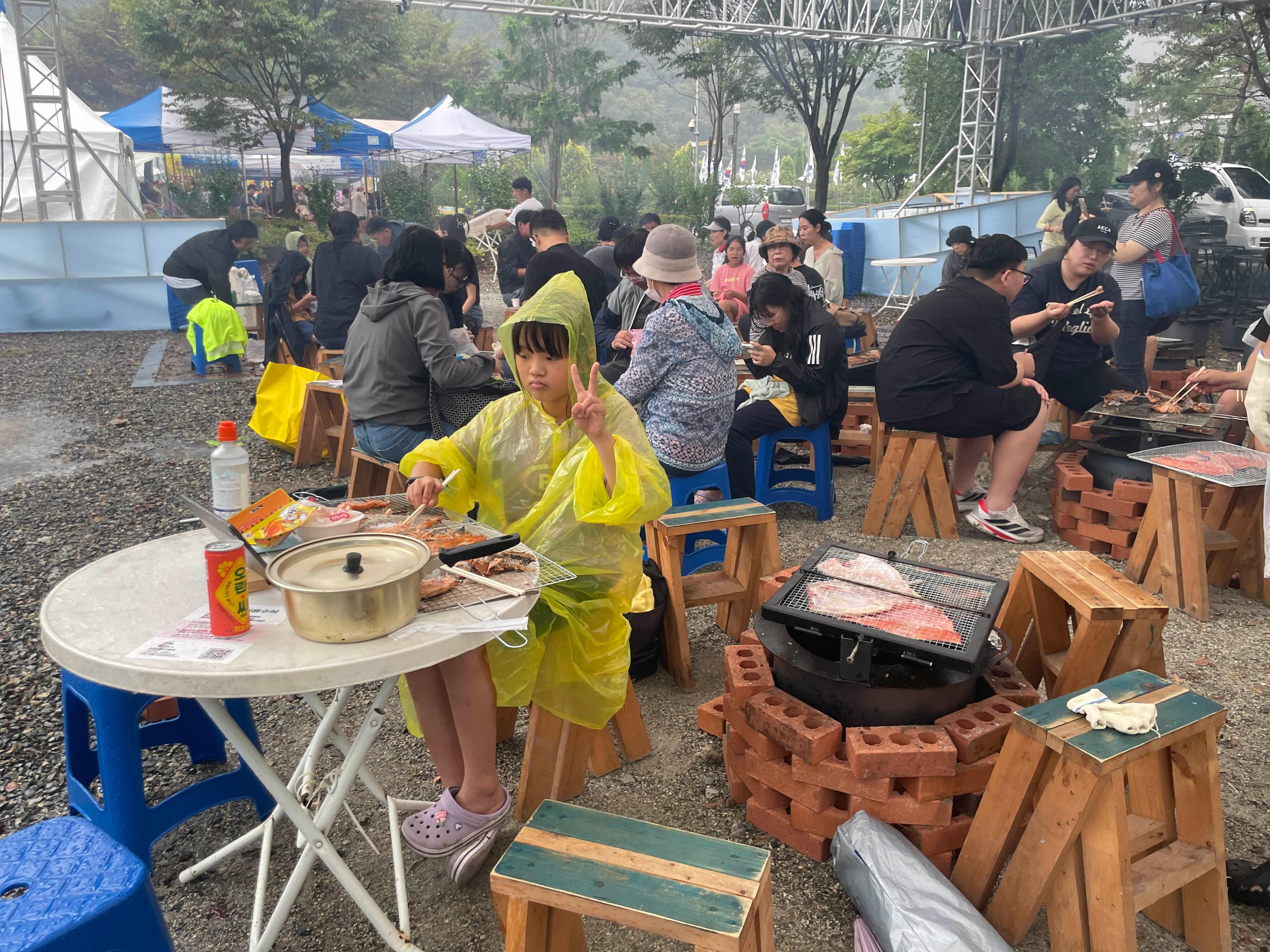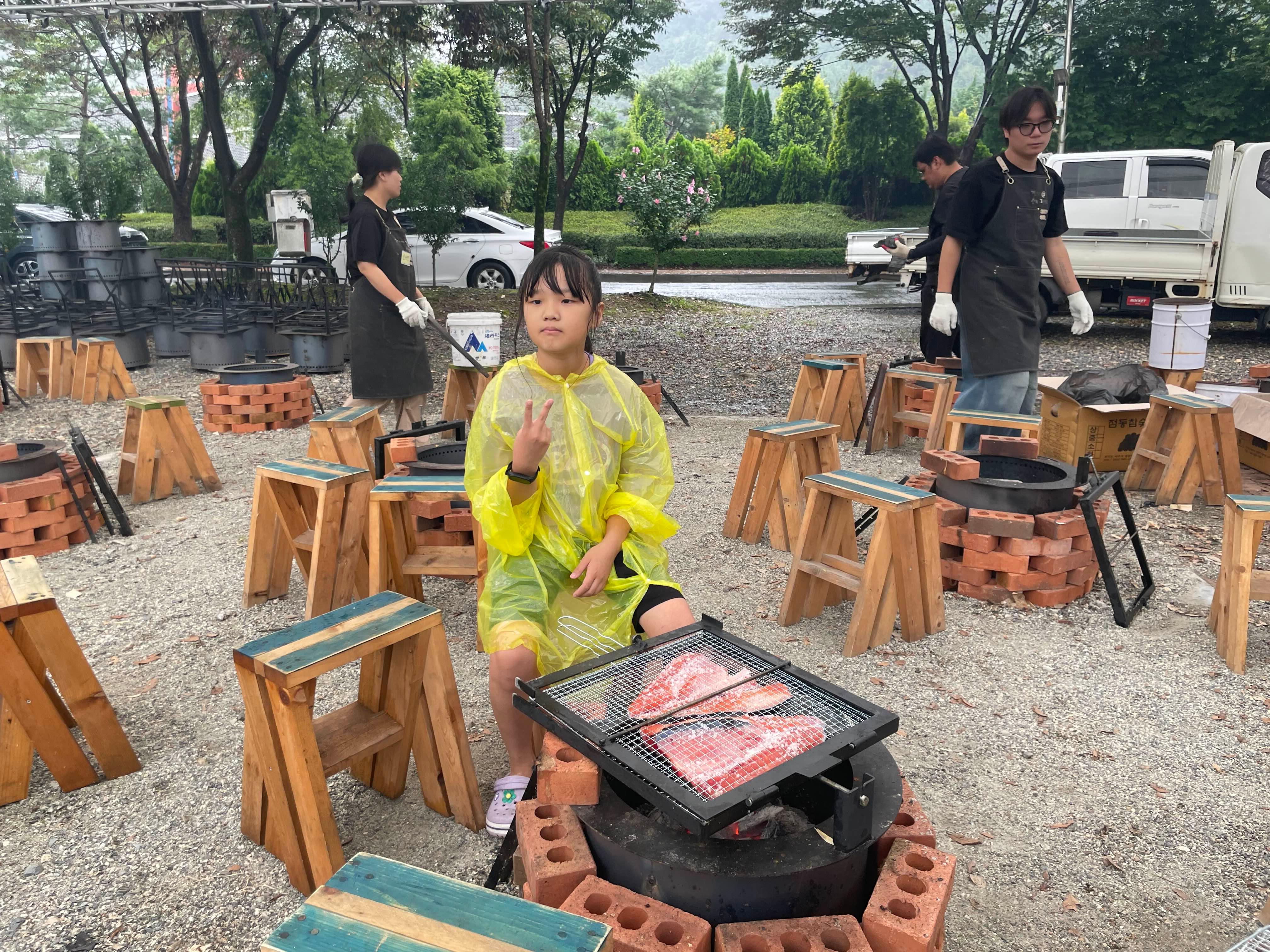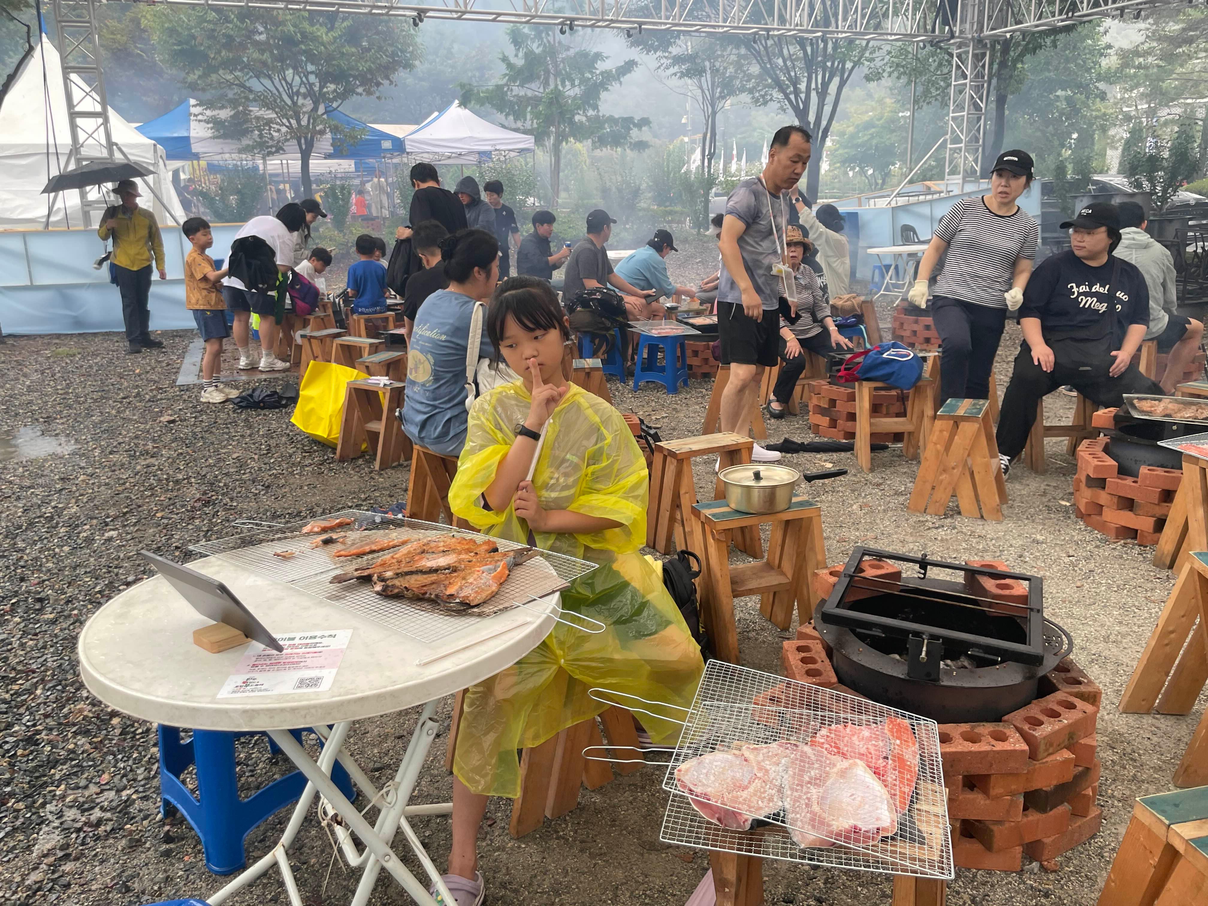화덕장소에 도착하니... 1번!! 아이에게도 물고기 잡이를 시키고 싶었지만.... 비가 내리기 시작해서, 빨리 잡고 화덕구이에 도착하니 처음이네요.ㅎㅎ 적당히 비 안내리고, 나중에 사람들이 몰려오면, 연기가 안날리는 쪽으로 자리 선점!