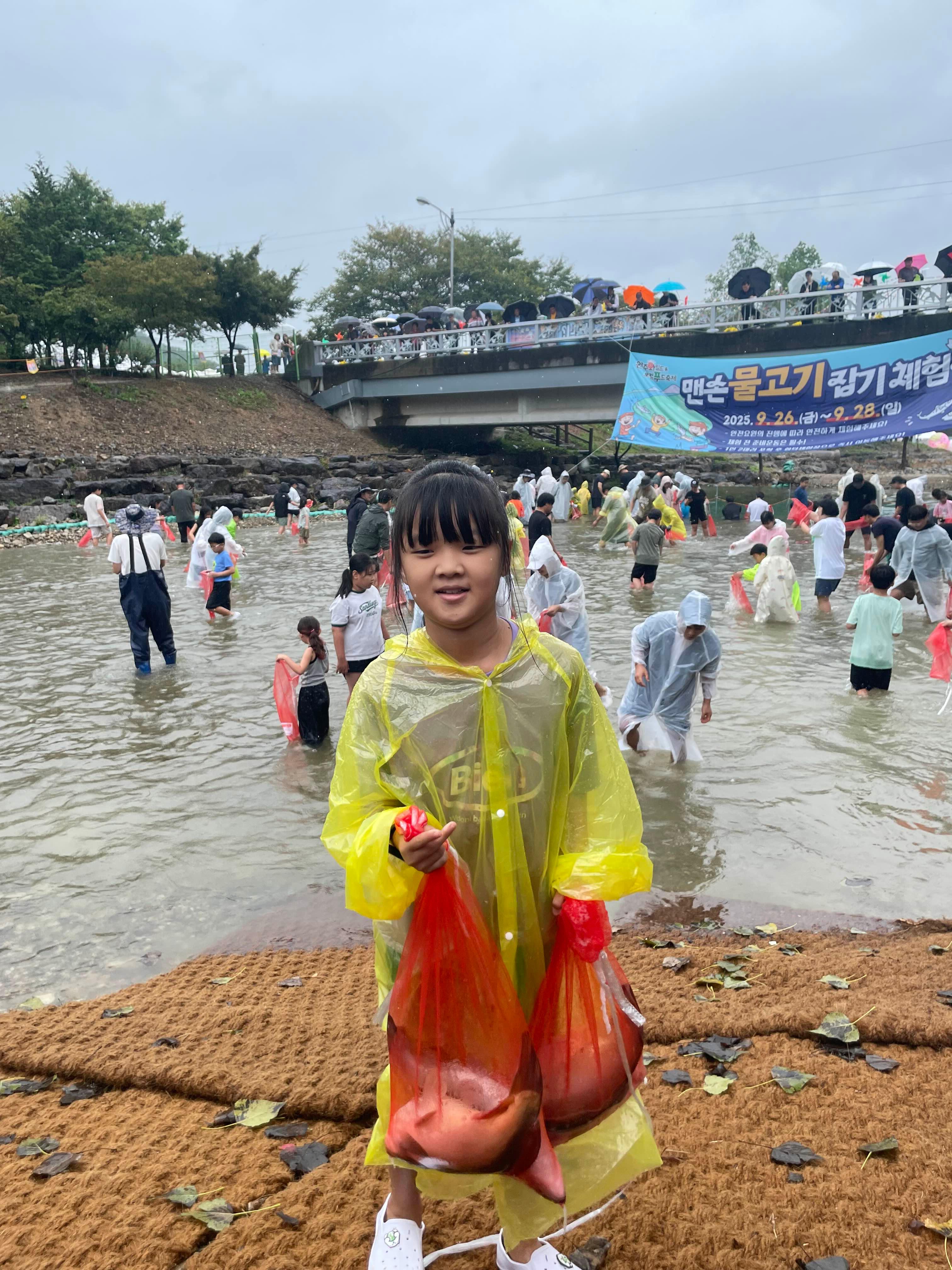 완주 와일드 로컬푸드축제에서 물고기잡기와 화덕구이 체험을 마치고... 비가 너무 많이 내린다.