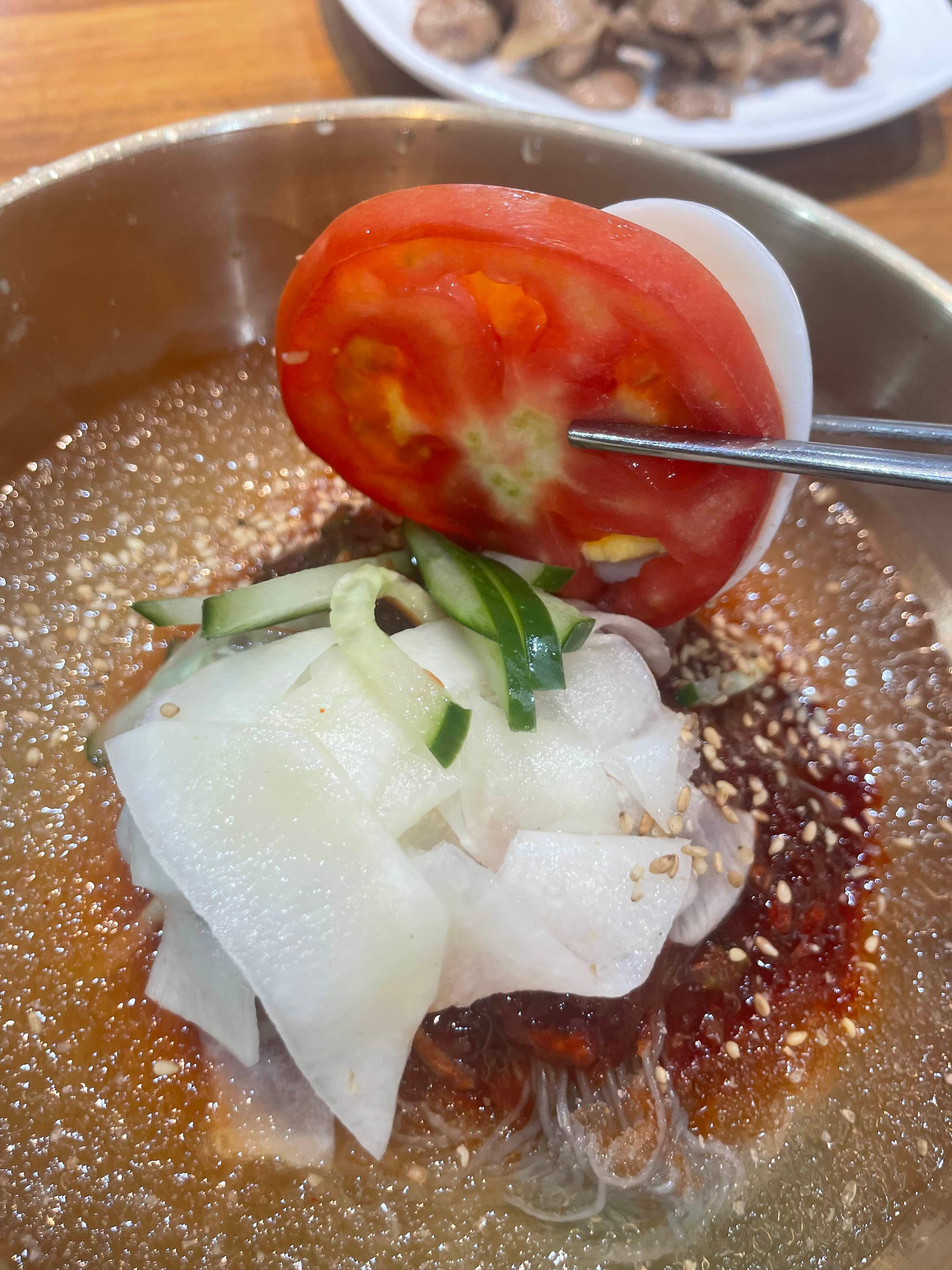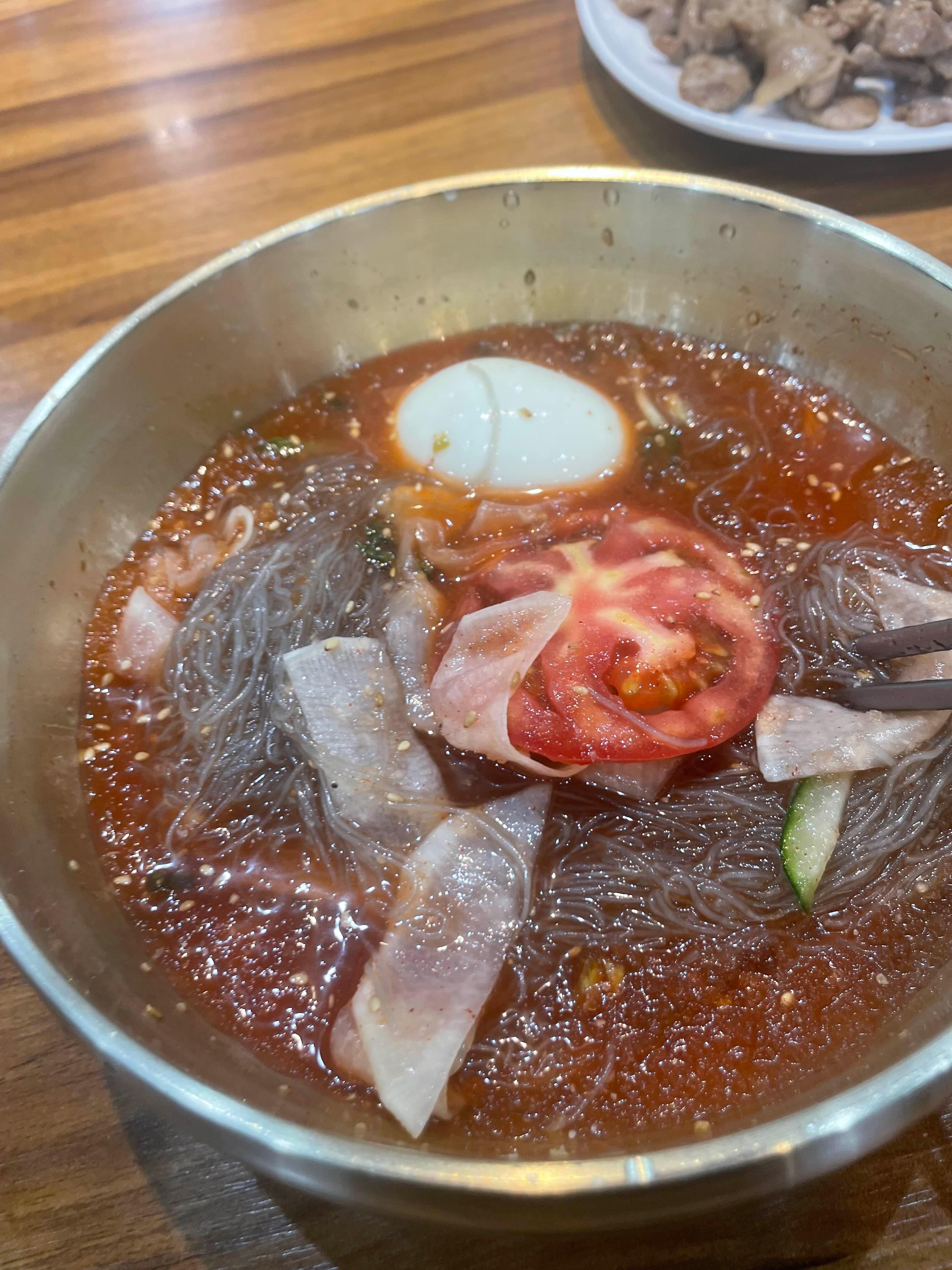 냉면은 한입 맛보는데..... 시원하다?라는.... 이빨이 얼얼할 정도의 시원함이 느껴지더군요.