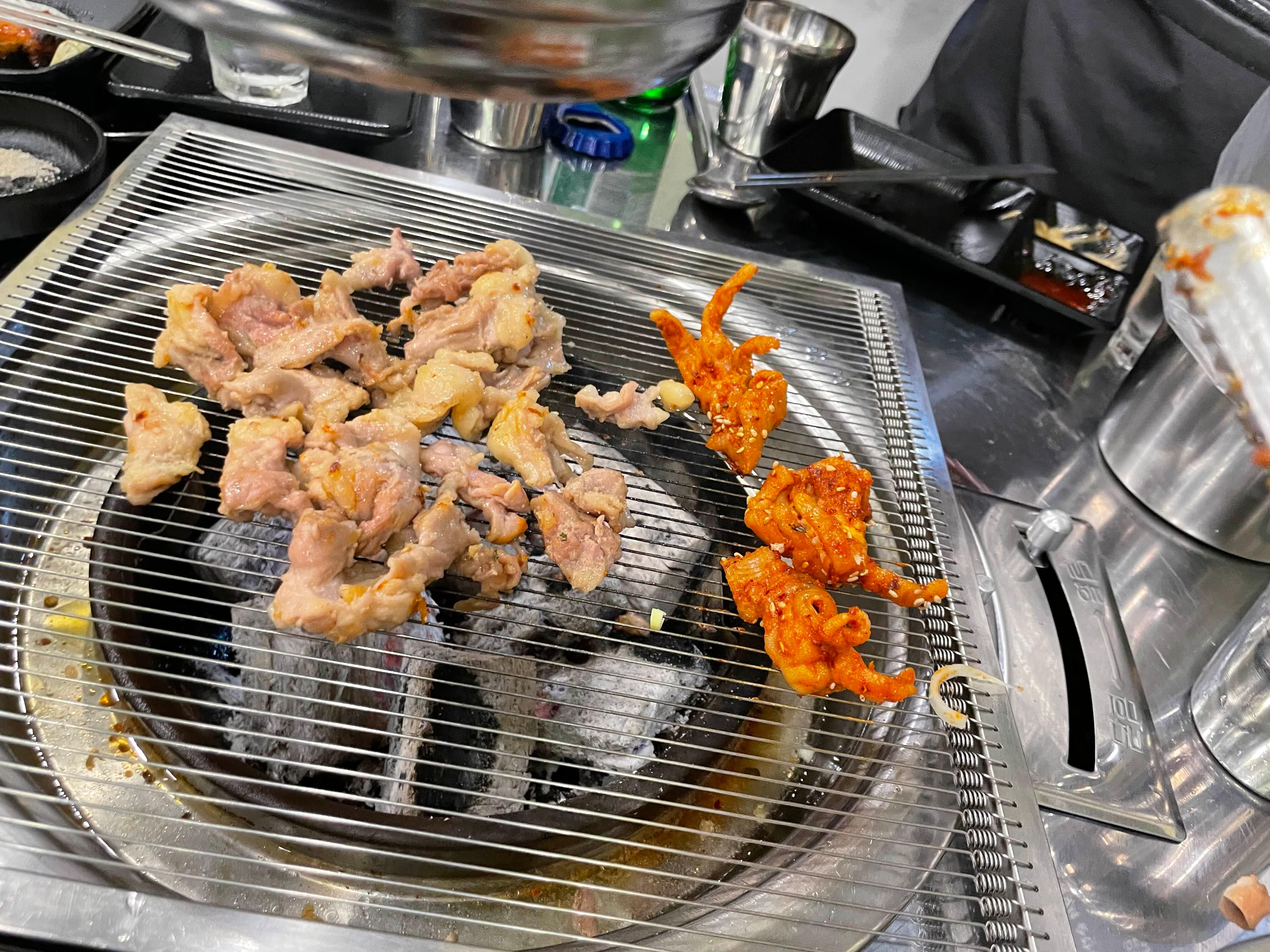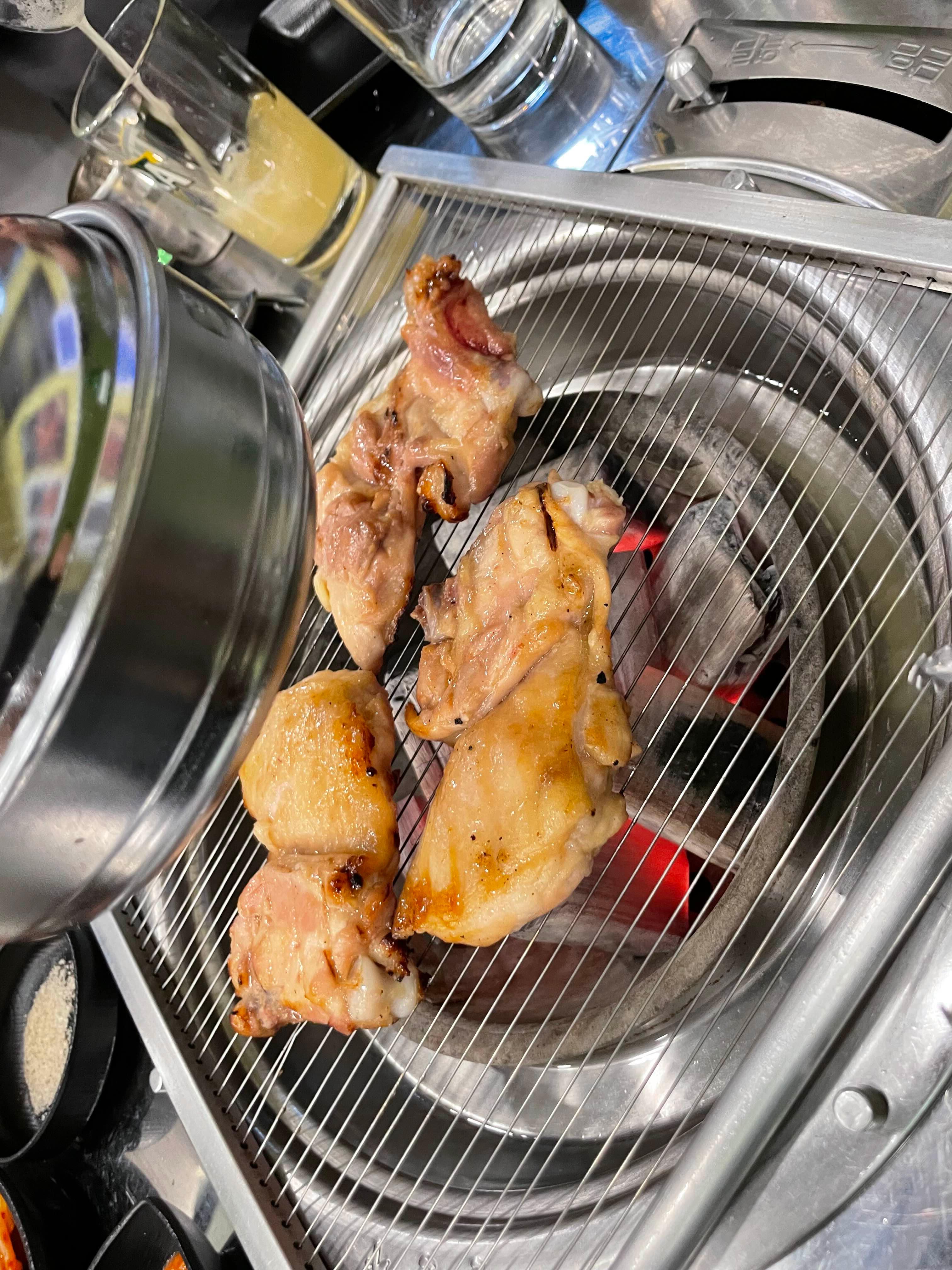 초벌된 닭갈비라 숯불에 살짝만 익혀서 먹을 수 있어서... 굽는게, 그리 불편하지는 않더군요.
