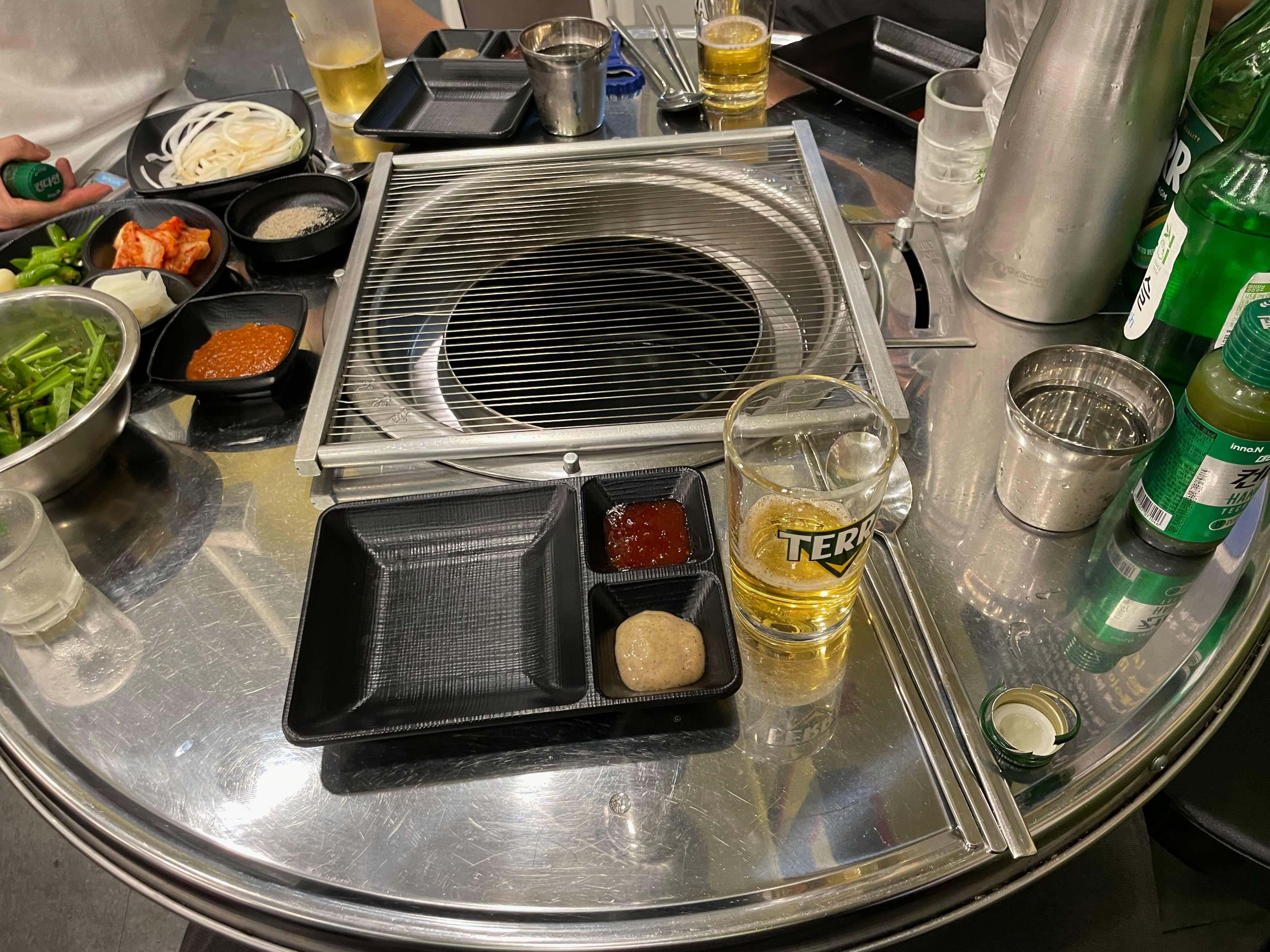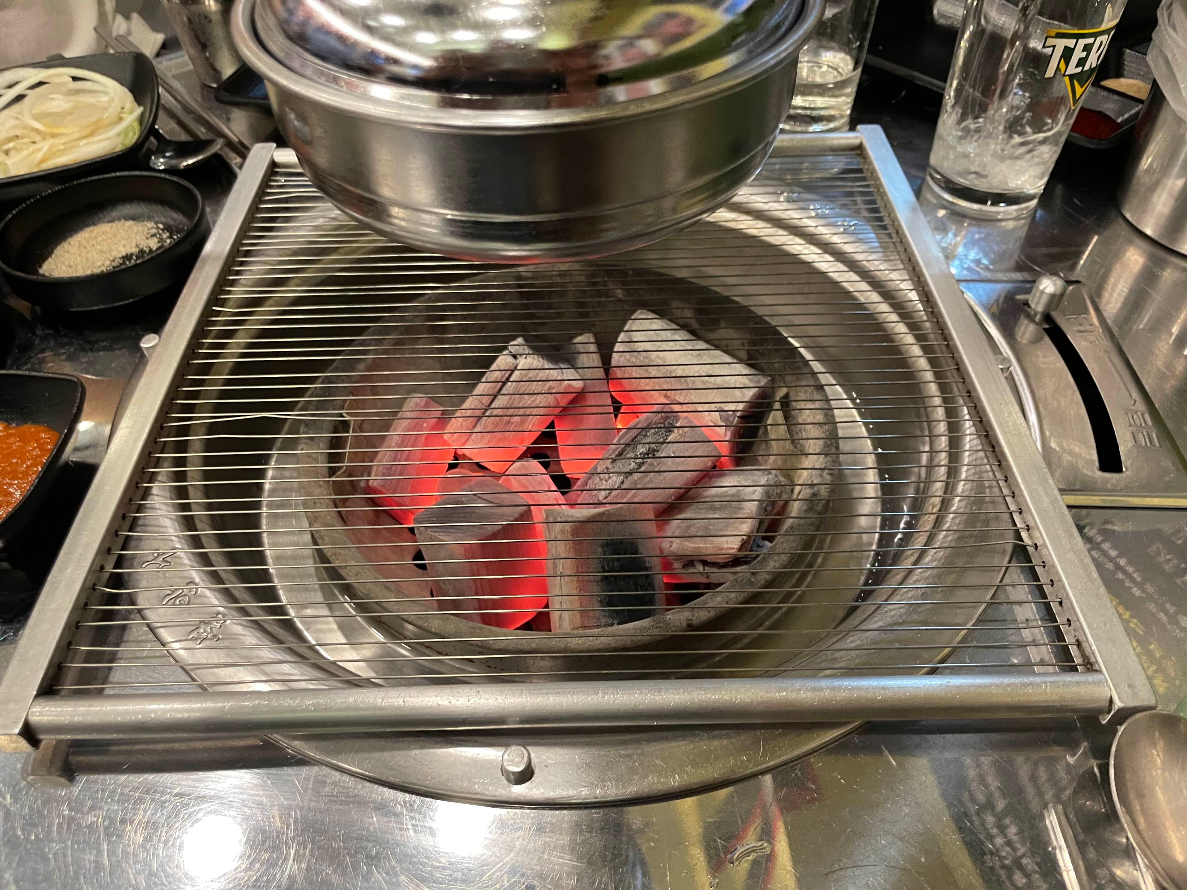 그리고, 조금 기다리면 숯불이 들어오고~~ 술도 준비완료!