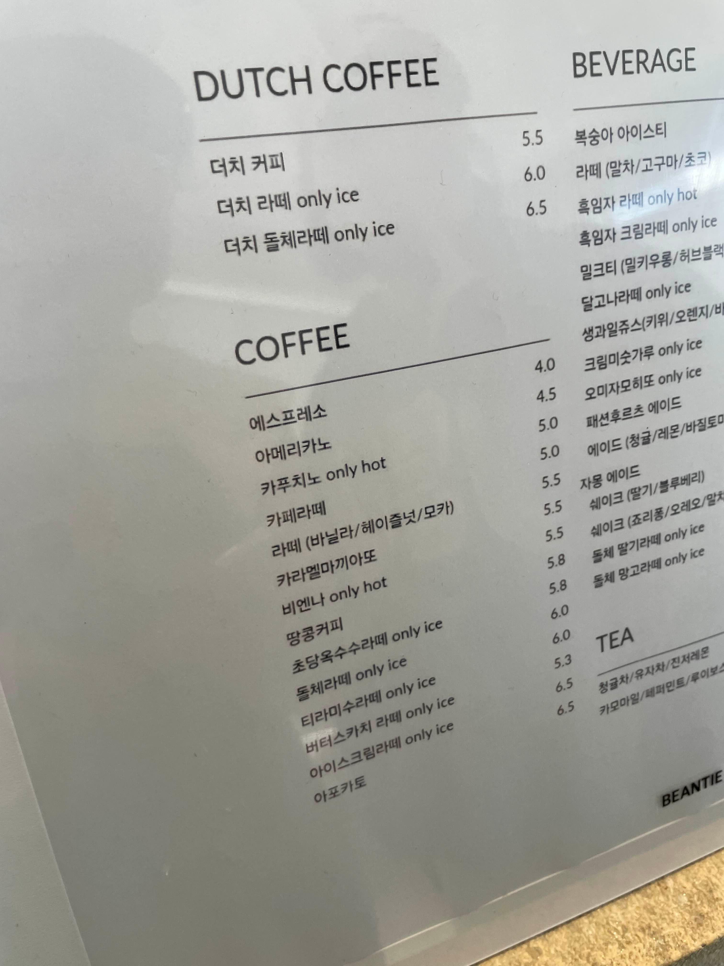 그리고, 가장 기본적인 메뉴 아이스 아메리카노 4,500원으로!! 바로 빈타이로 들어가!! 음료 주문에 들어간다.ㅎㅎ