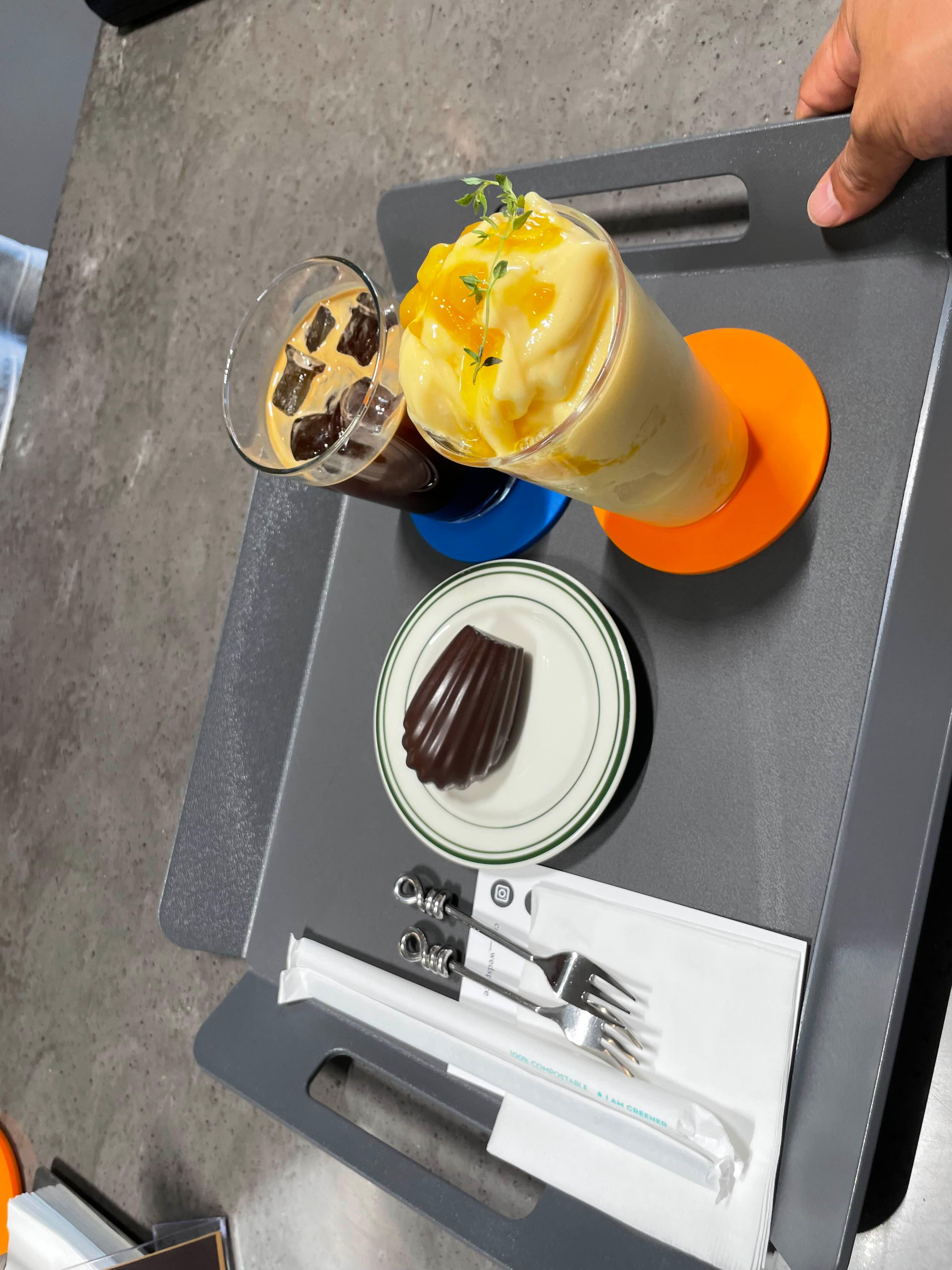 음료는 아이스아메리카노, 아이용 망고 스무디 그리고 초코 마들렌 하나씩 주문했다.
