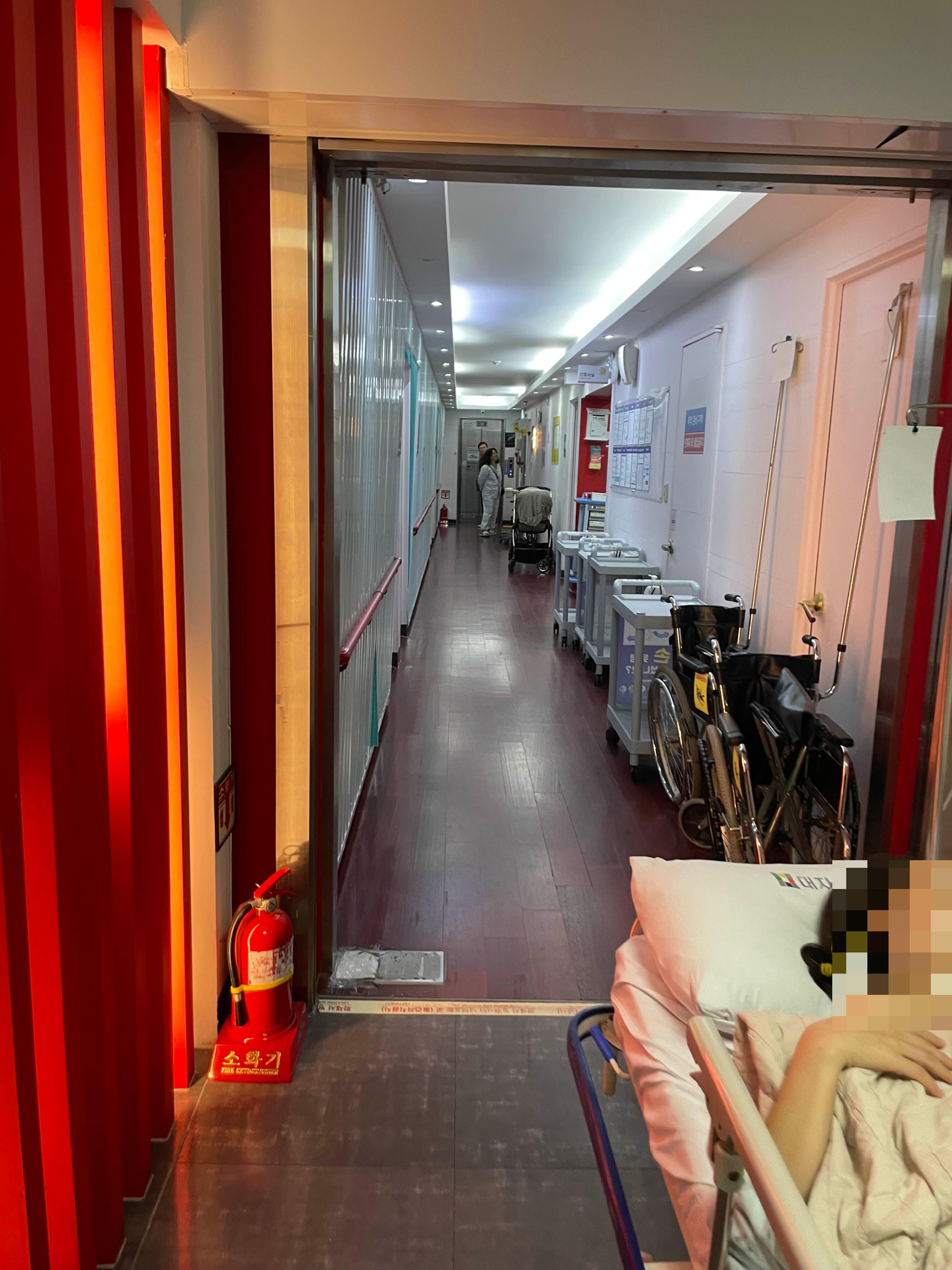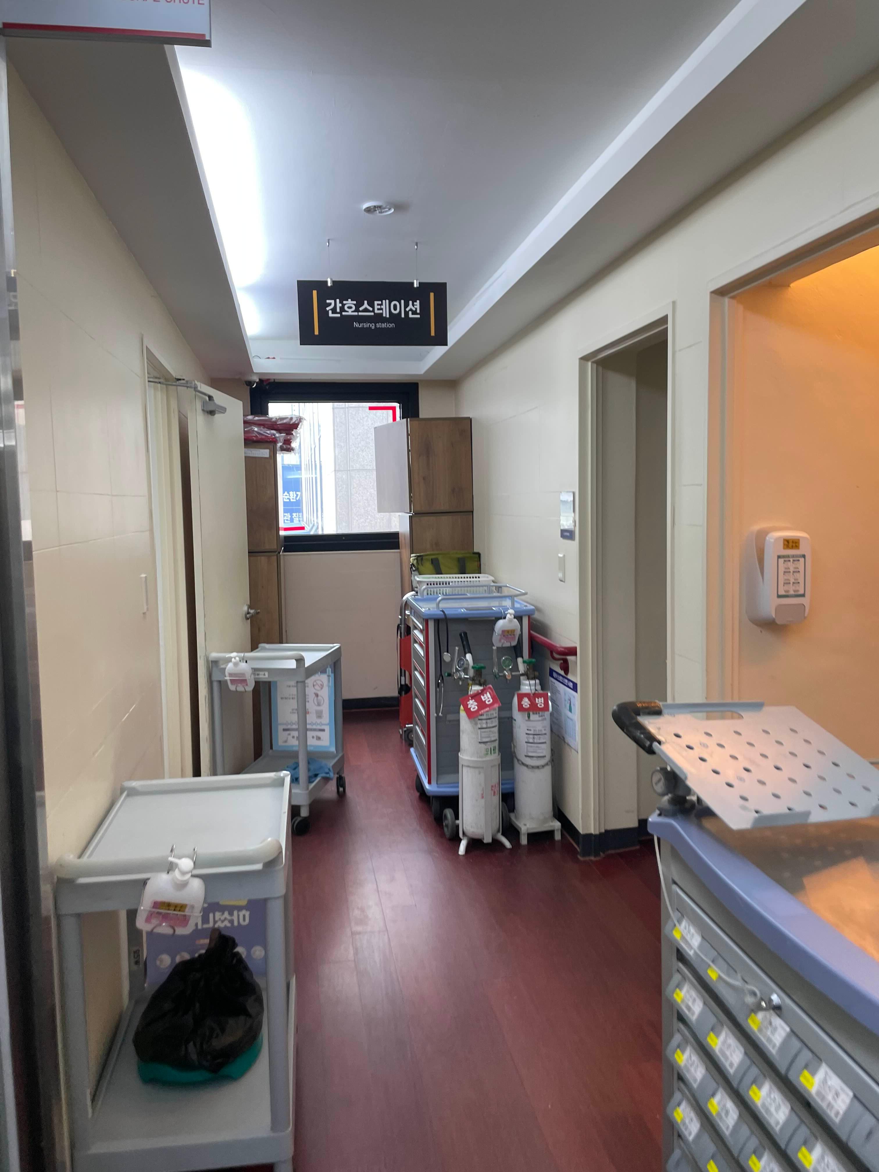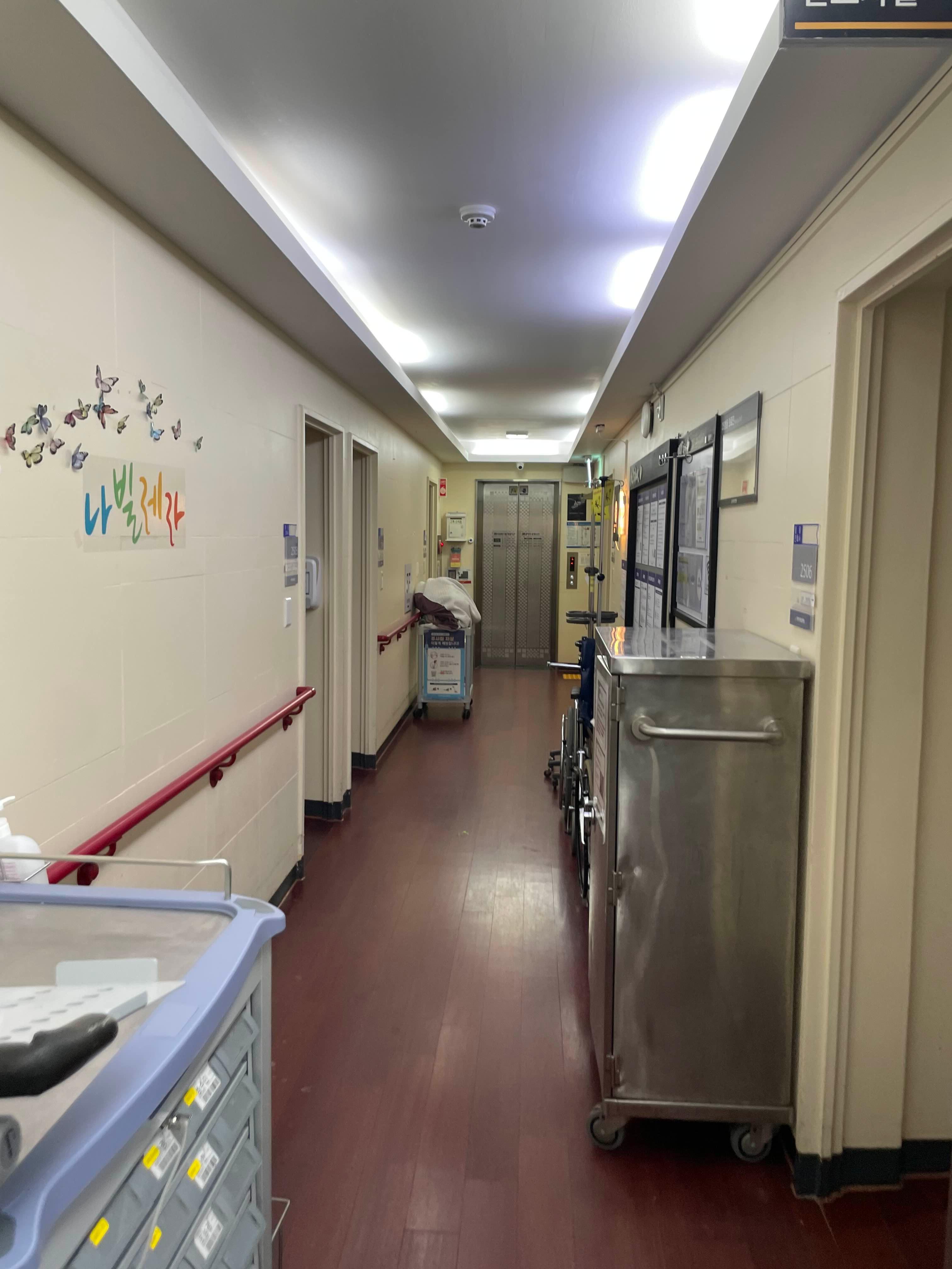 음!! 예전에 모텔을 리모델링한 병실이라, 복도가 상당히 비좁더군요.