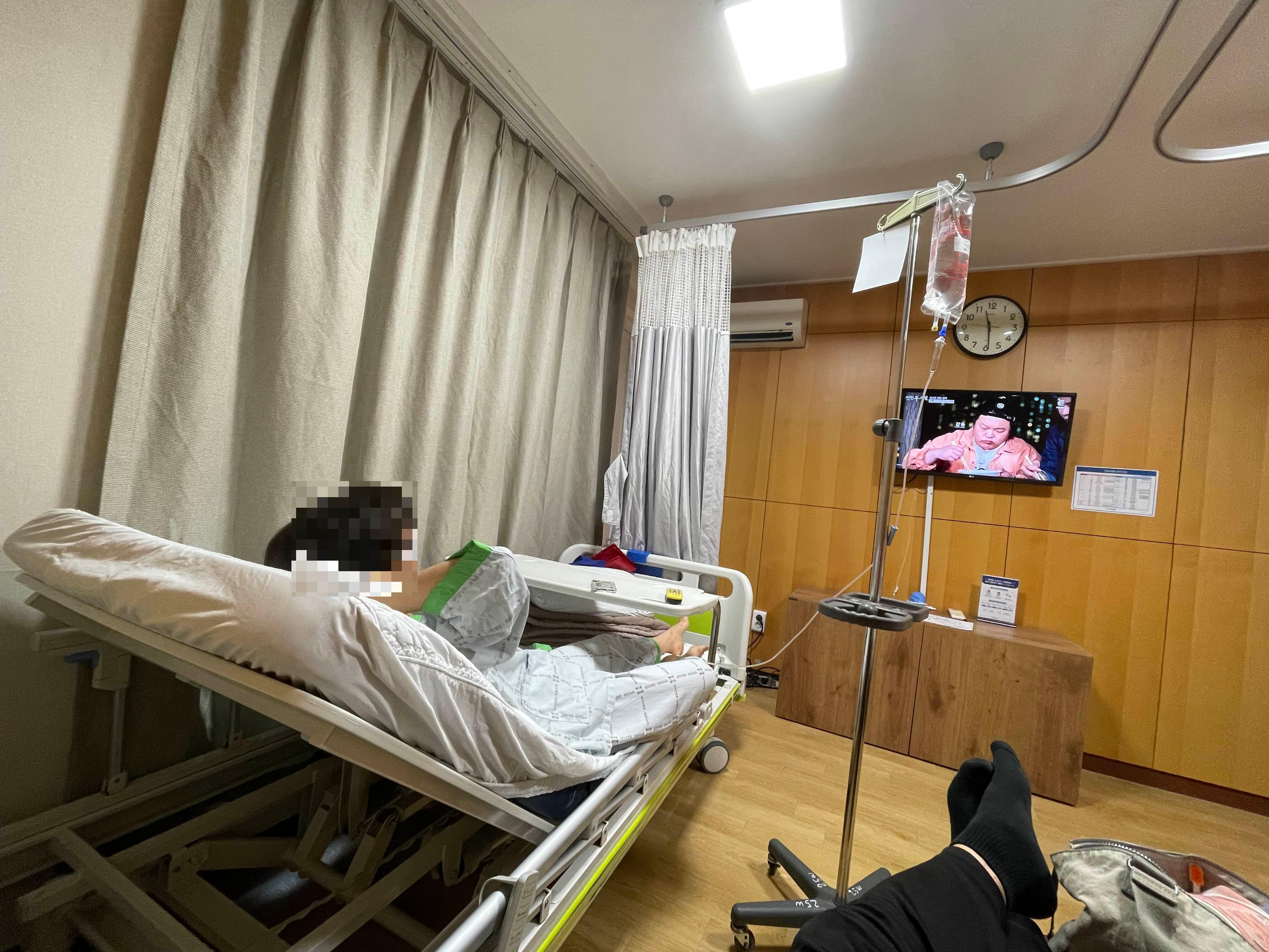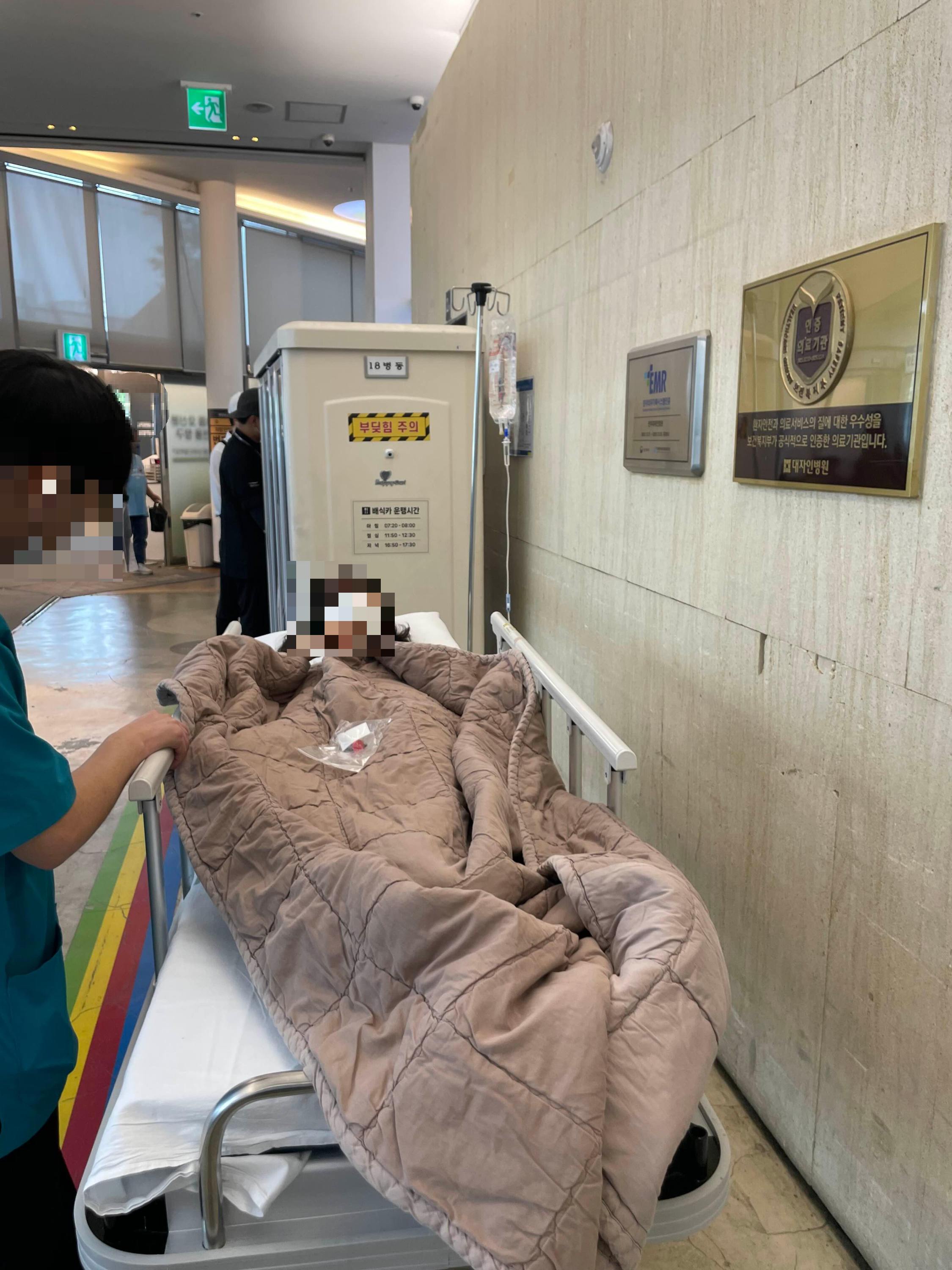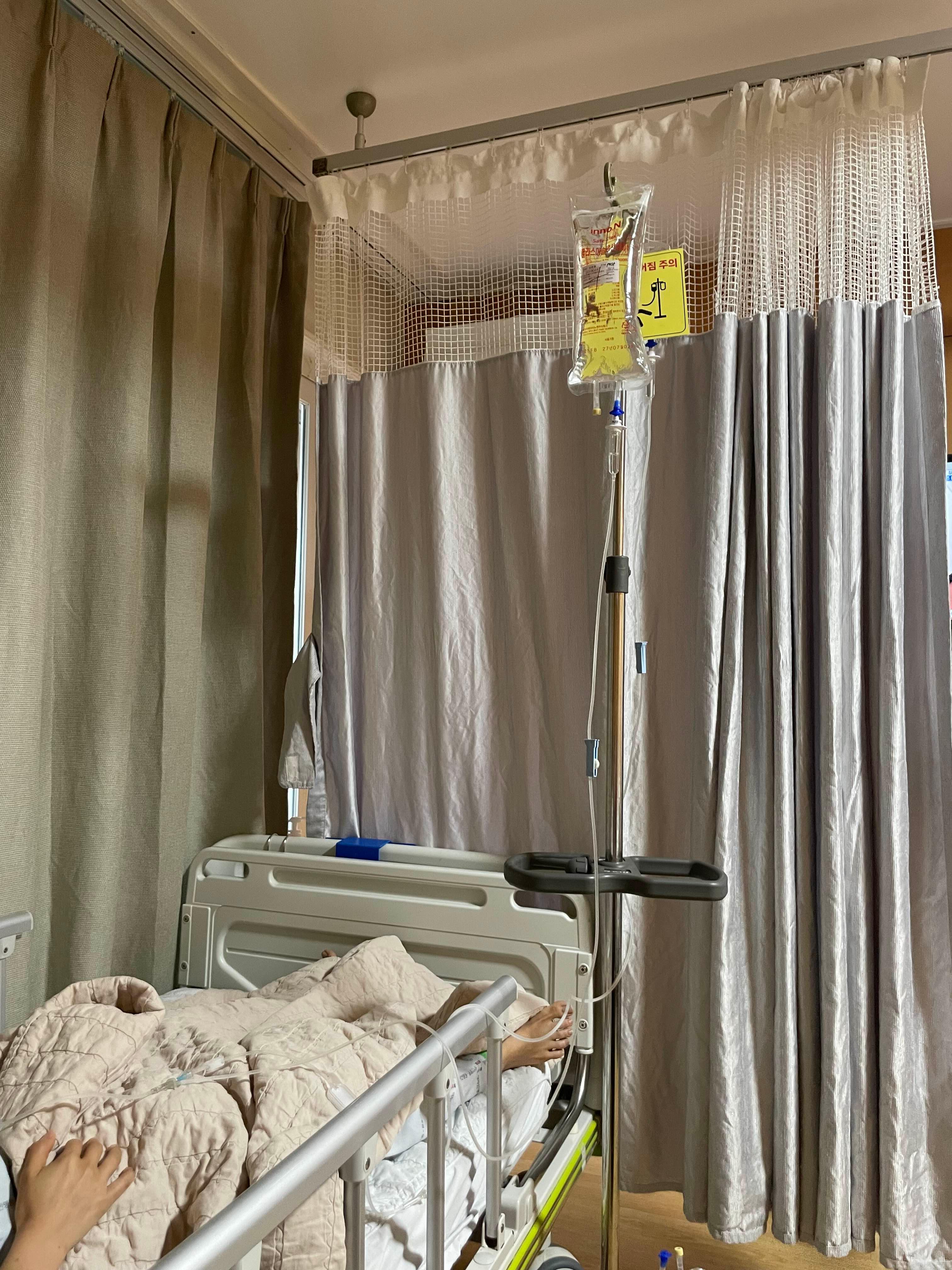 대형병원에는 병실침대 옆 보호자 침대가 마련되어 있는데.... 보호자는 바닥에서 생활하는 시스템이더군요.ㅎㅎ