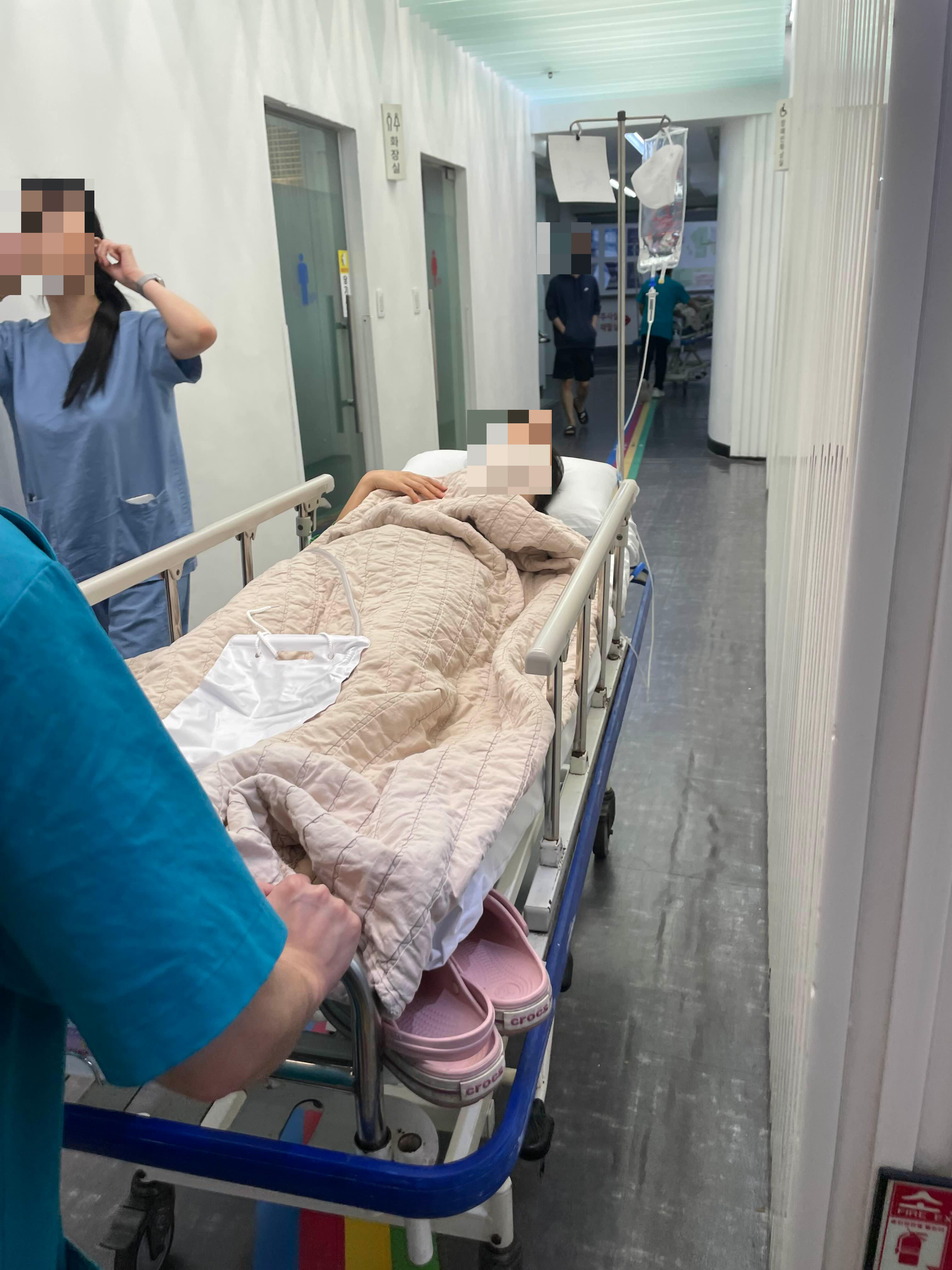 병실 7층에서 1층까지 휠체어로 이동했다고, 1층에서 침대로 옮겨 타고 수술실 병동으로 이동!ㅎㅎ