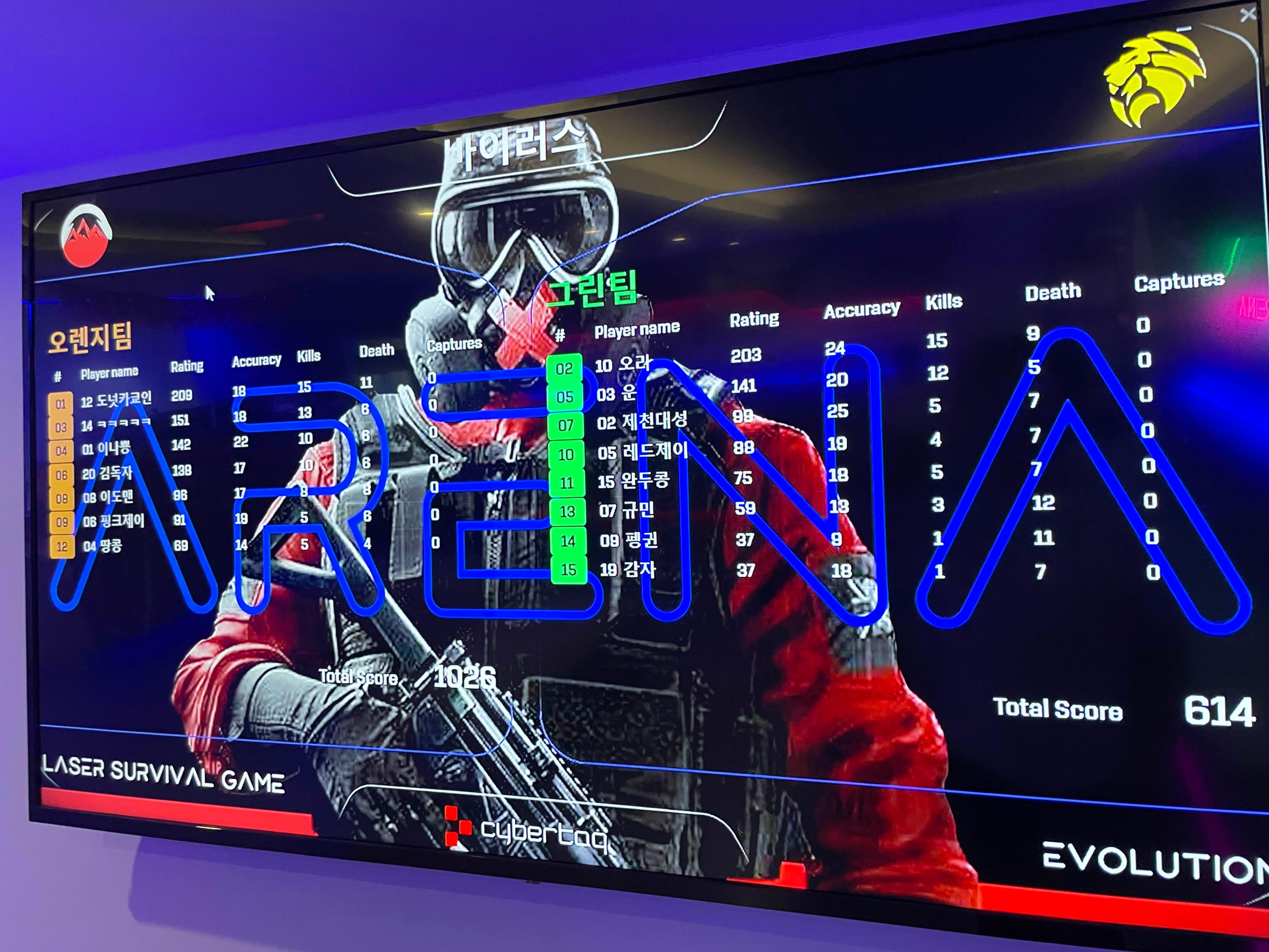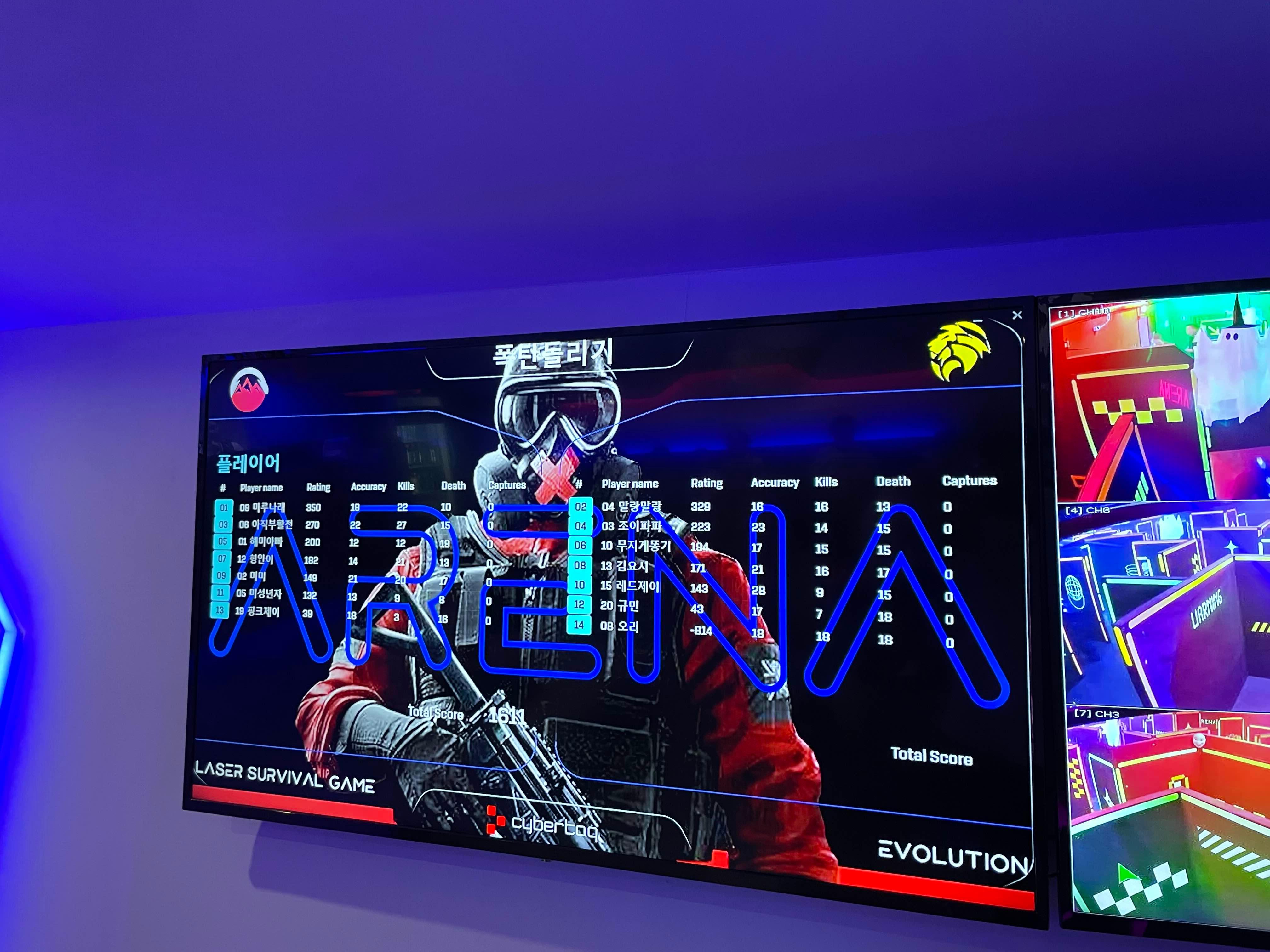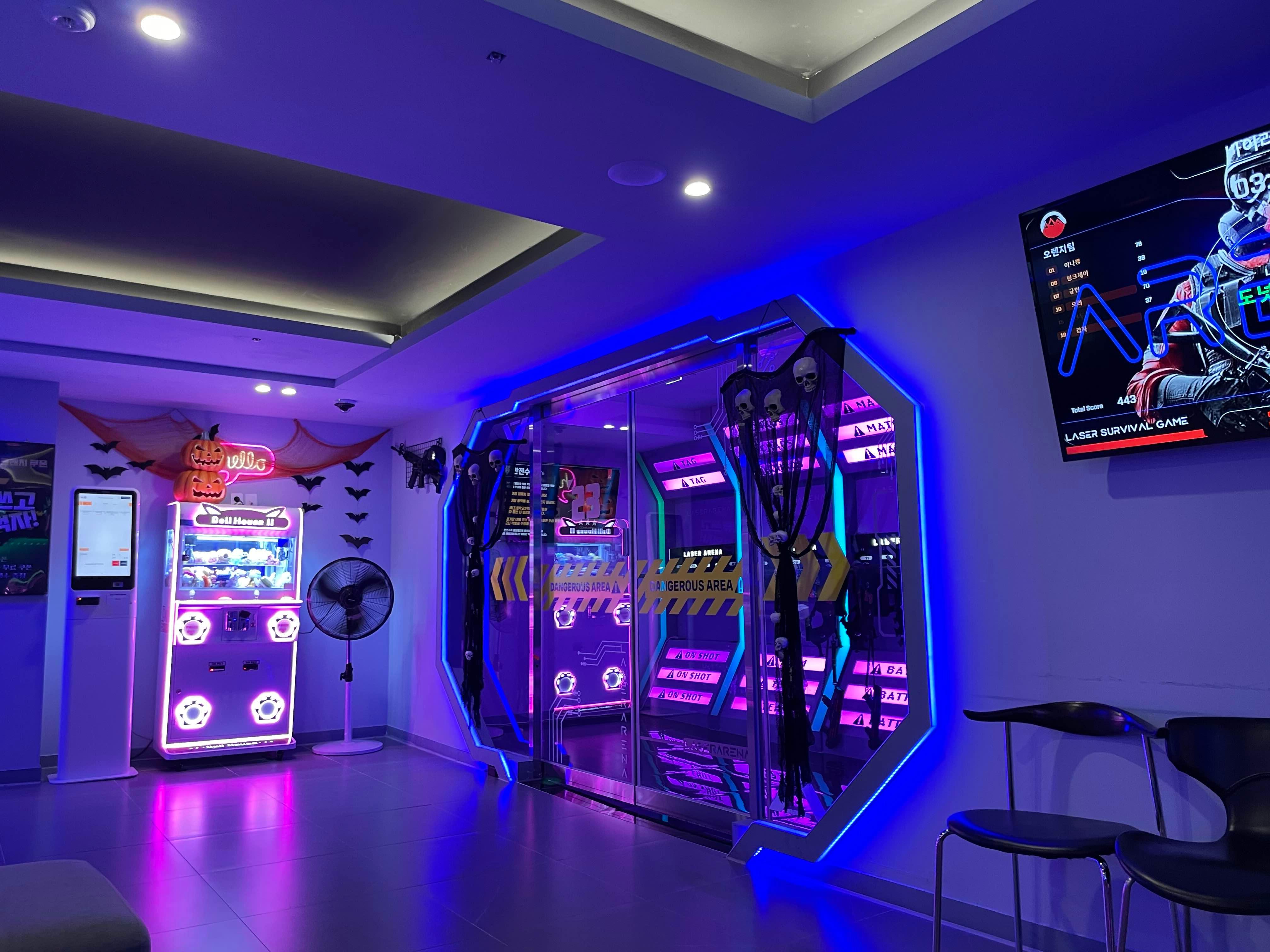 게임장은 레이저건과 레이저건을 인식하는 센서를 입고 투입하더군요.