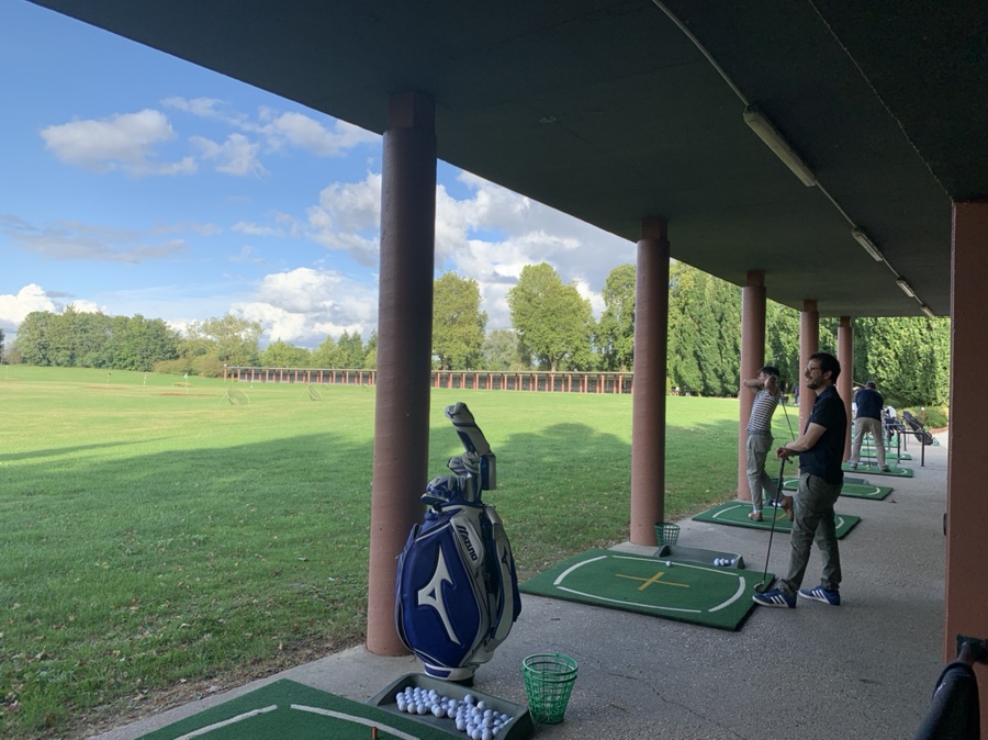 한국에 약 1,200개의 실외 골프연습장이 운영하고 있지만 대부분 골프공이 외부로 날아가는 망을 설치하는 철 구조물로 되어 있습니다. 도심지의 위치하여 접근성이 좋기는 하지만, 철 구조물이 그렇게 좋아 보이지는 않습니다. 더욱이 태풍이나 대설이 있을 경우 무너지는 골프장을 어렵지 않게 볼 수가 있습니다. 이런 한국의 골프연습장을 생각하며 프랑스 골프연습장을 방문하였으나.... 한국의 철 구조물은 안 보이고 넓은 잔드가 보이더군요. 골프연습장에 도착했을 때 많은 사람들이 타석에서 연습하고 있었네요.
