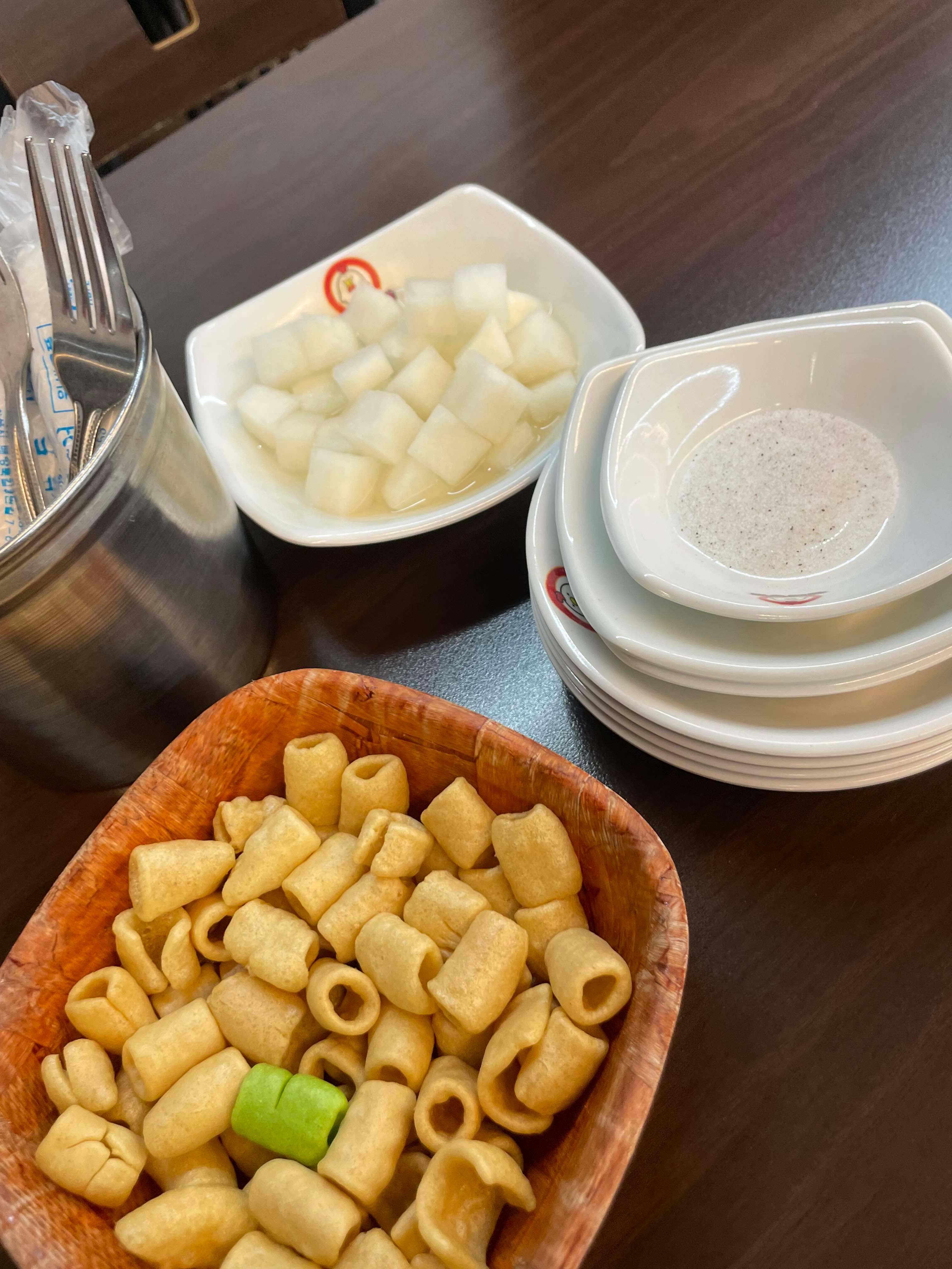 음식을 주문하니 치킨무와 마카로니!!