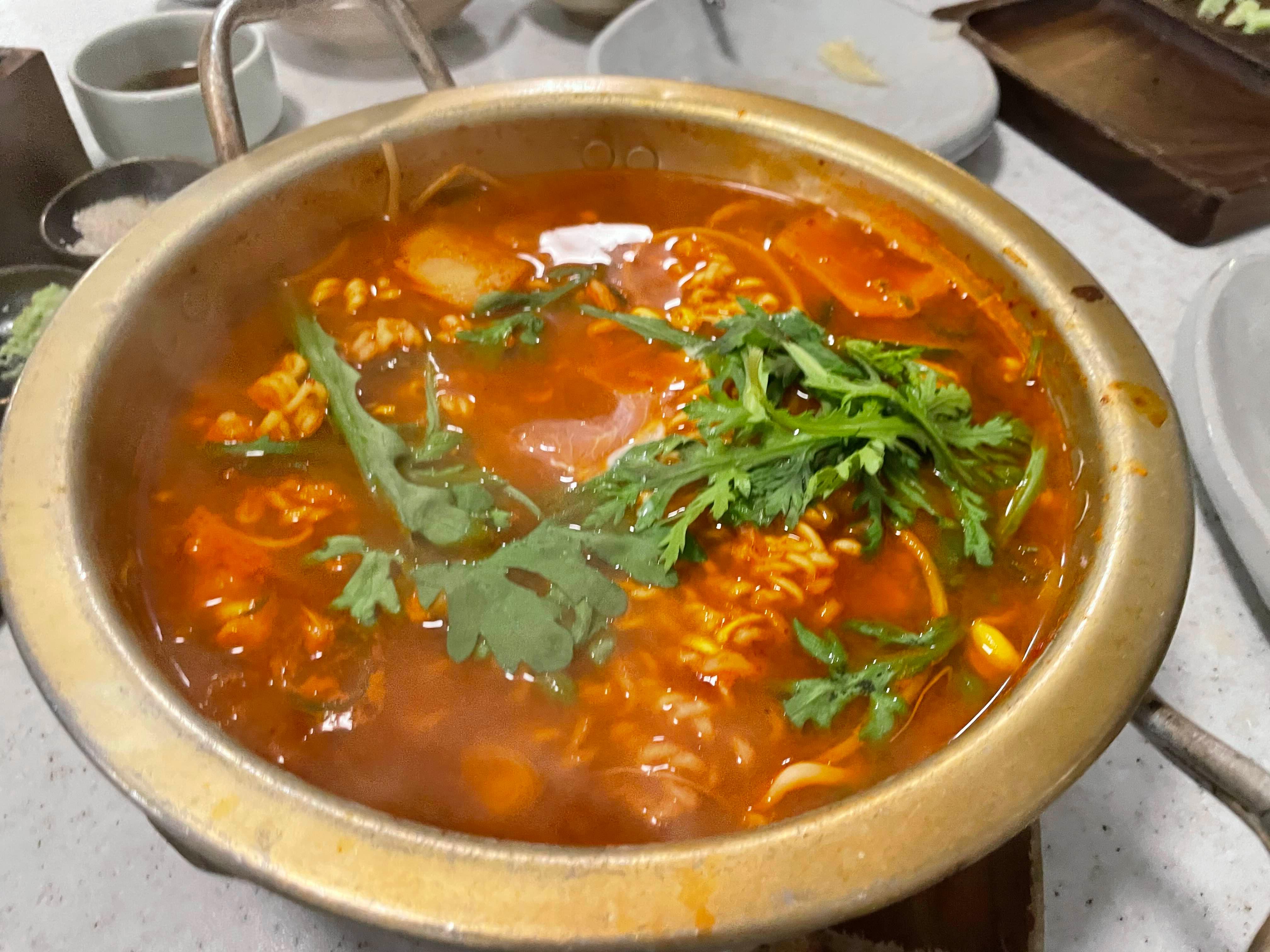 후식으로.... 이 식당의 대표찌개인 고추장찌개 라면으로 하나 주문해 보았습니다.