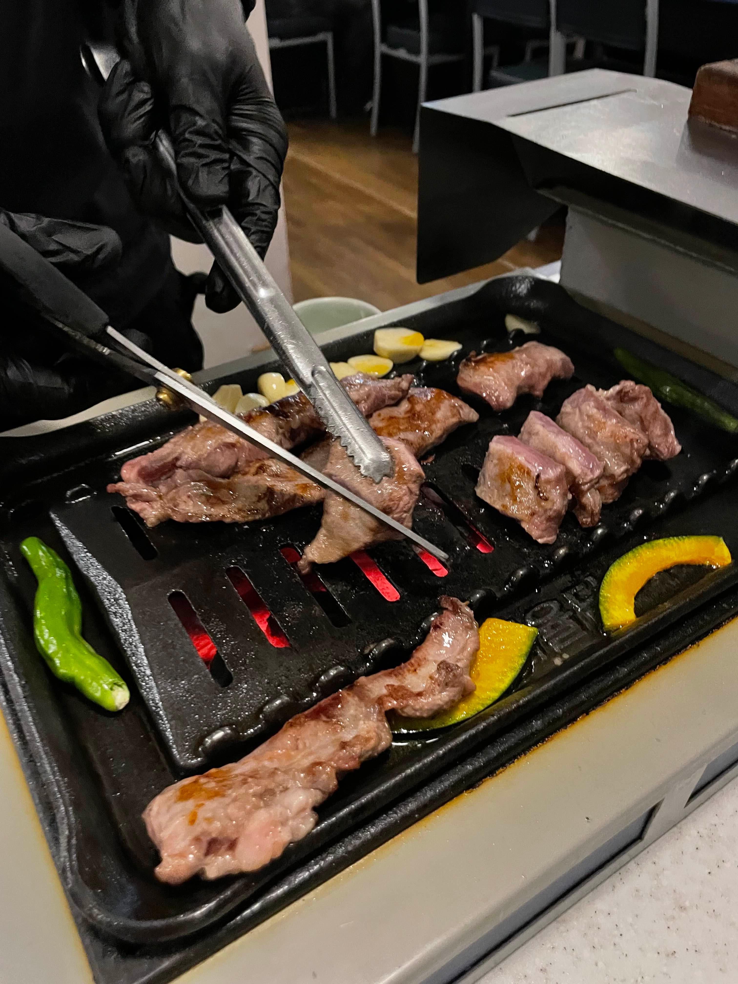 숯불이 올려지고 주문한 고기 2인분!! 4덩어리~