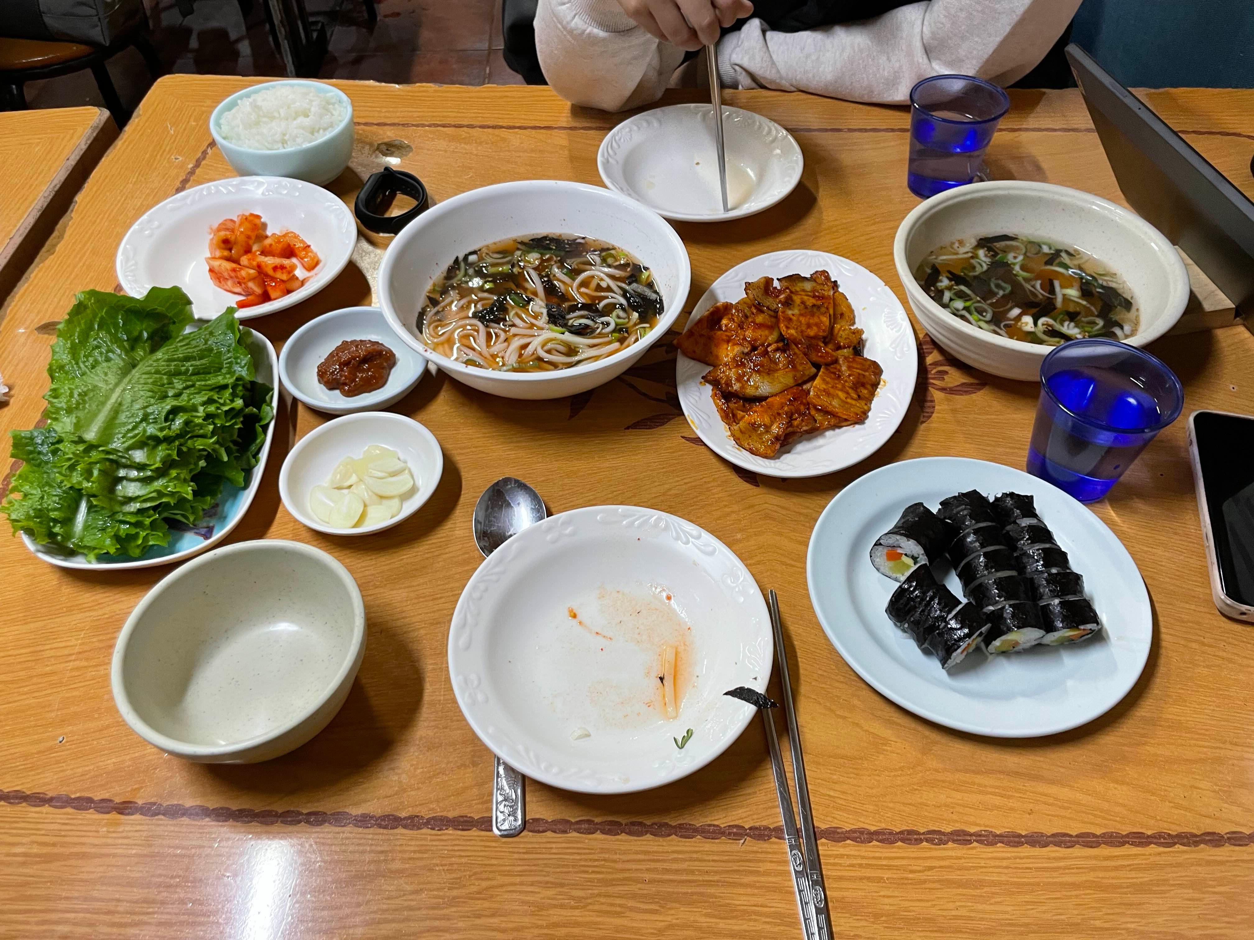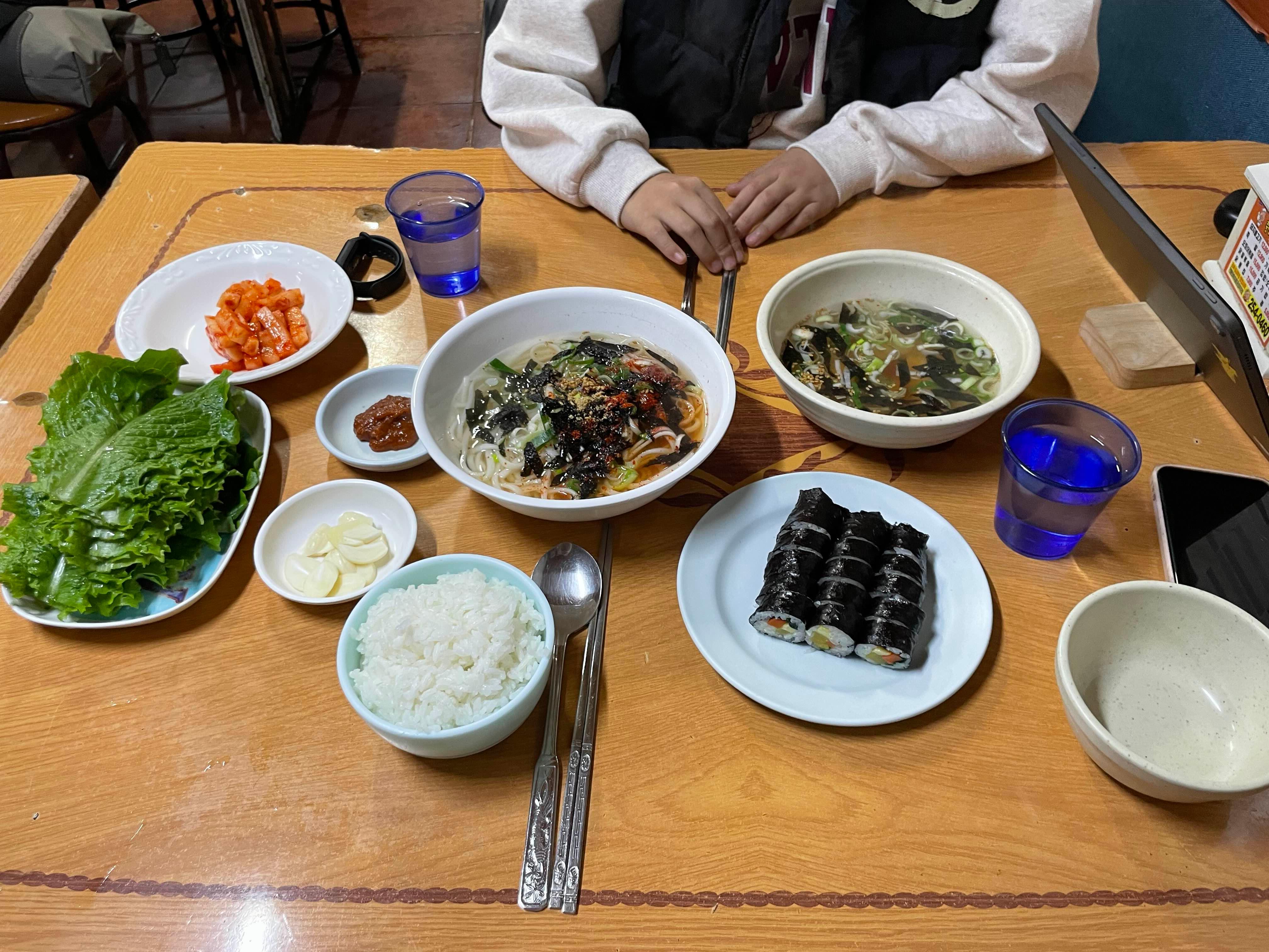 돼지불고기, 가락국수, 김밥, 공깃밥 하나씩 주문했습니다.