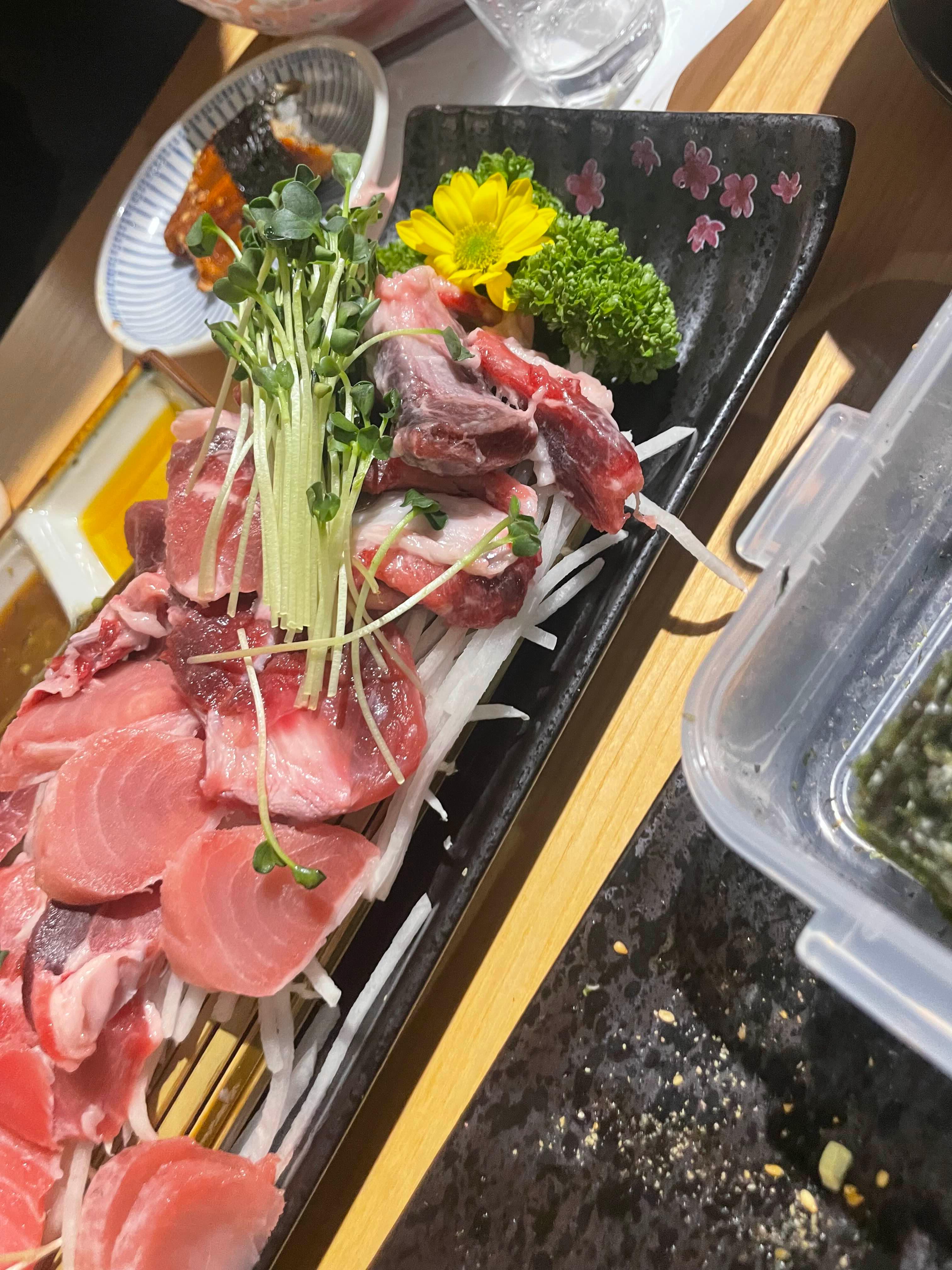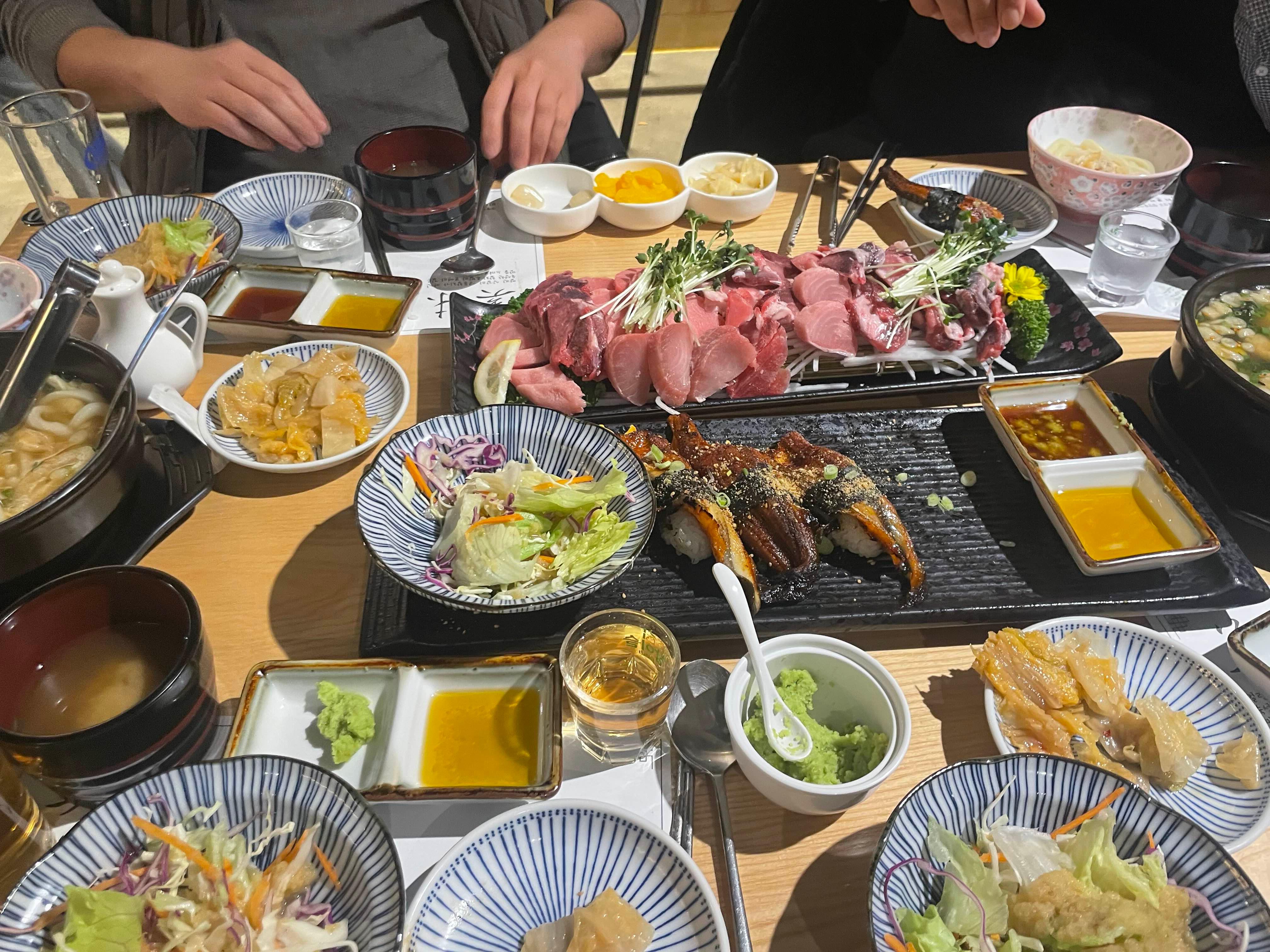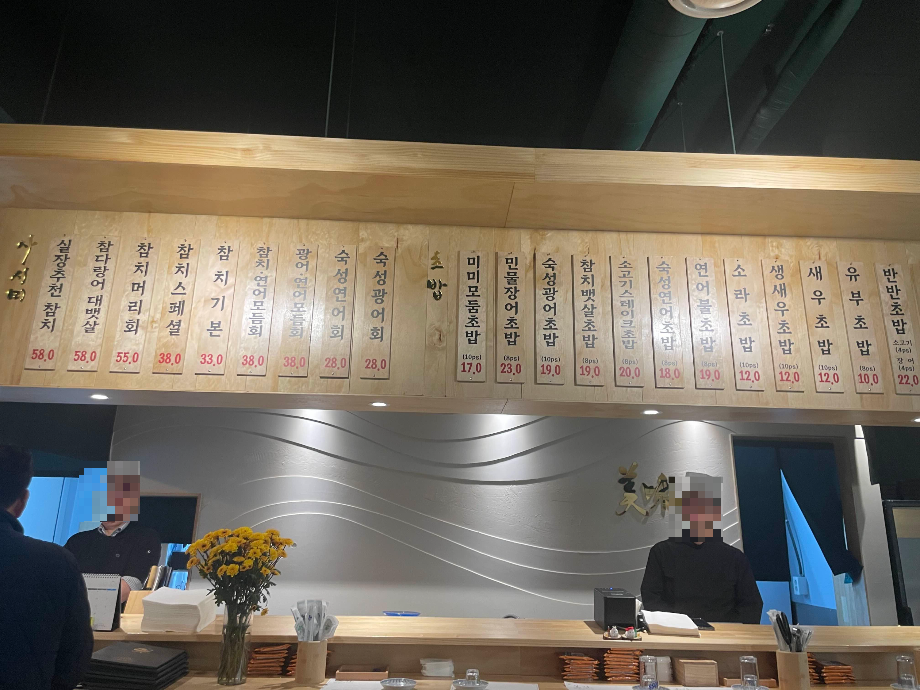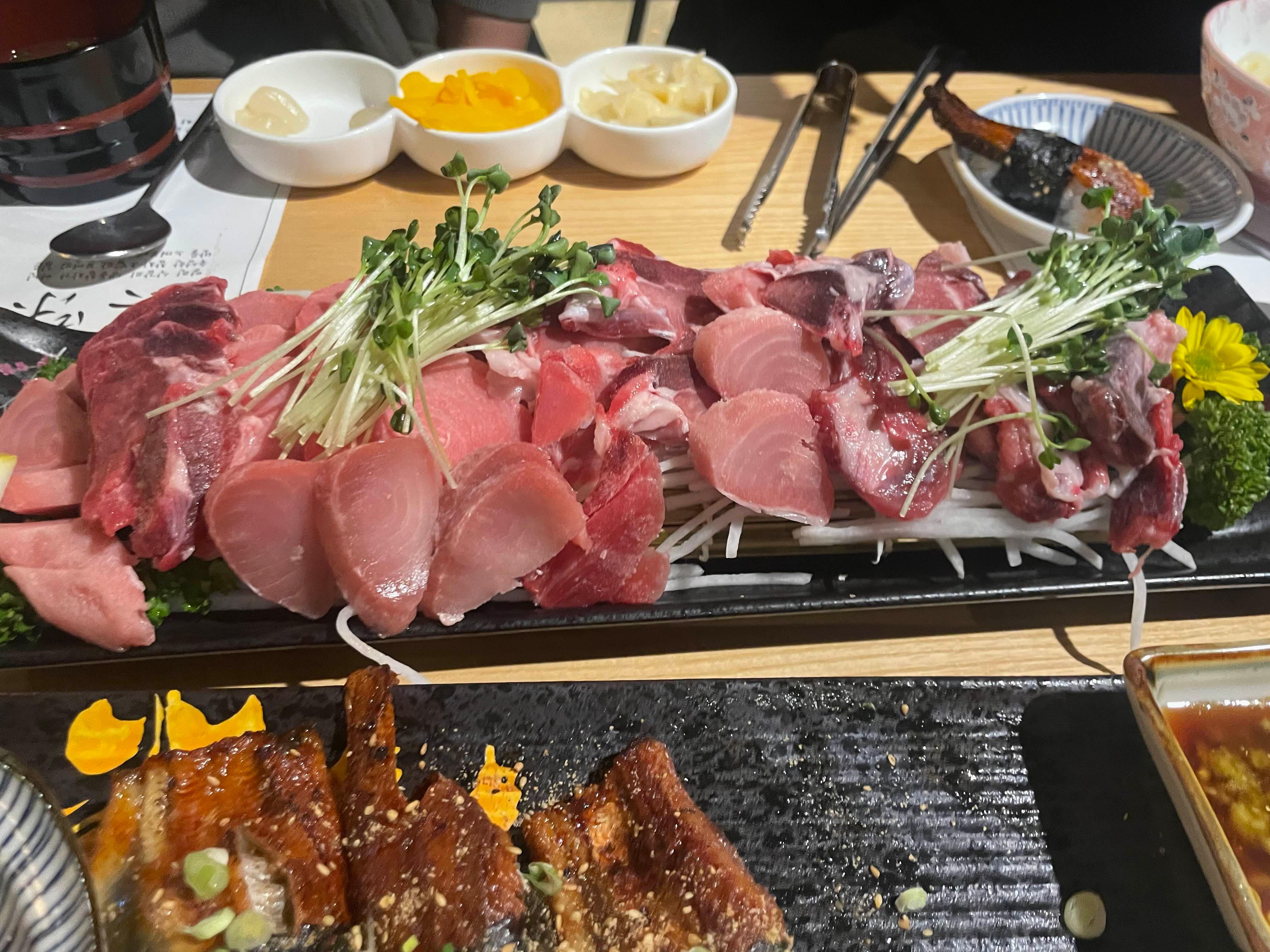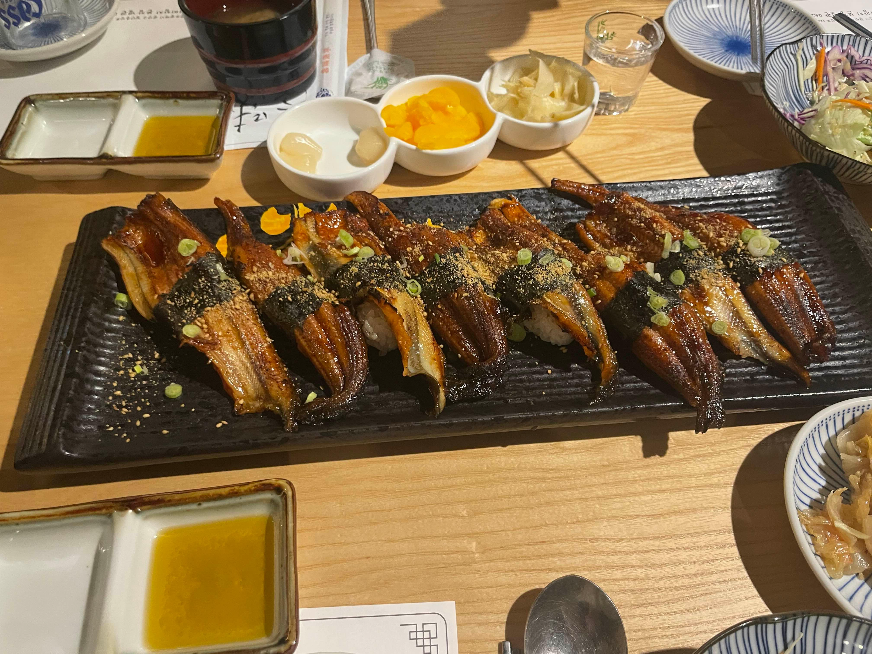 민물장어초밥과 참치머리회를 하나씩 주문했습니다.