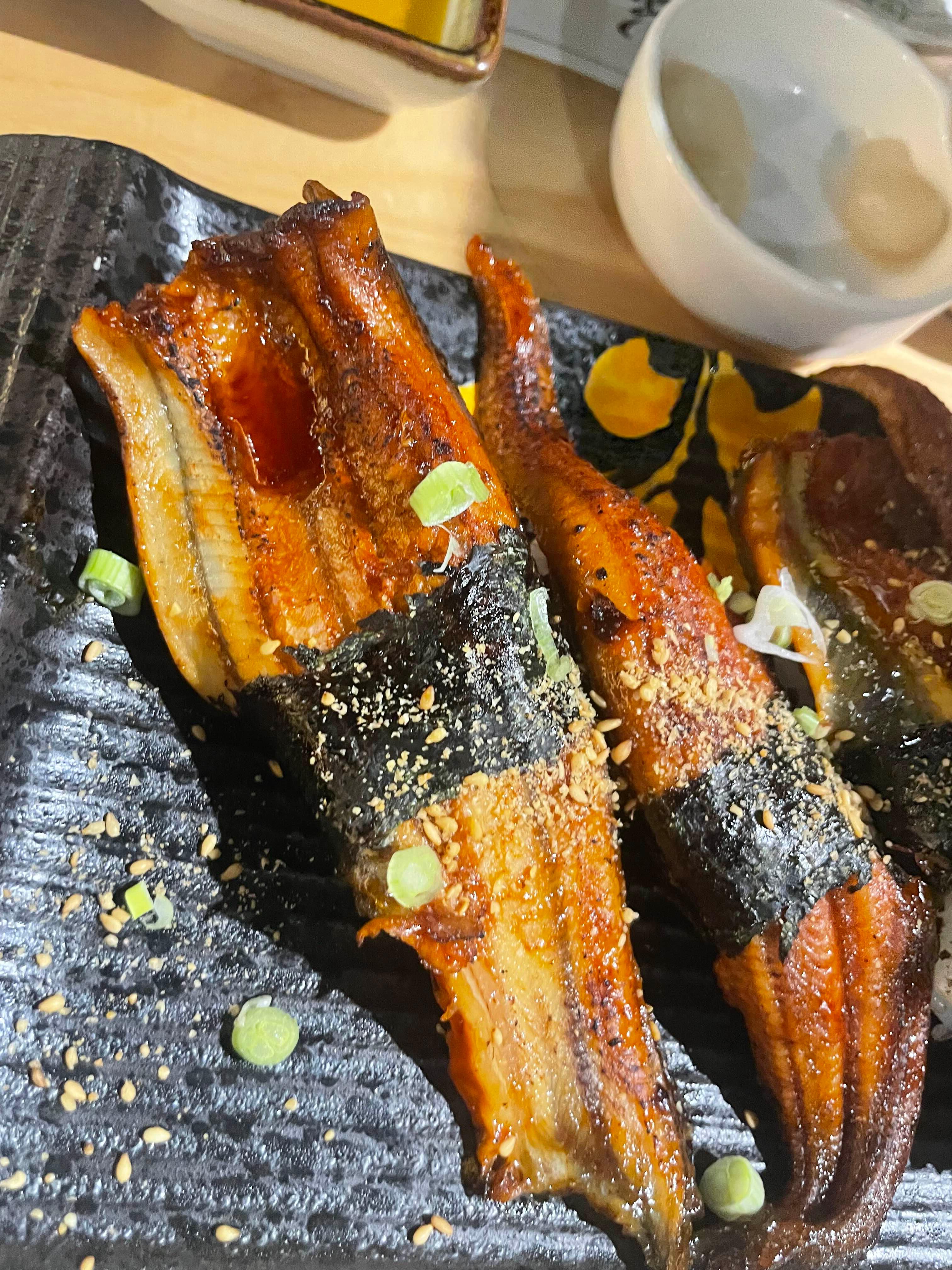 민물장어초밥과 참치머리회를 하나씩 주문했습니다.