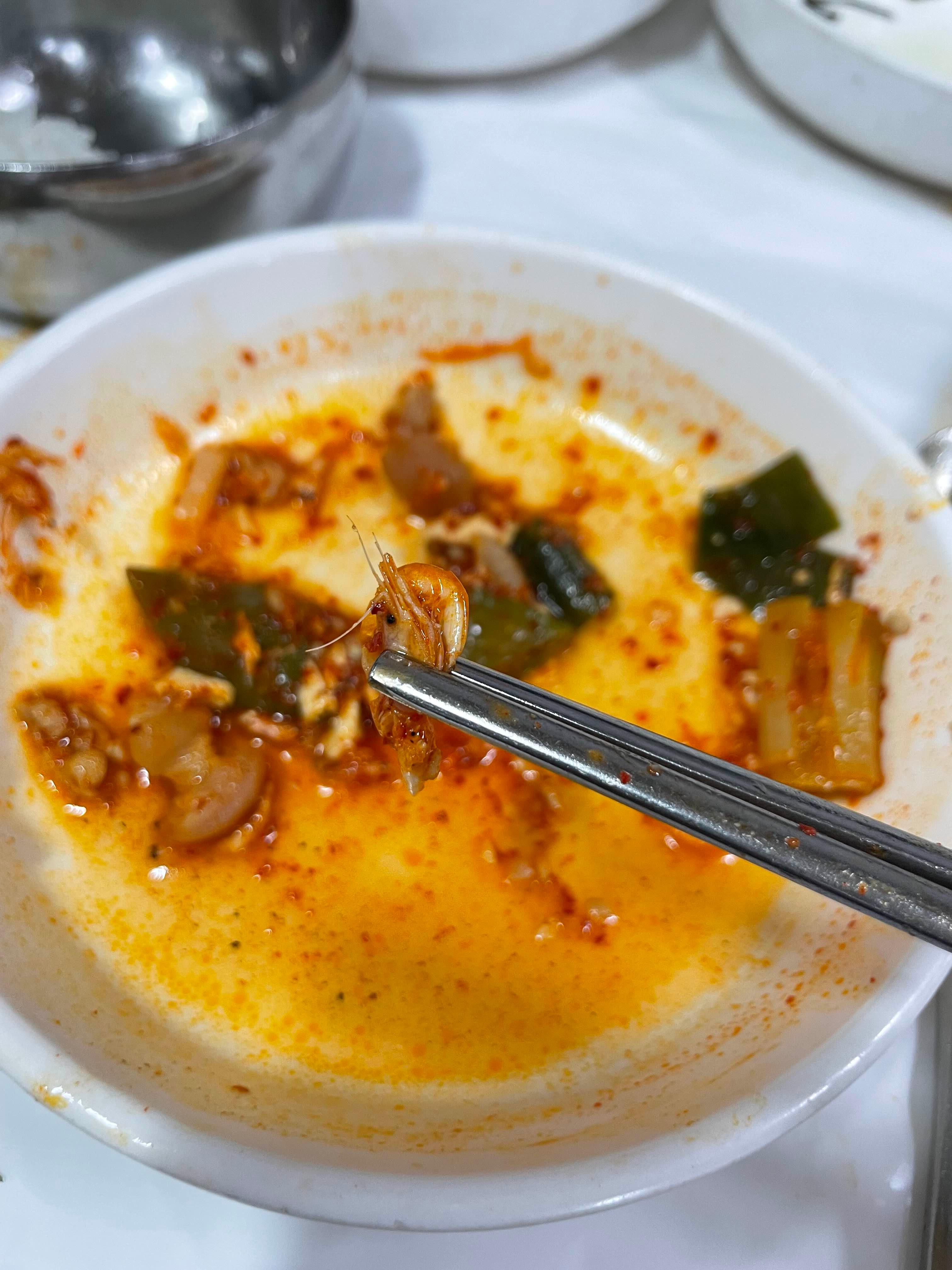 사태찌개는 국물이 묵직할 거 같은데, 상당히 깔끔한 국물이더군요. 새우가 많이 들어가서 그런지?