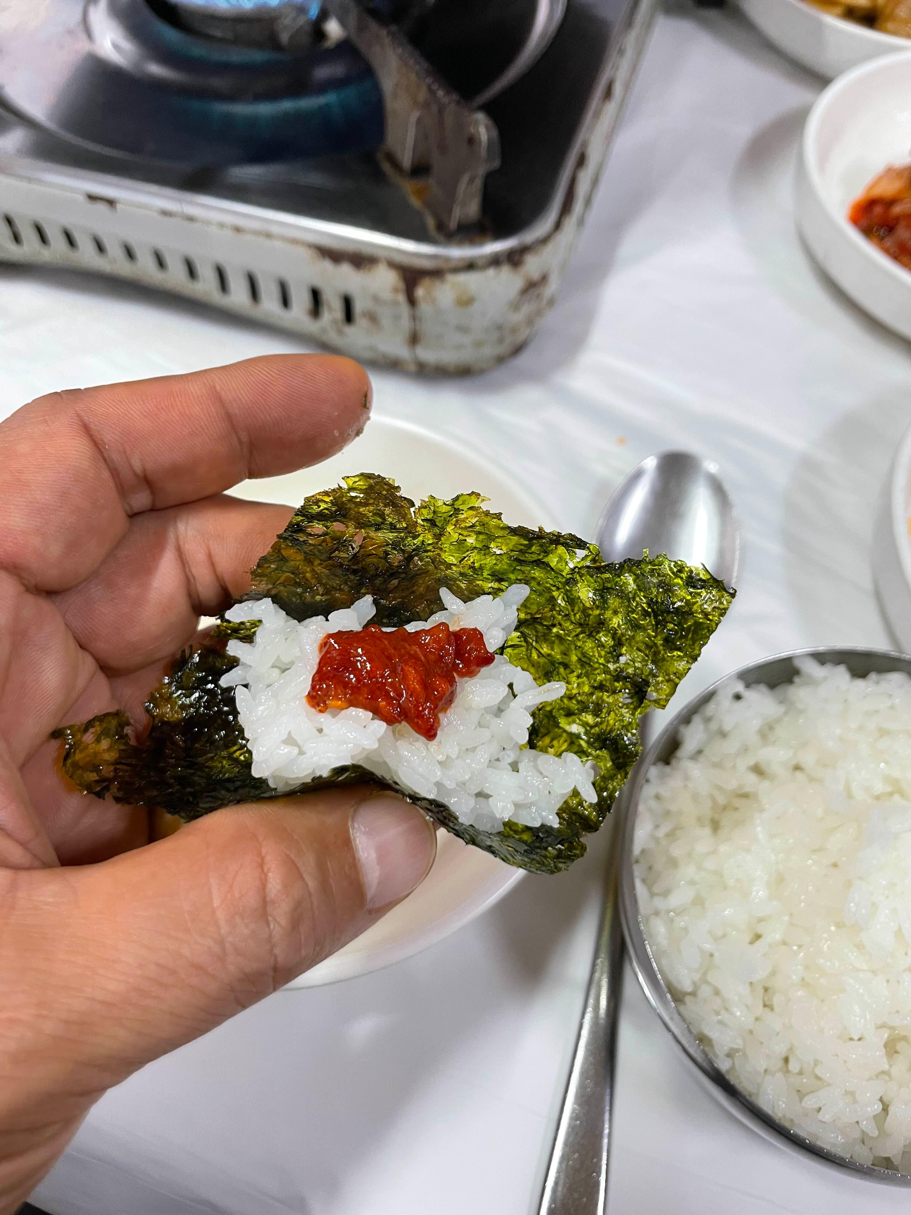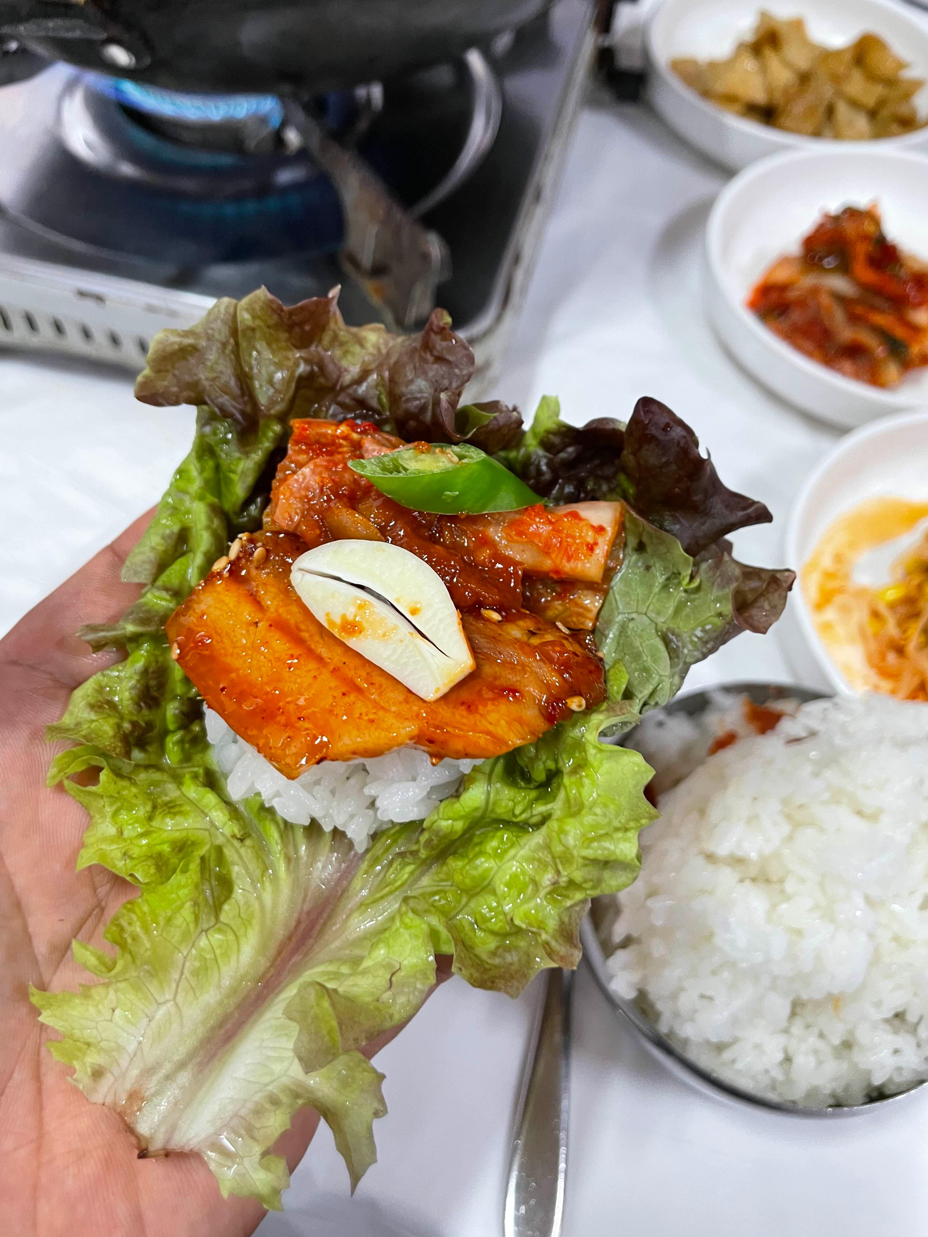 하나 쌈 싸먹으니 맛이 좋음!ㅎㅎ 양념이 맛나서... 양념에 밥 비벼 먹어도 맛나더군요.
