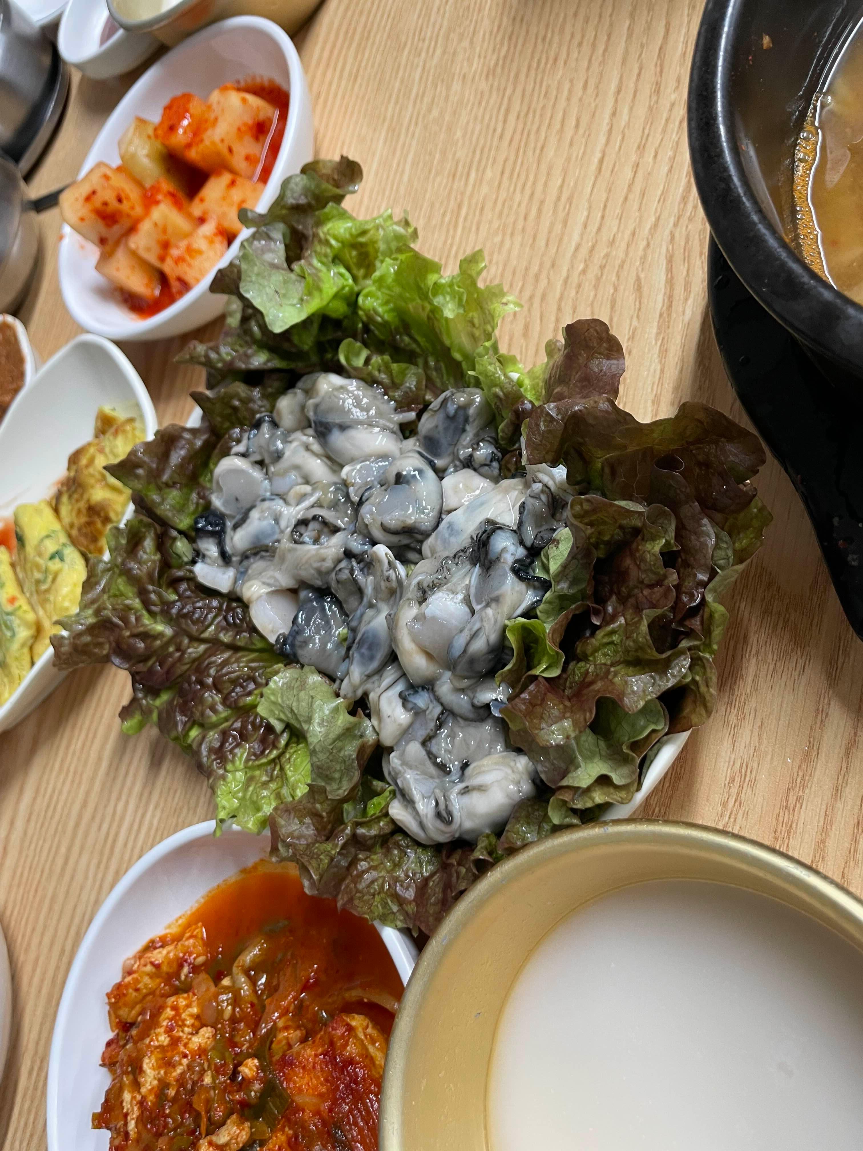 점심식사 시간에는 닭곰탕이 맛있는데, 겨울철 저녁은 굴보쌈이 별미라서!! 큰 거로 하나 주문했습니다.
