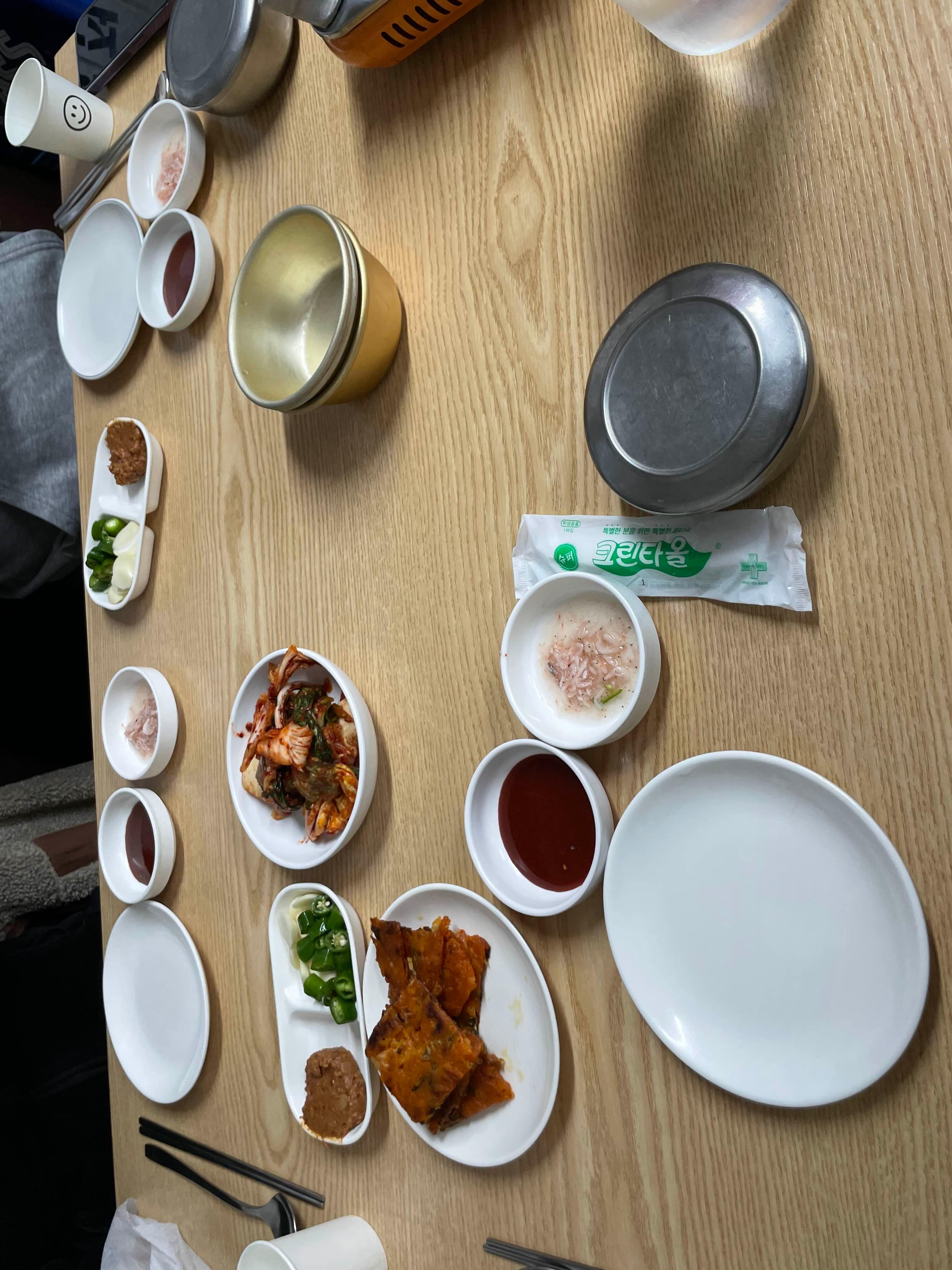 음식을 주문하면 기본 반찬으로 김치전과 배추김치 깍두기!!