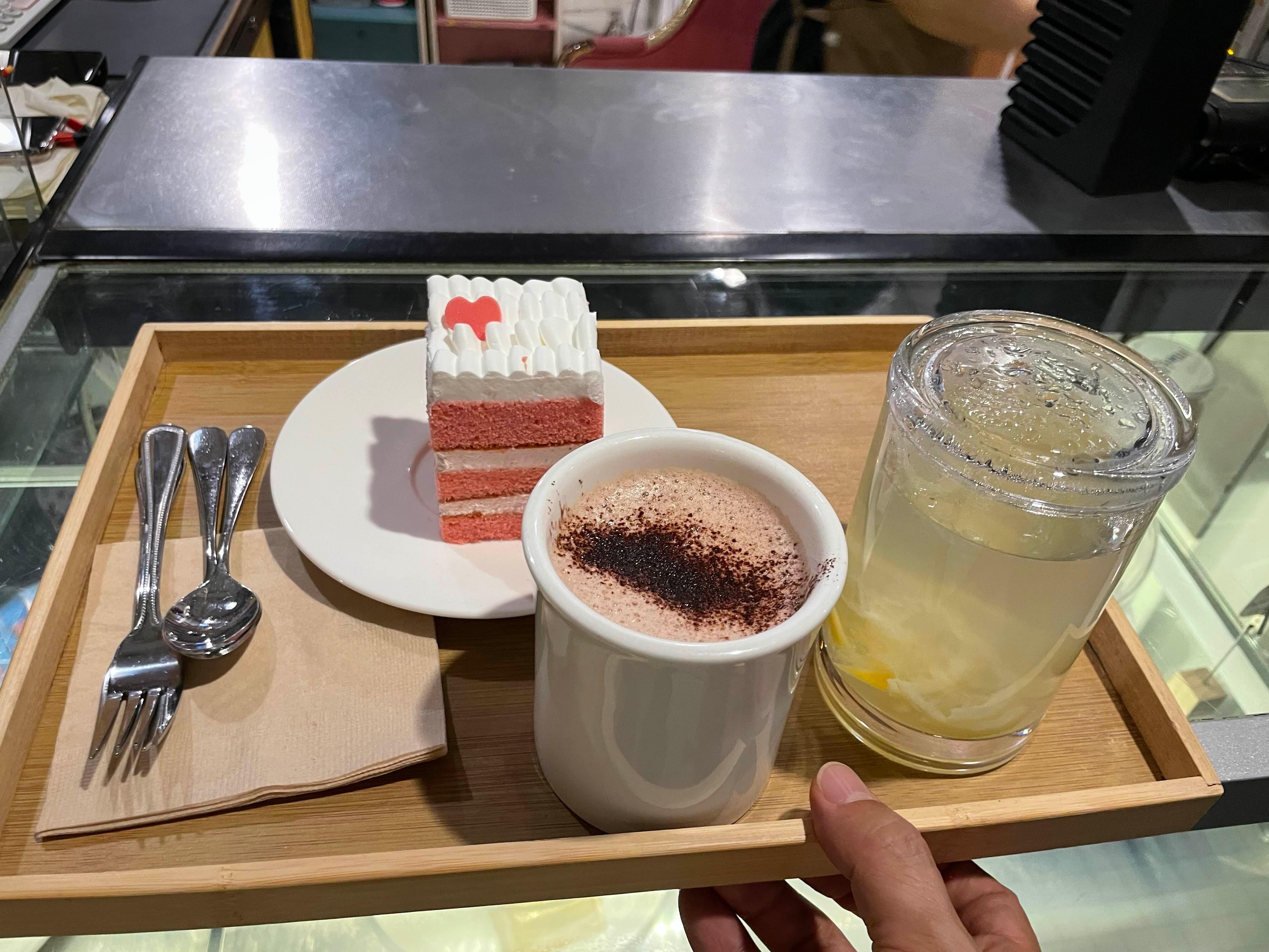 음료로 초코라떼, 유자차 딸기케익 하나씩 주문했네요.ㅎㅎ