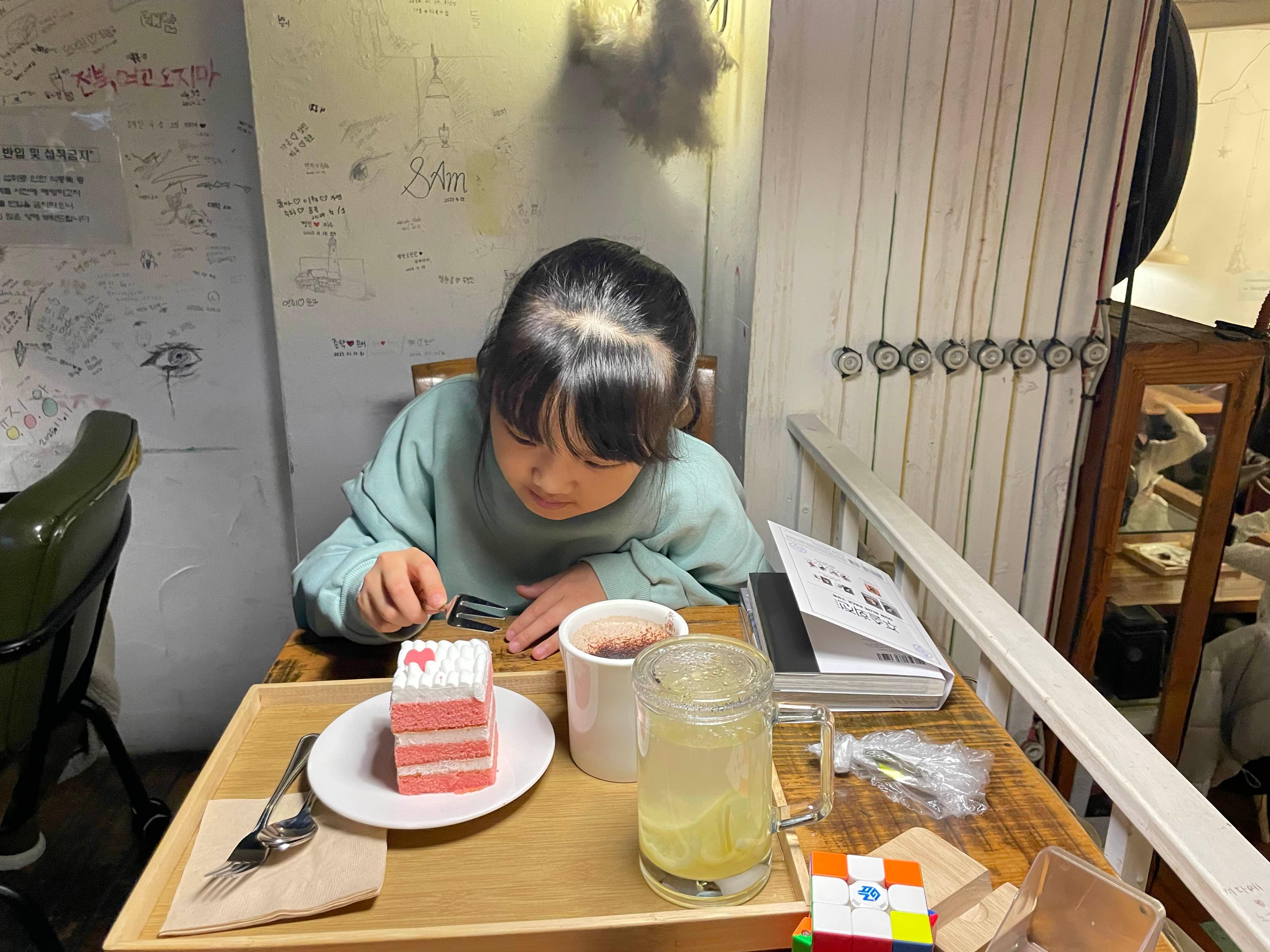 맛나게 음료와 케익먹고~