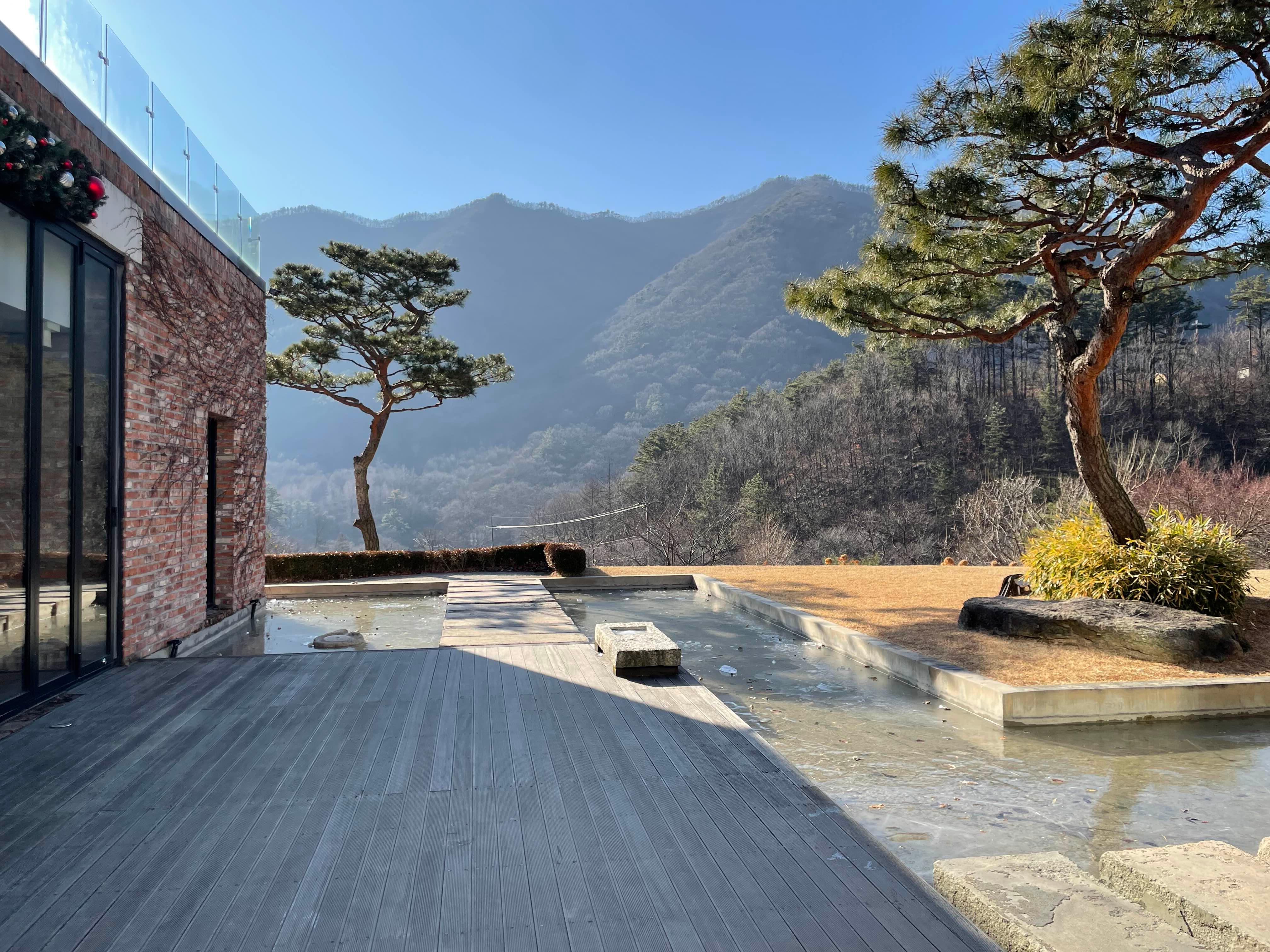 야외 수공간을 건더면 카페 정문!