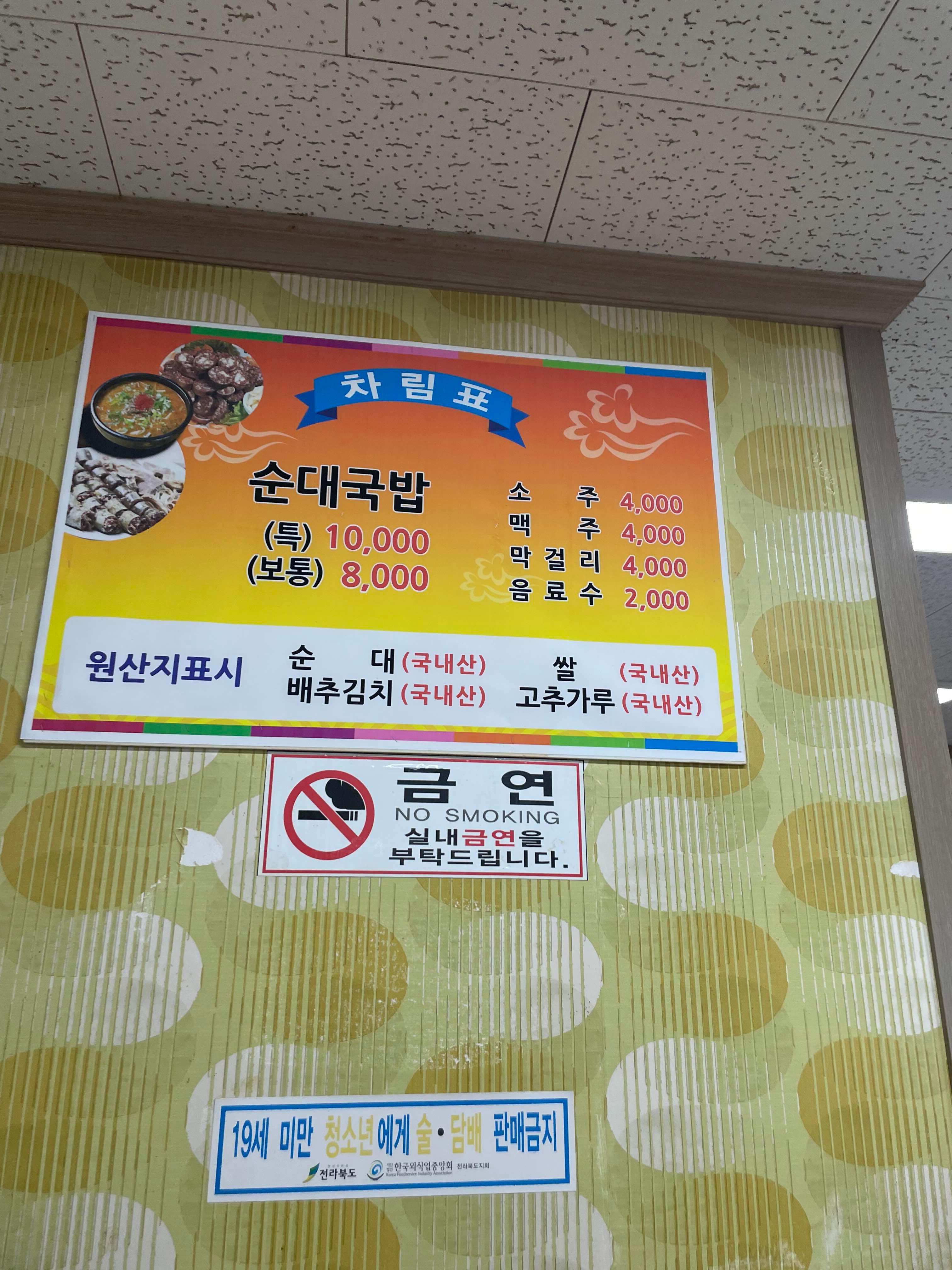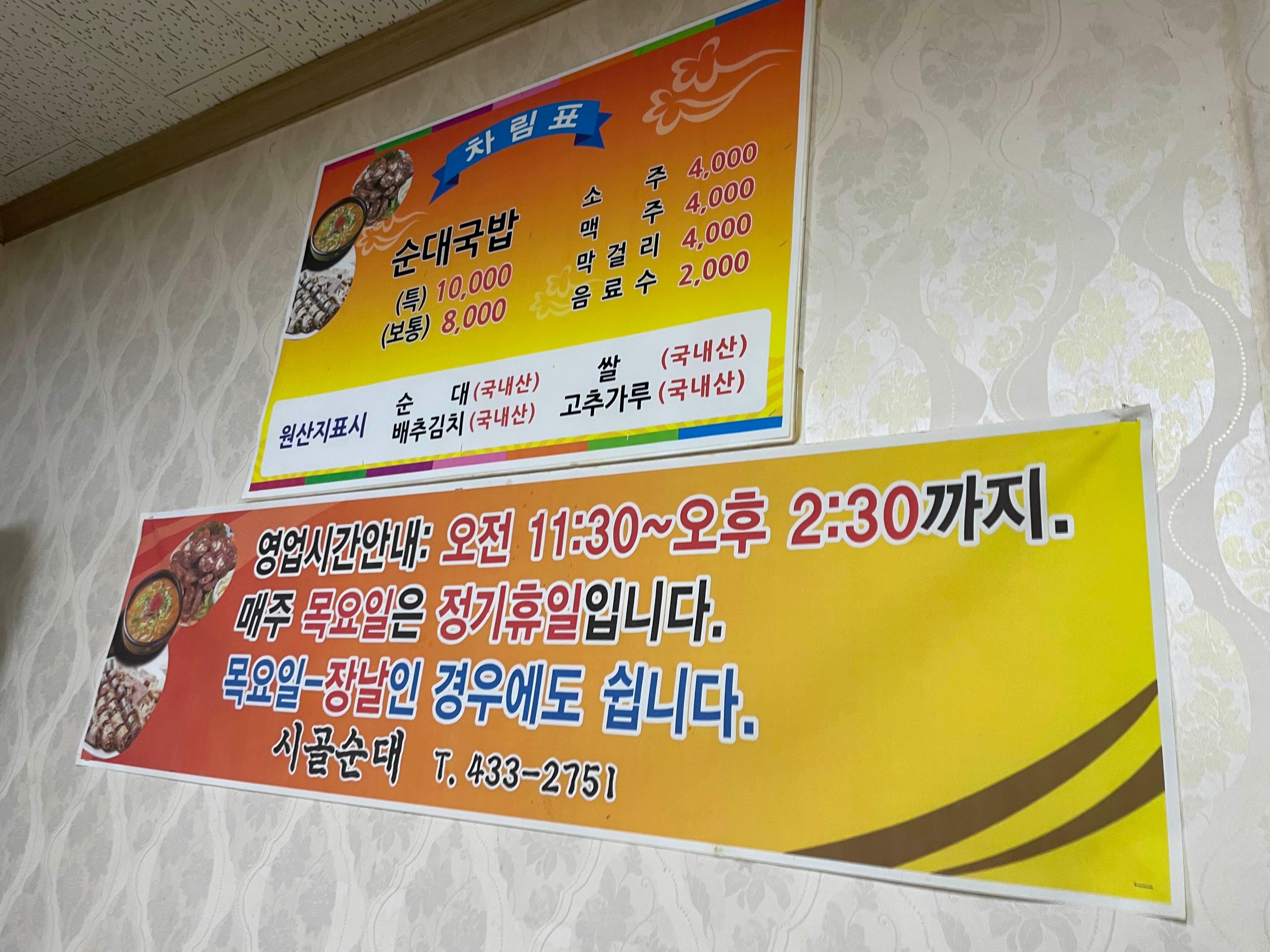메뉴는 단일메뉴 순대국밥!!~ 아주 믿음직스러운 메뉴판이다.
