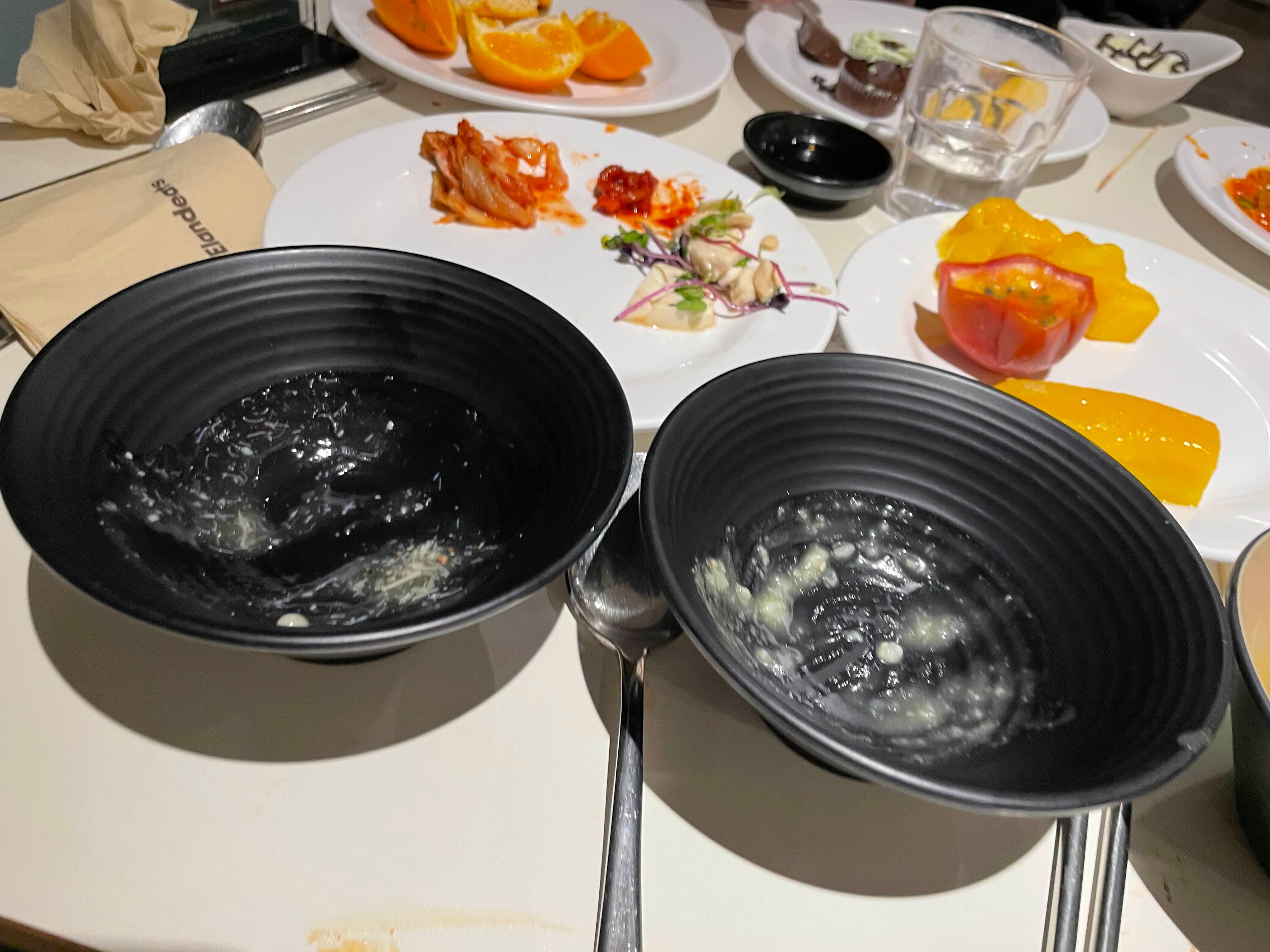 국물로 홍합탕과 가락국수!