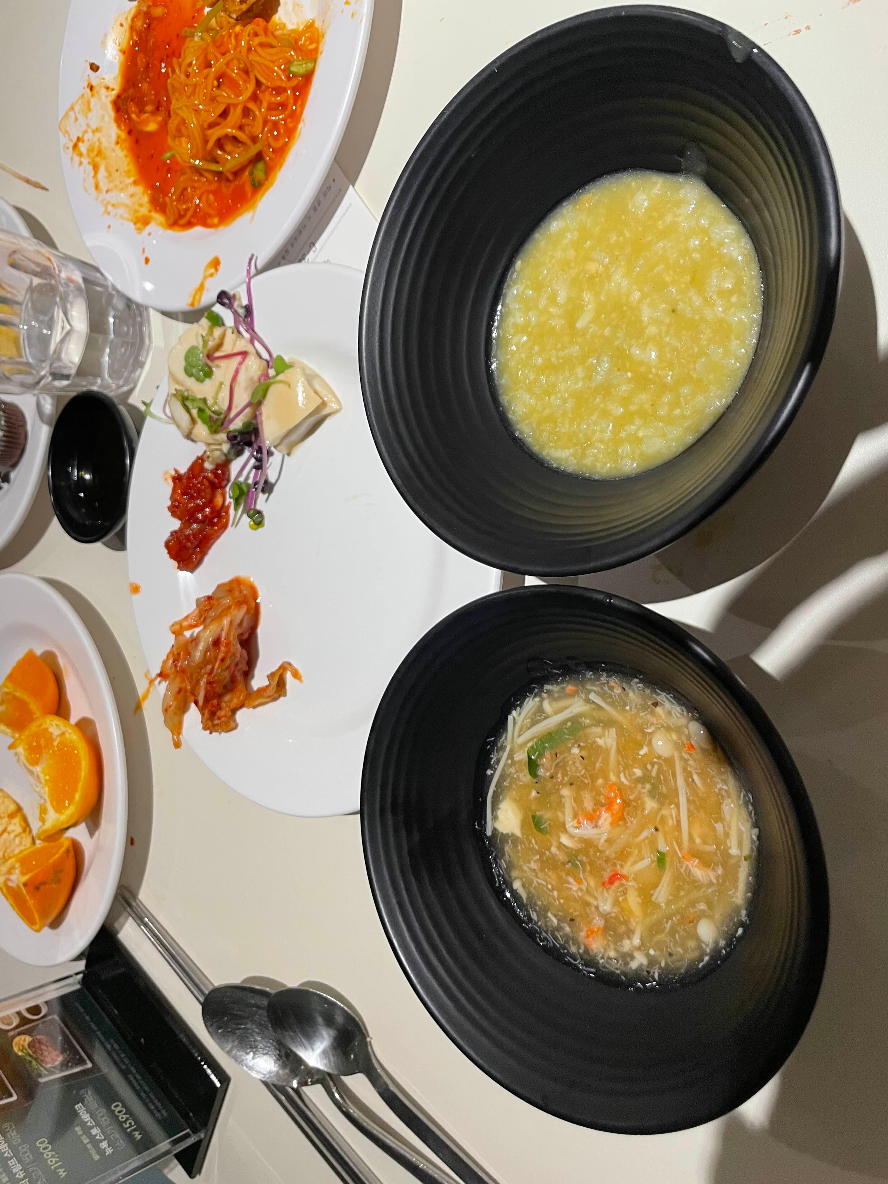 게살탕이랑 죽을 마무리~