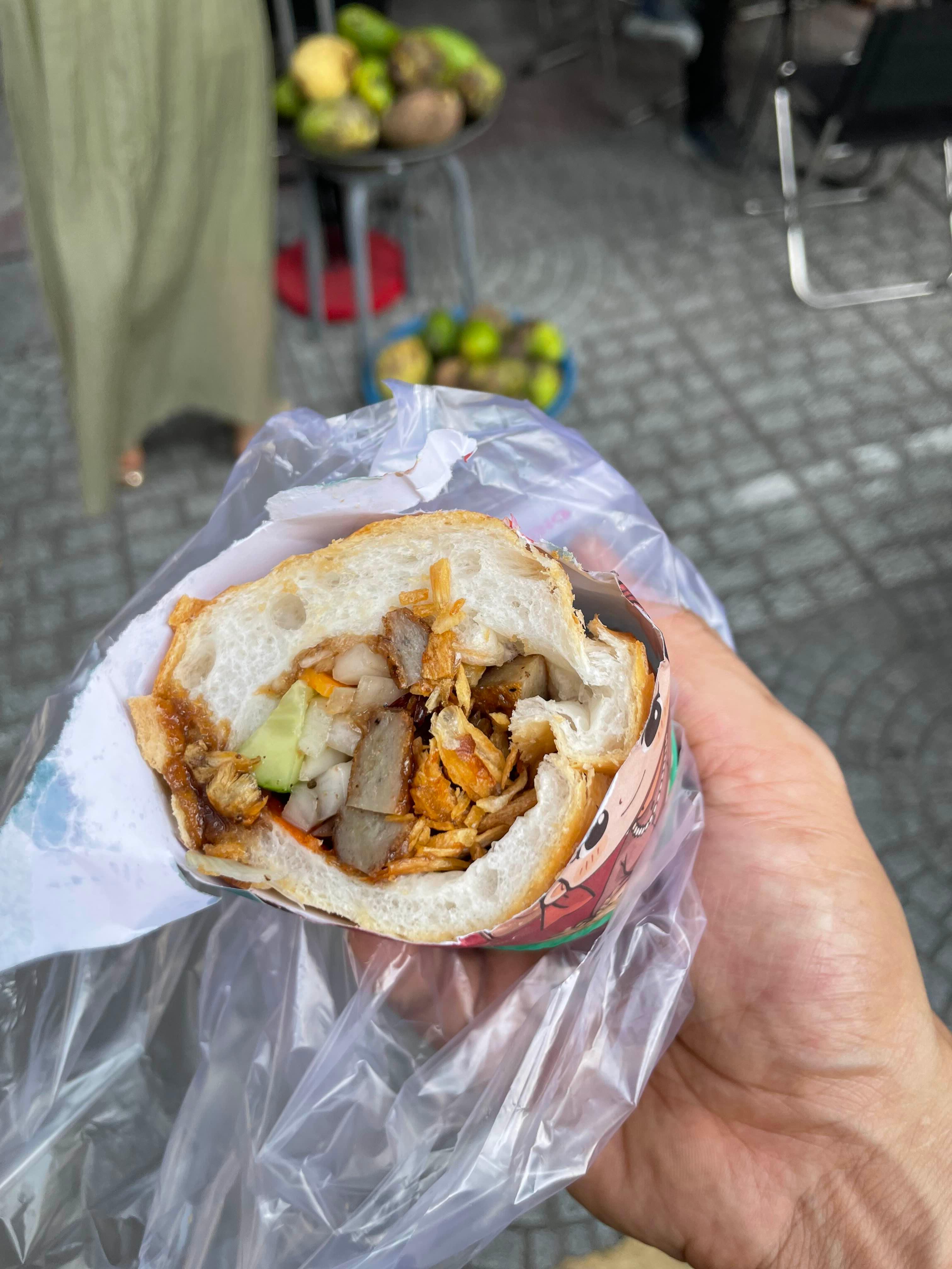 일반적으로 길거리 반미는 달걀+고기전 등 기름에 부친 음식들이 들어가 묵직한 맛이 있는데..
