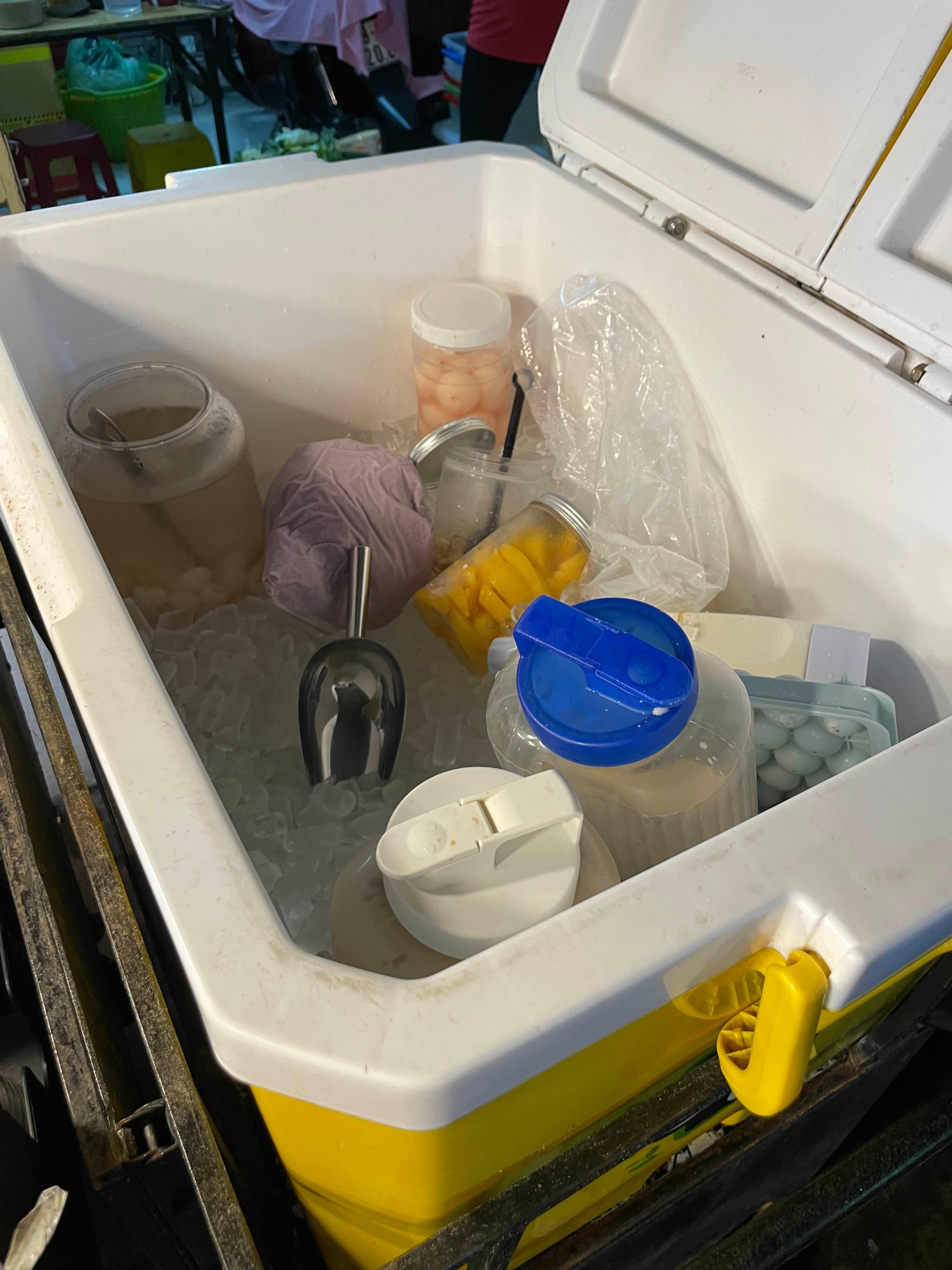기본 베이스 음료는 아이스박스에 보관하신다.ㅎㅎ 토핑은 매대 앞쪽에 세팅되어 있다.ㅎㅎ