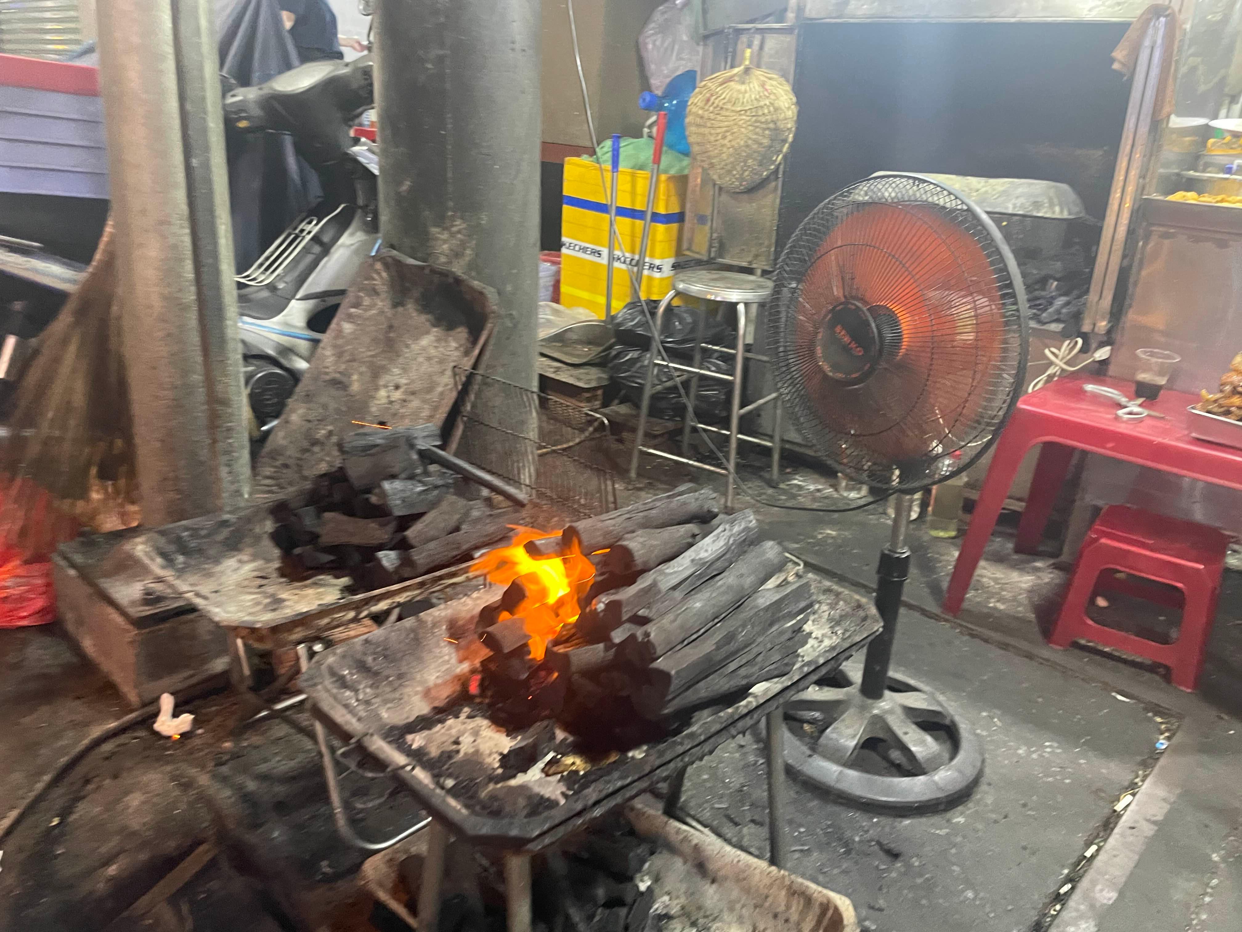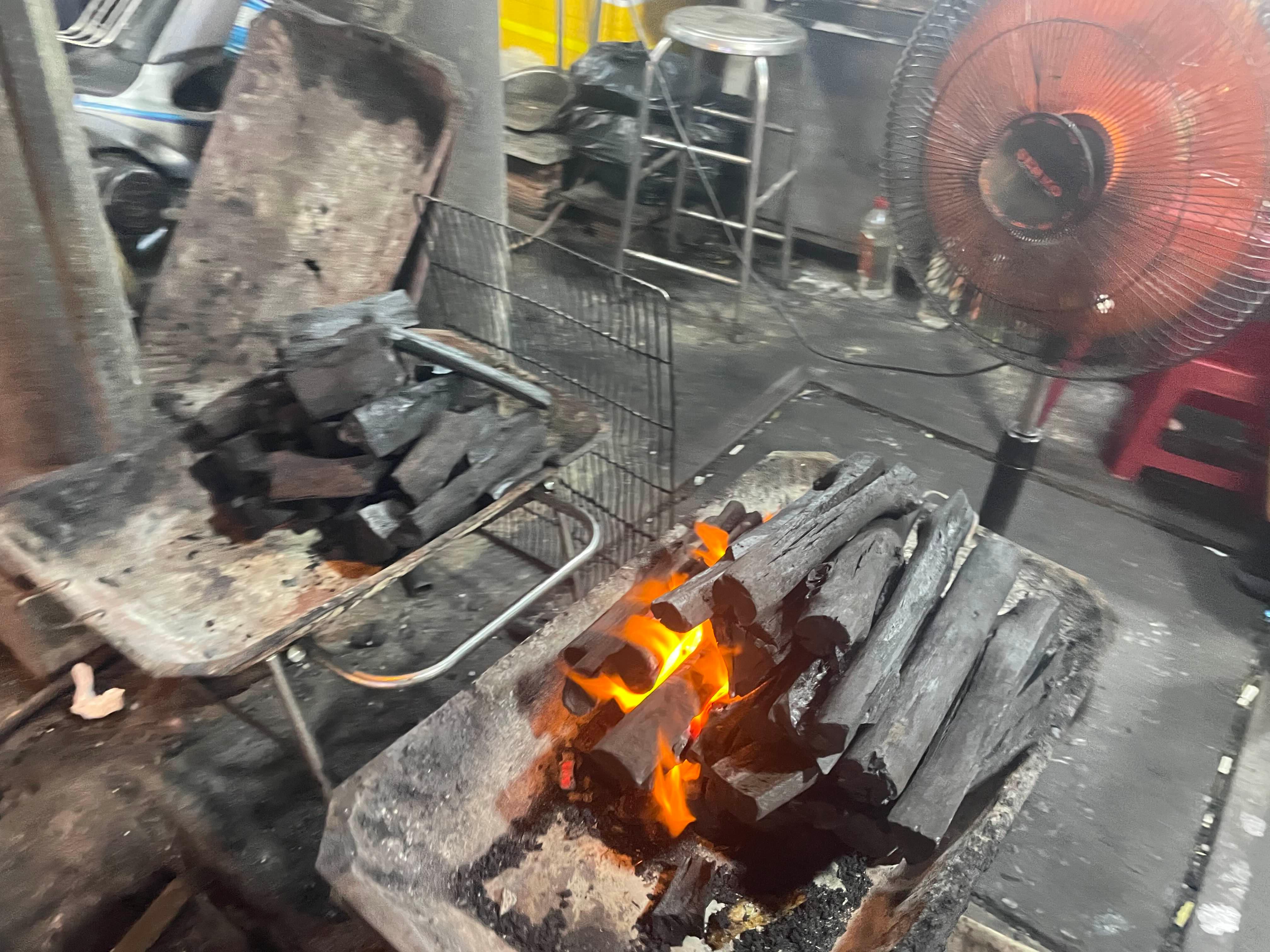 한쪽에서는 숯으로 고기를 굽고 계신다.