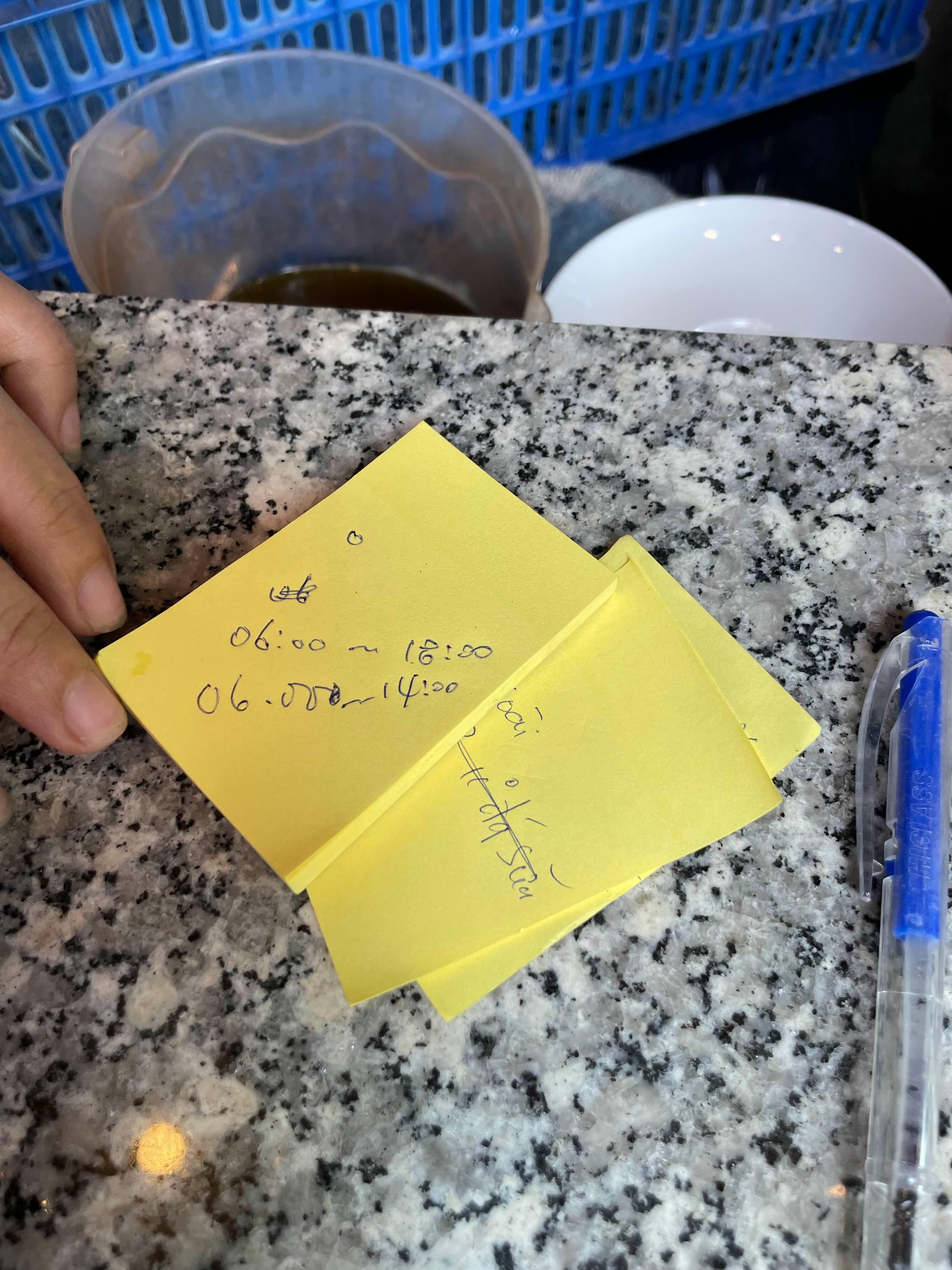 식당을 몇 시부터 몇 시까지 운영하냐고 물어보니... 이럴걸 적어 주신다.