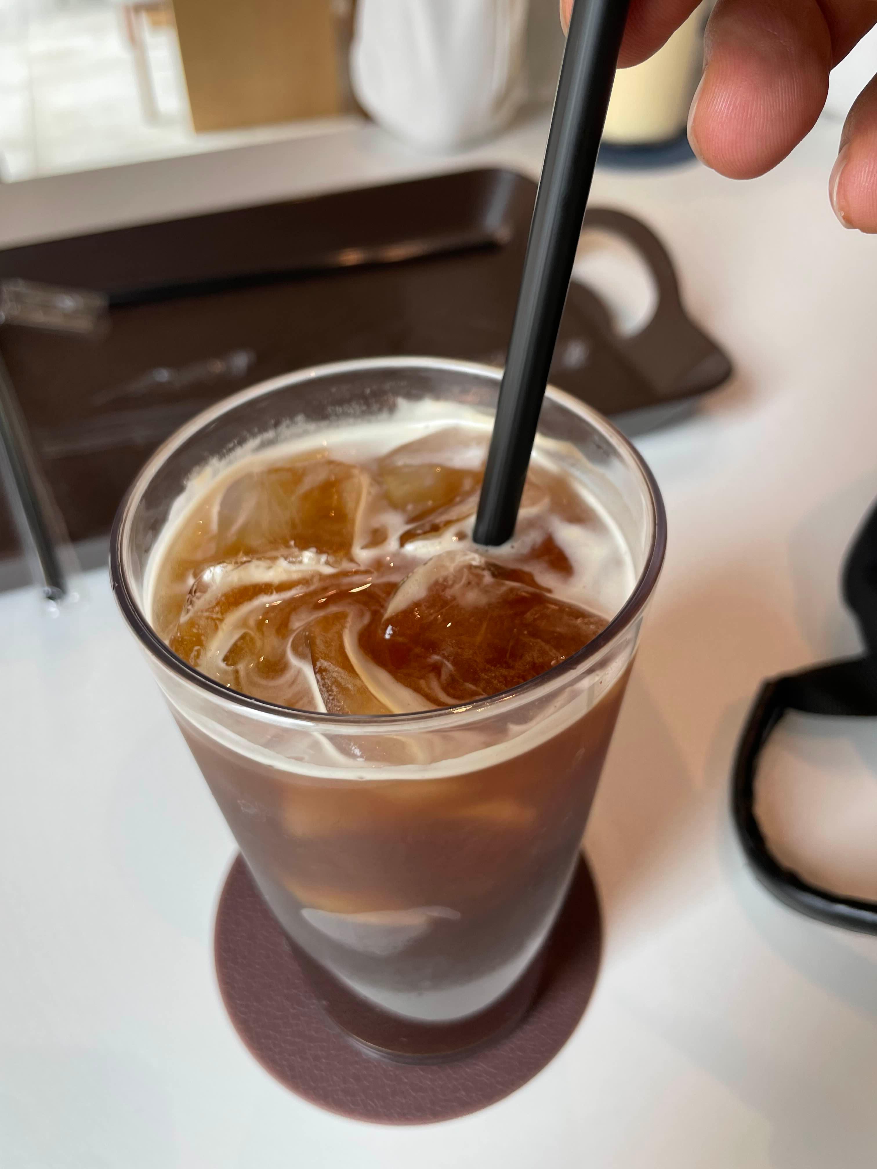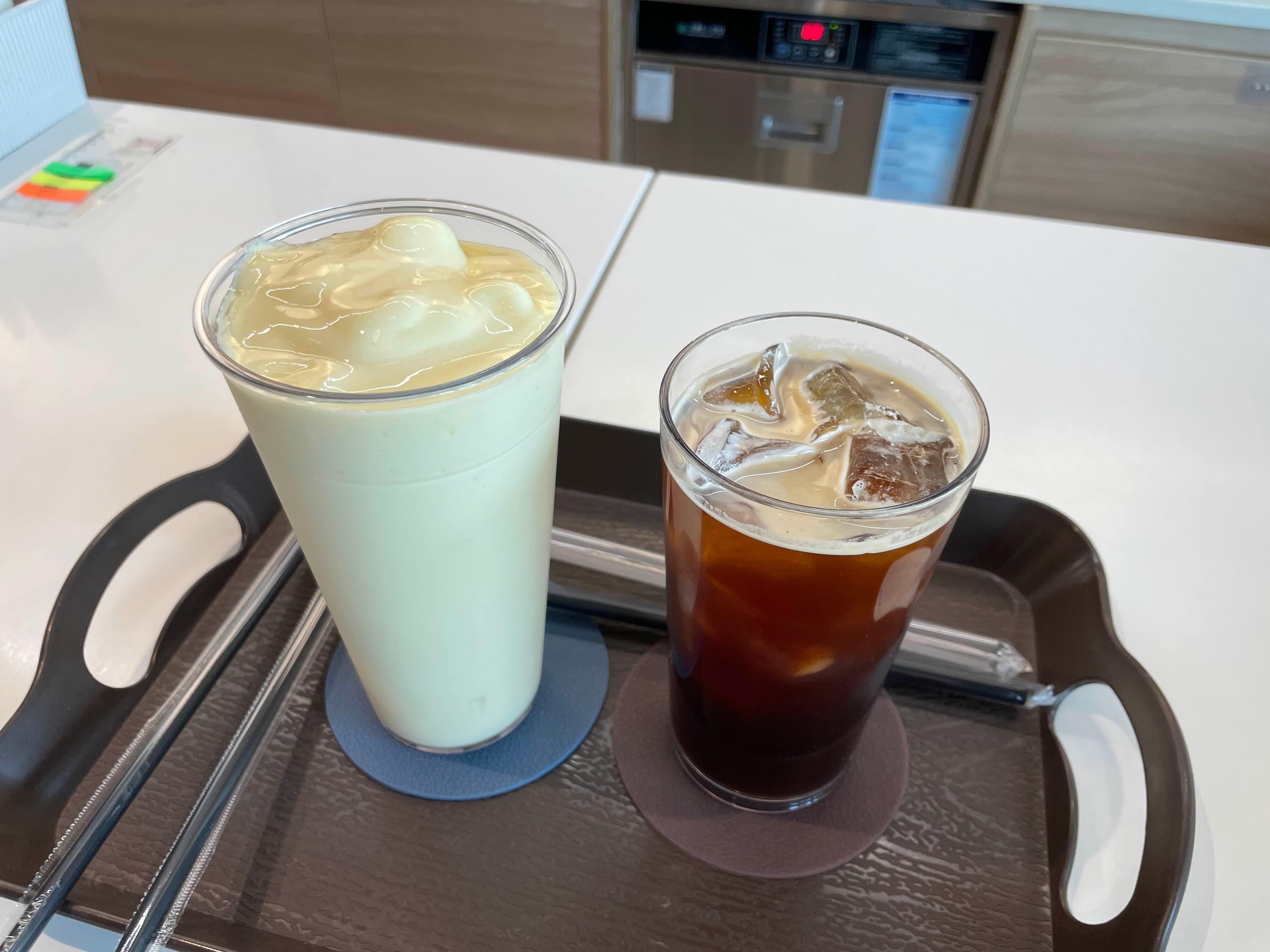 아메리카노 한잔과 망고요거트 스무디? 한잔씩 주문했다.